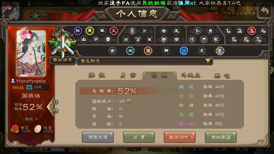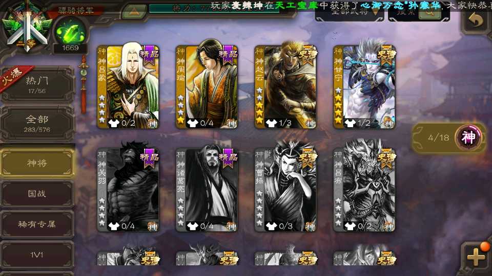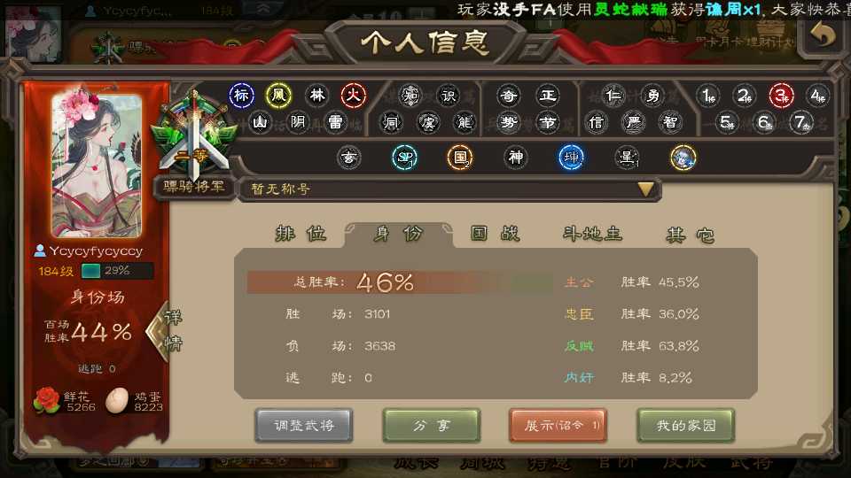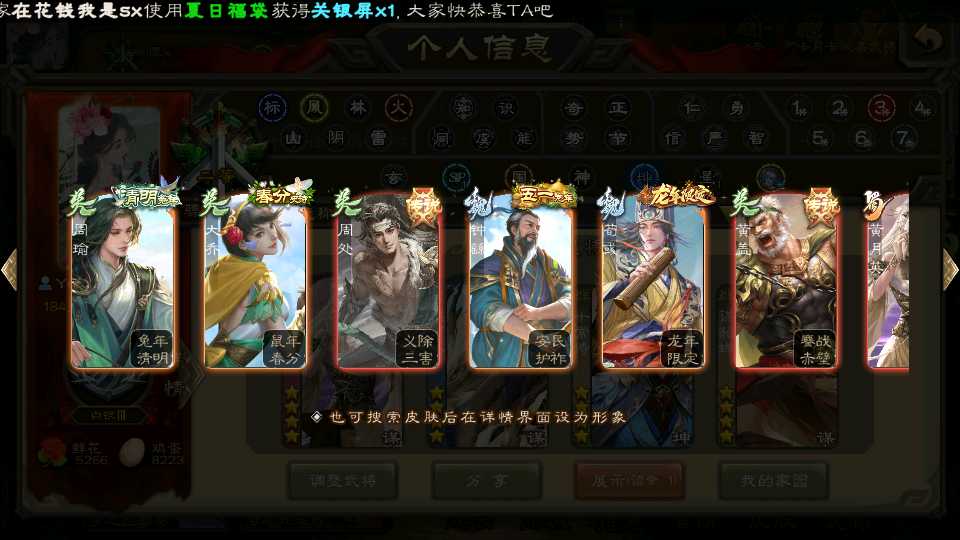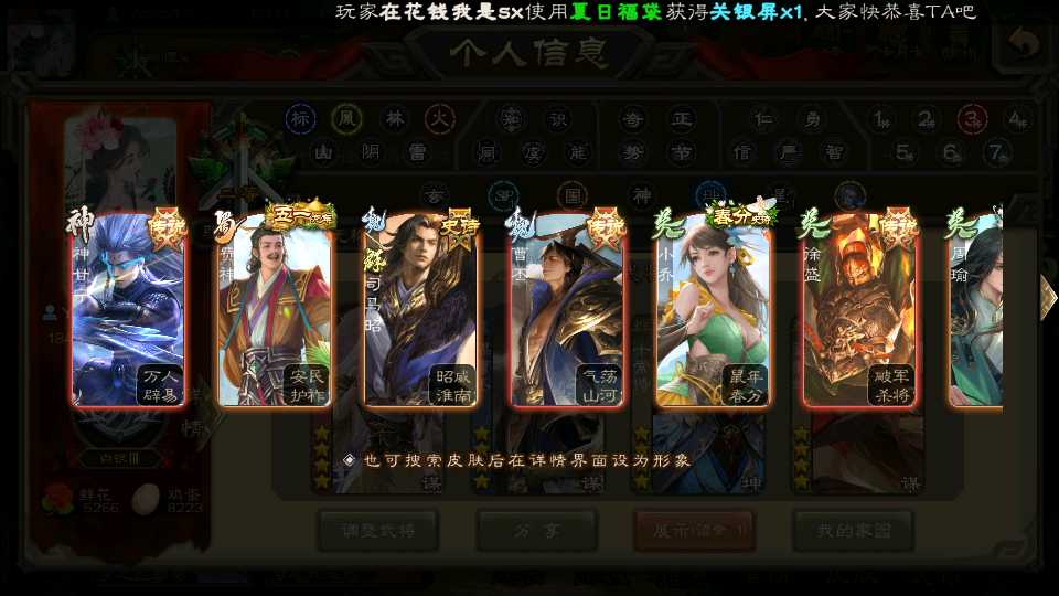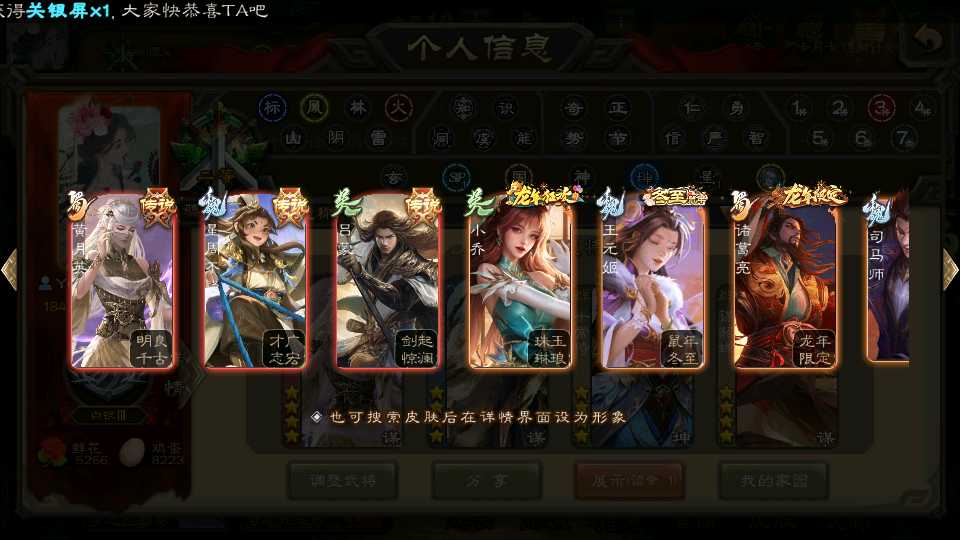 商品编号22263 全部皮肤322,动态皮肤20,全部武将283,排位武将79,国战武将78,史诗武将26,宝珠19