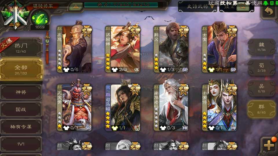 (群雄):南华老仙,麴义,十常侍,谋貂蝉,司马昭,士燮,左慈,兀突骨