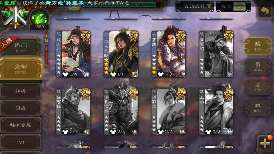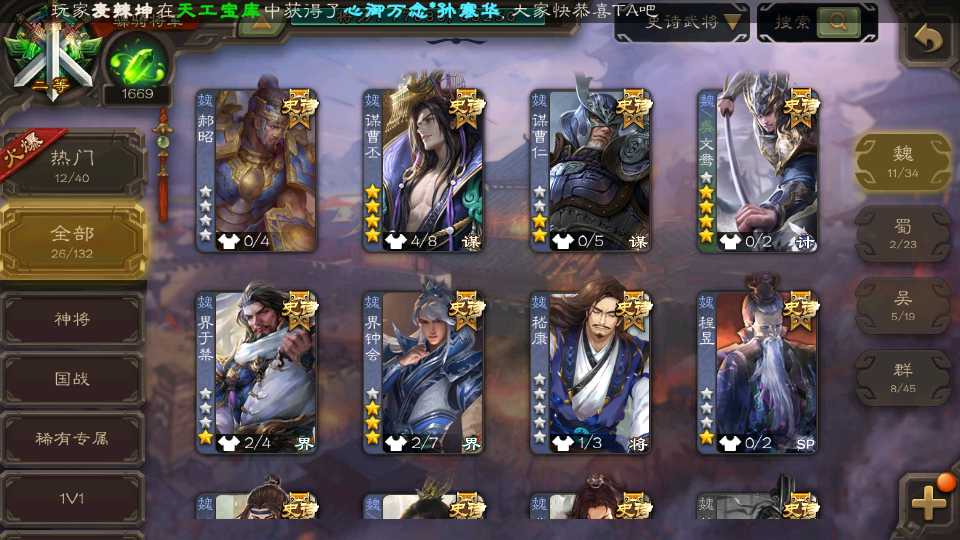 (魏国):文鸯,戏志才,界钟会,谋曹丕,谋曹仁,界于禁,郝昭,程昱,曹纯,嵇康