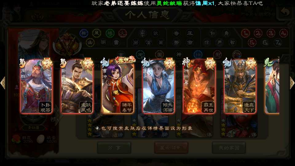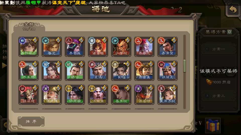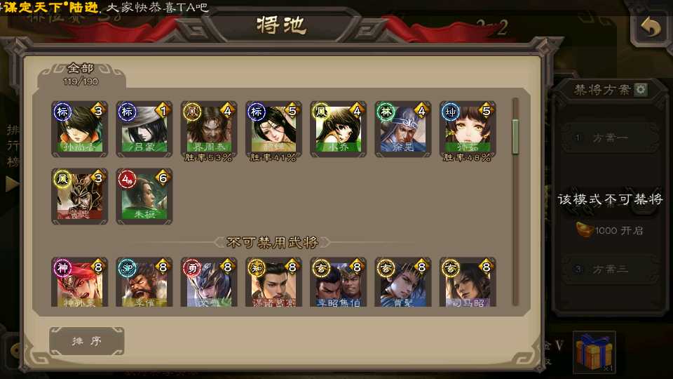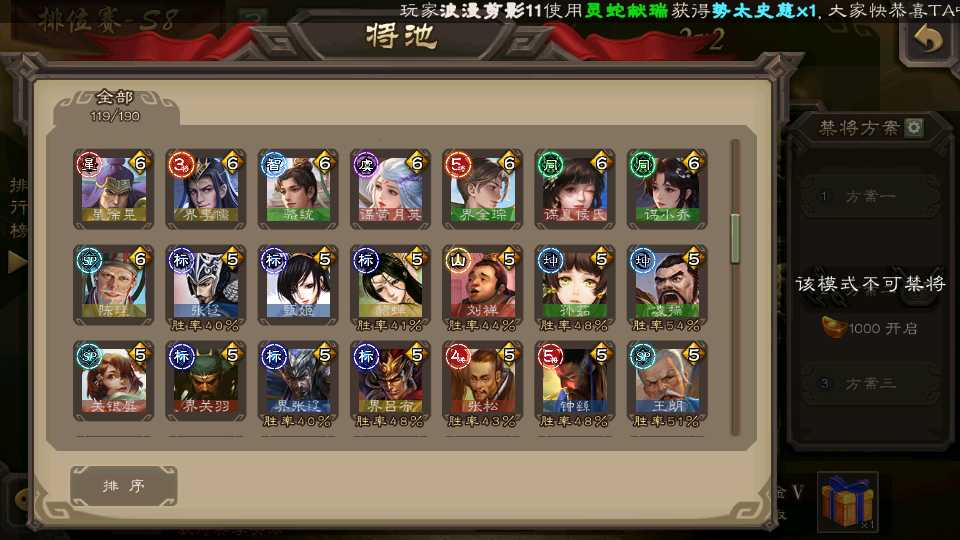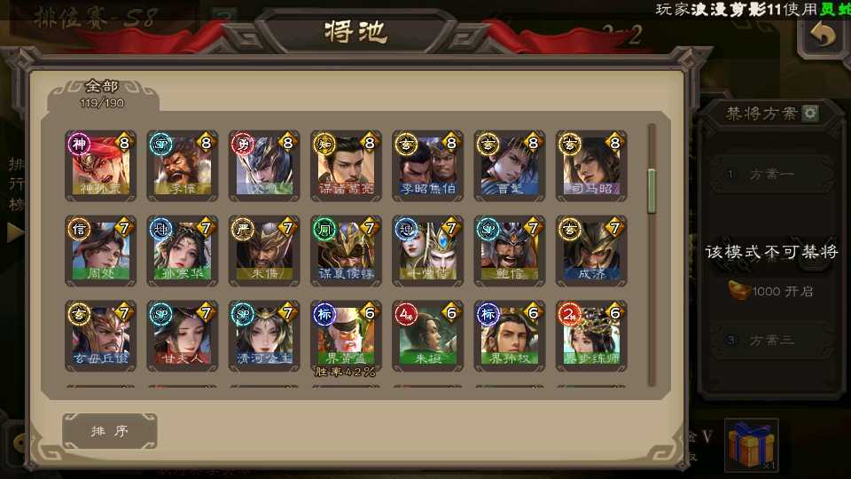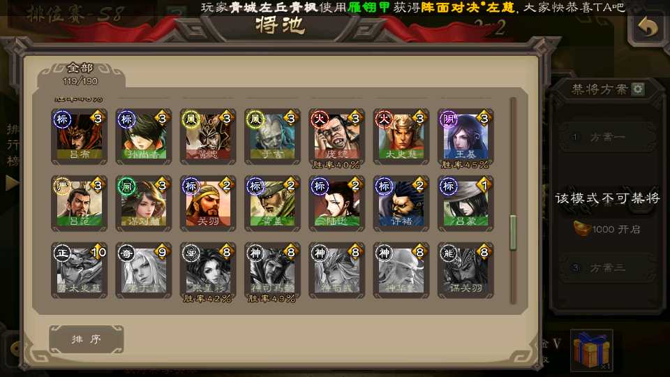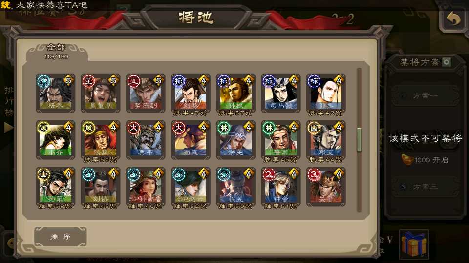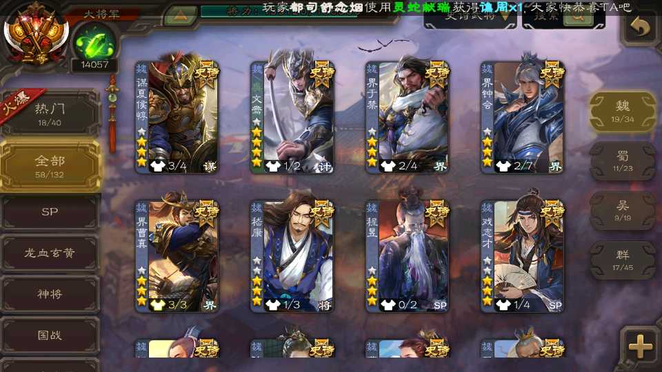 (群雄):杜预,界左慈,南华老仙,麴义,十常侍,星董卓,谋貂蝉,司马昭,界李儒,卑弥呼,星魏延,谋张角,公孙康,郑玄,左慈,沮授,兀突骨