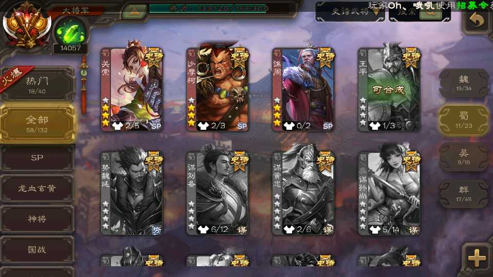 (蜀国):界黄忠,谋诸葛亮,诸葛瞻,谋赵云,花鬘,沙摩柯,谋夏侯氏,谯周,谋马超,关索,董允