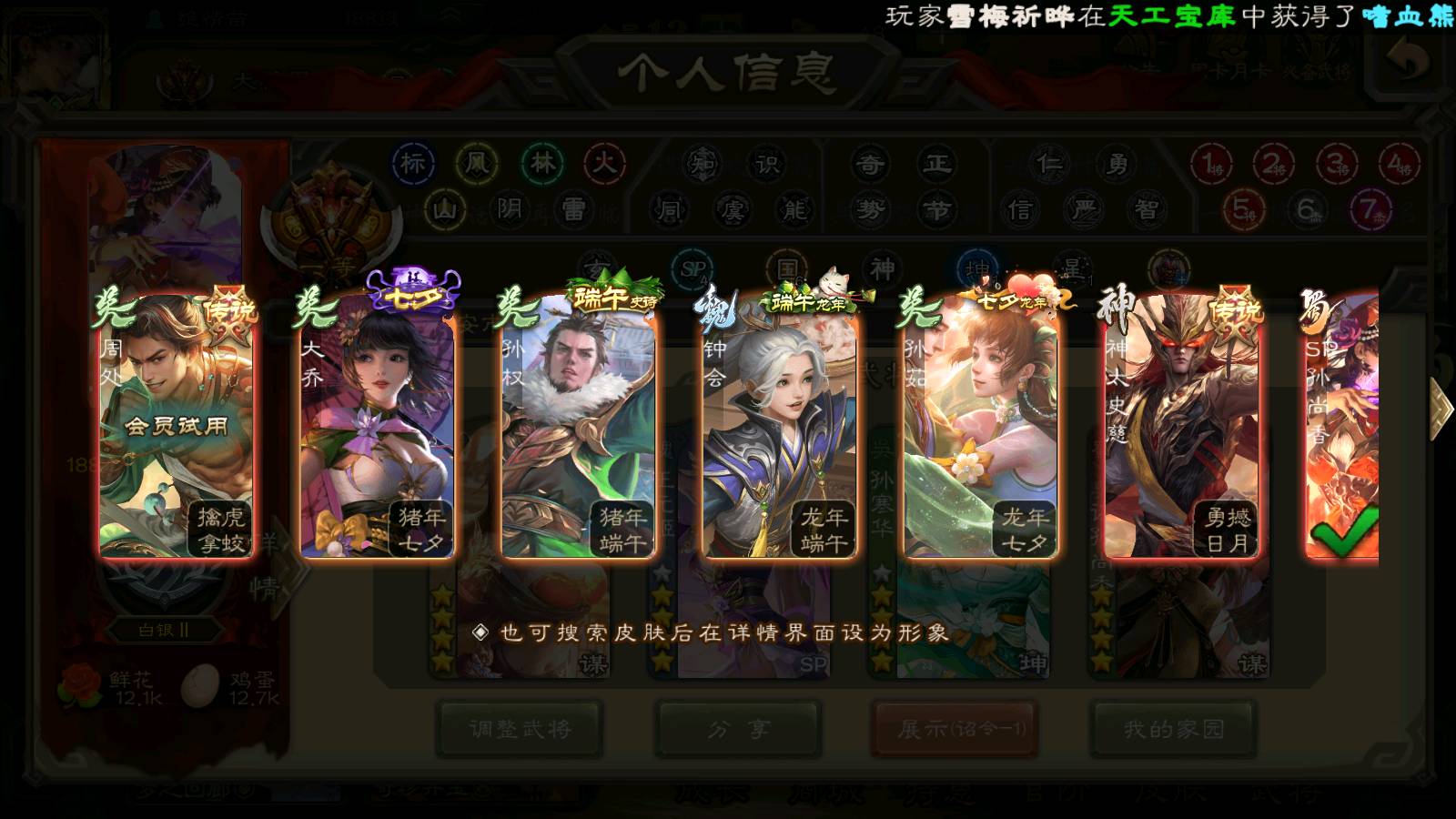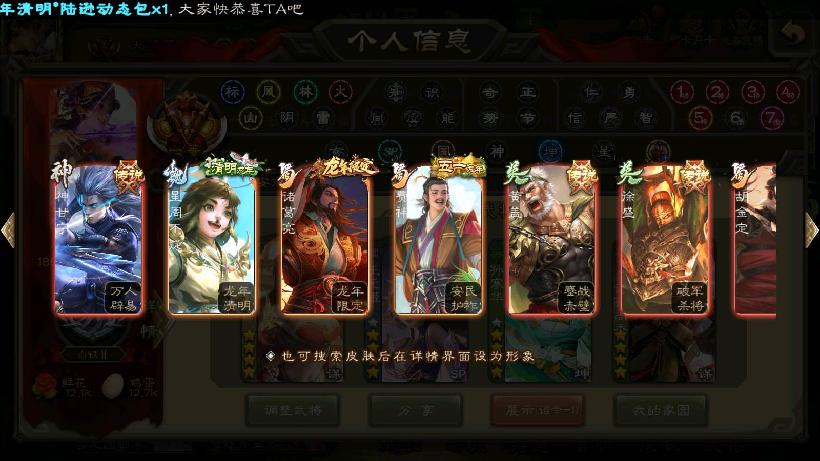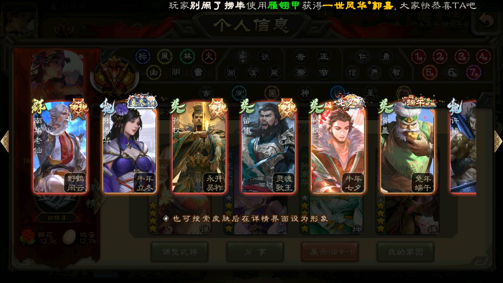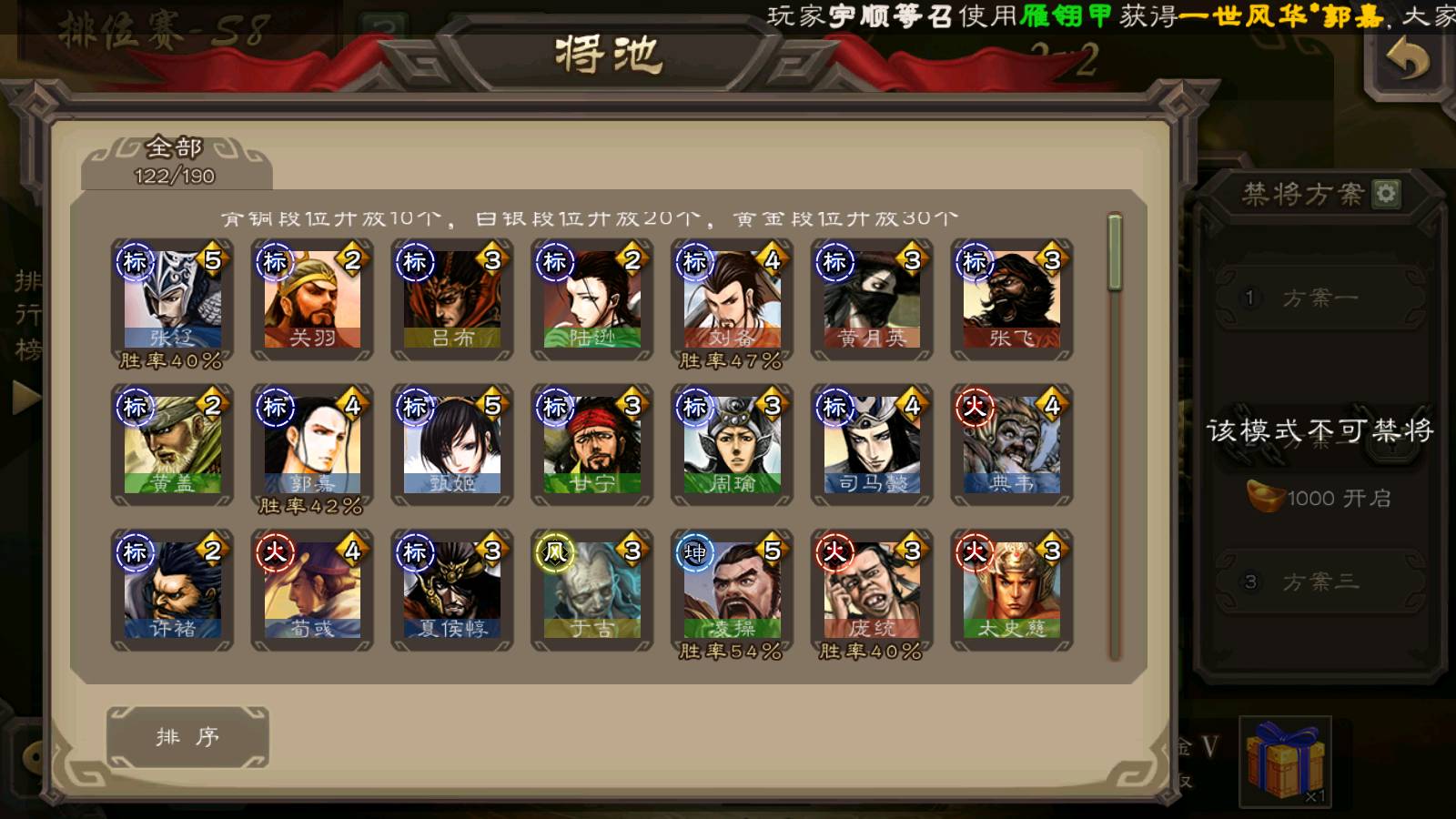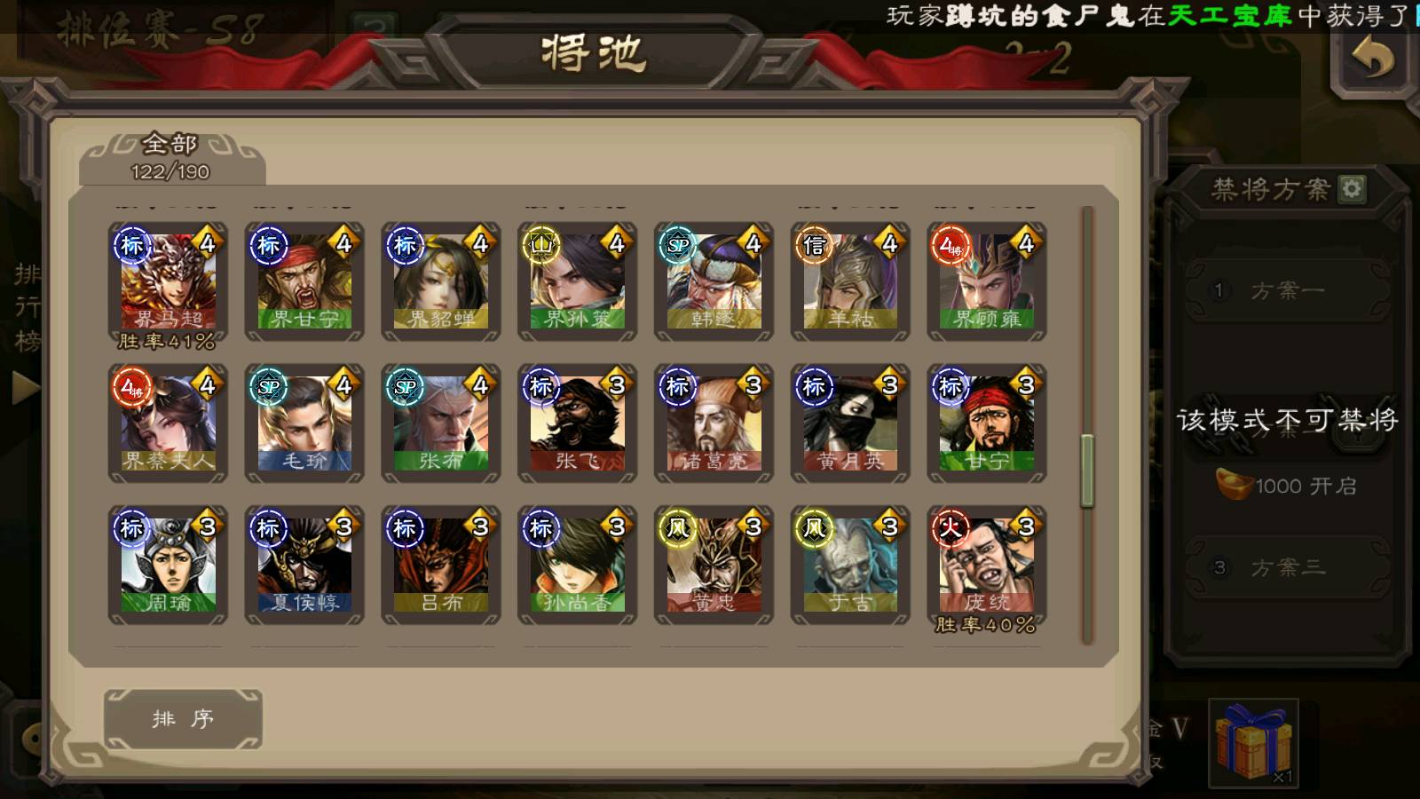 (群雄):杨彪,杜预,谋貂蝉,界左慈,张让,界李儒,苏飞,麴义,许攸,司马昭,南华老仙,谋张角,陶谦,公孙康,郑玄,星黄忠,星董卓,左慈,沮授,兀突骨