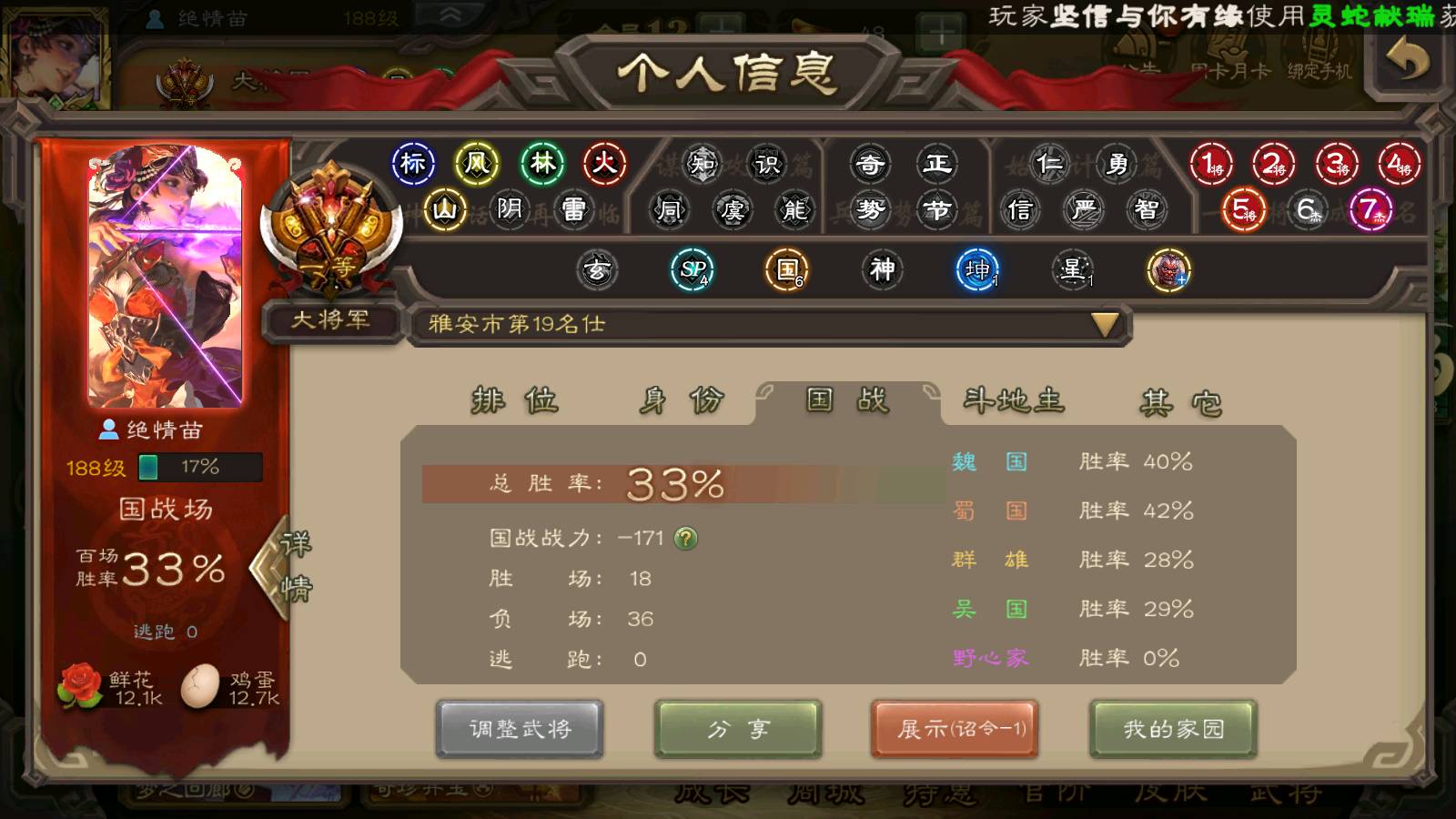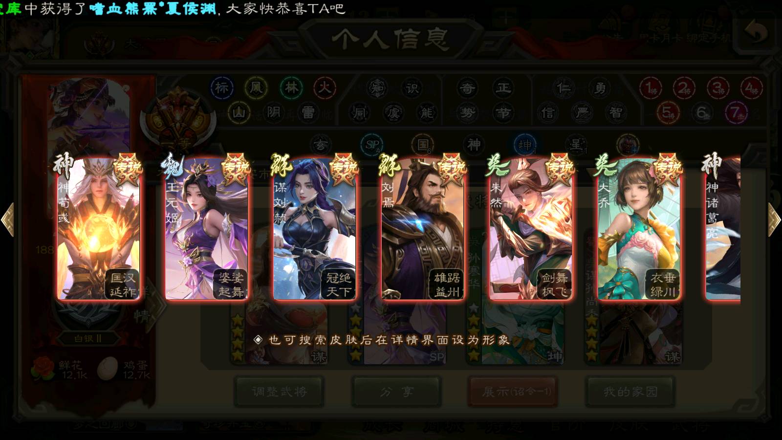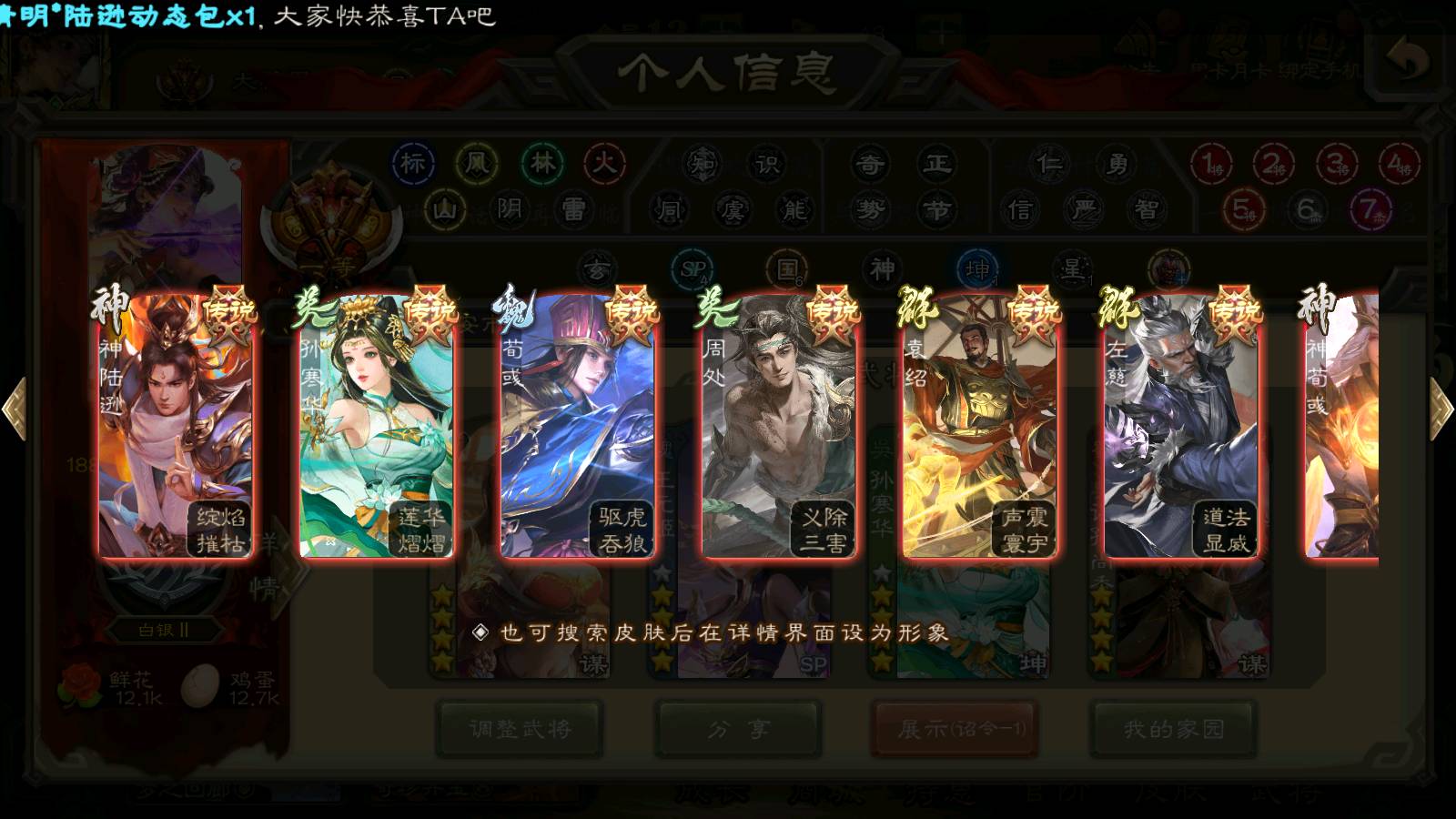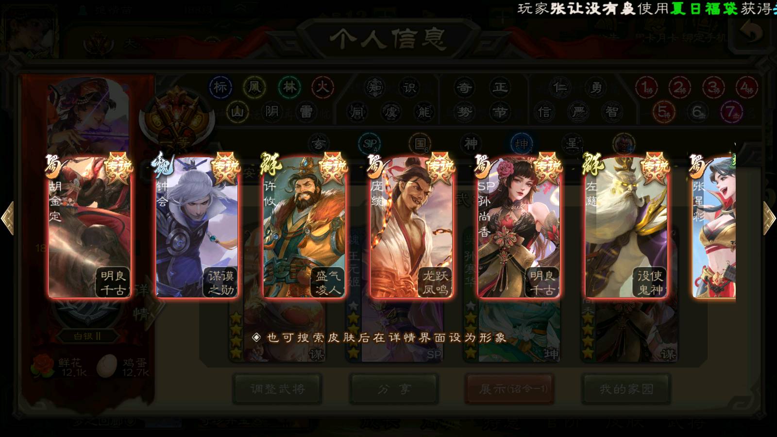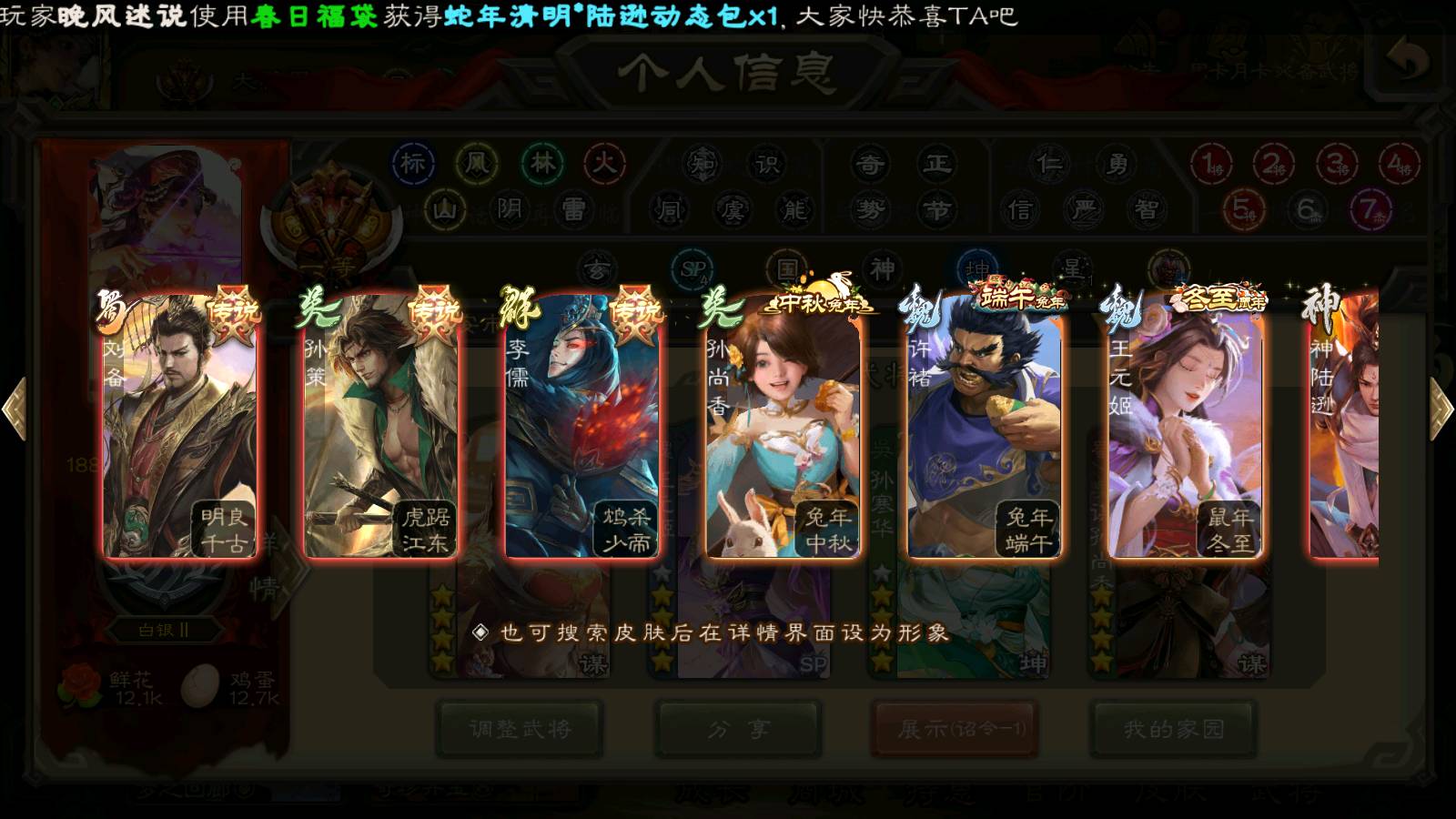 (群雄):杨彪,杜预,谋貂蝉,界左慈,张让,界李儒,苏飞,麴义,许攸,司马昭,南华老仙,谋张角,陶谦,公孙康,郑玄,星黄忠,星董卓,左慈,沮授,兀突骨