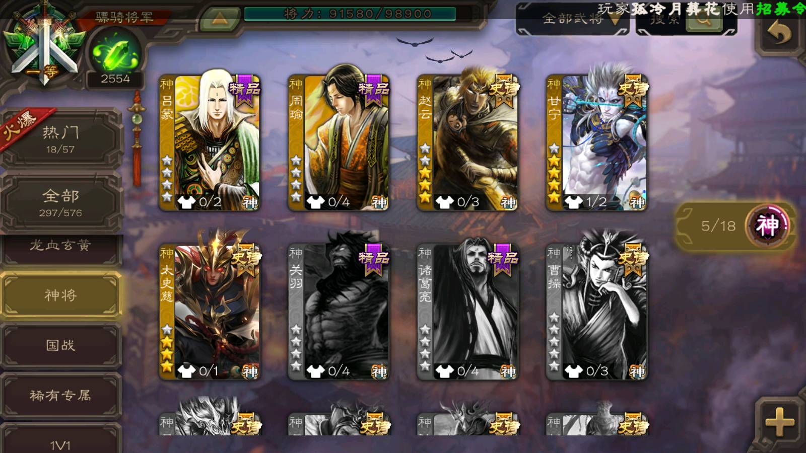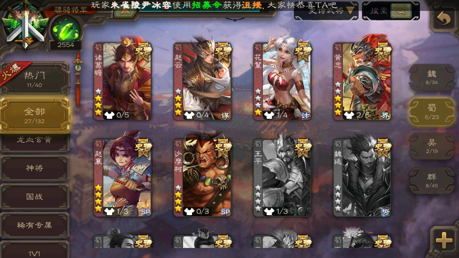 (蜀国):诸葛瞻,谋赵云,界黄忠,花鬘,沙摩柯,赵襄