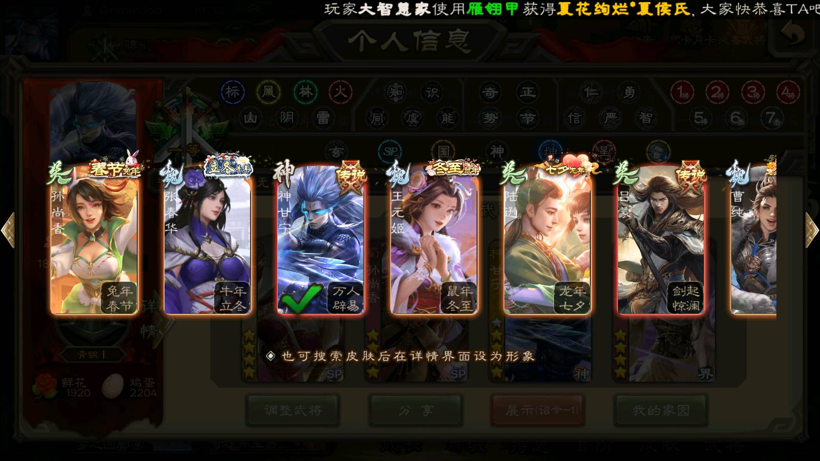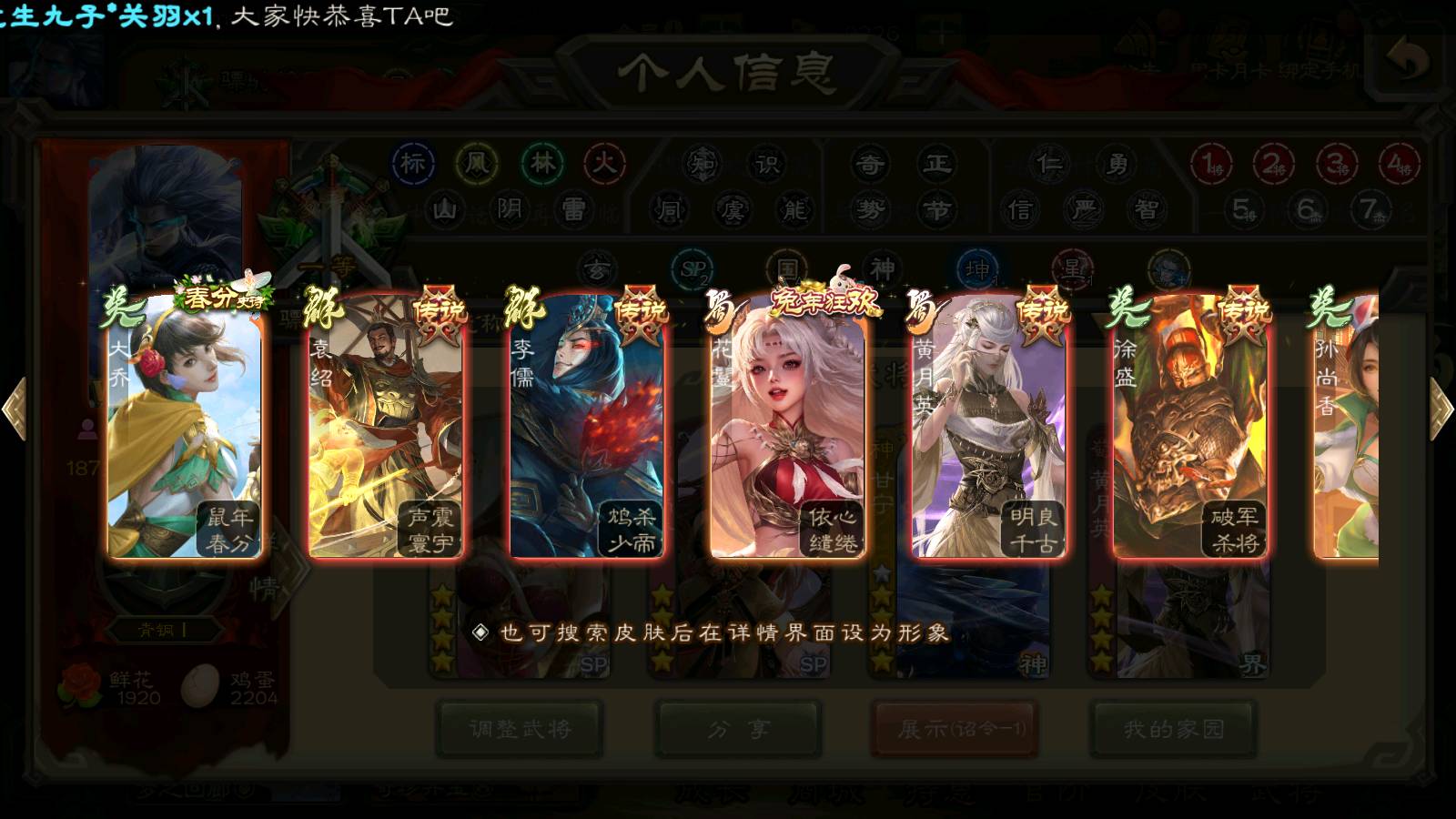 商品编号22278 全部皮肤337,动态皮肤31,全部武将297,排位武将84,国战武将83,史诗武将27,金票8.2w