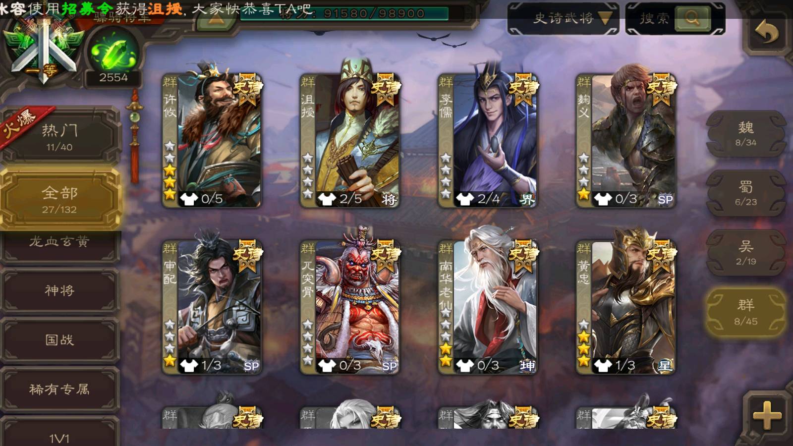 (群雄):南华老仙,麴义,许攸,界李儒,审配,星黄忠,沮授,兀突骨