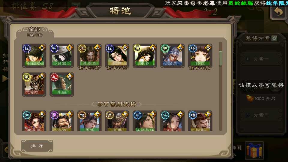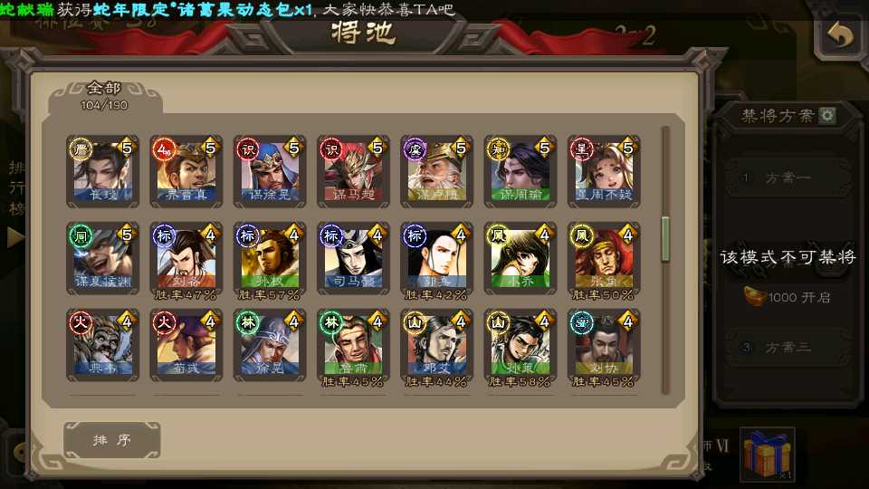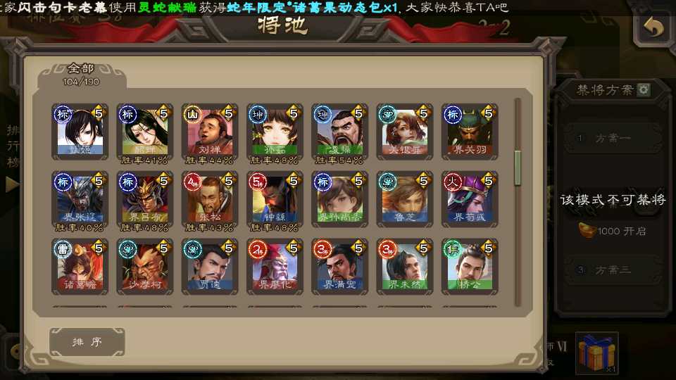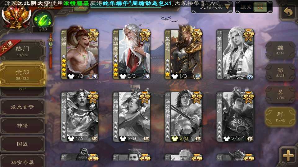 (群雄):祢衡,南华老仙,麴义,许攸,界李儒,苏飞,审配,星黄忠,左慈,沮授,兀突骨