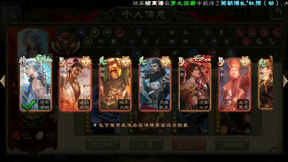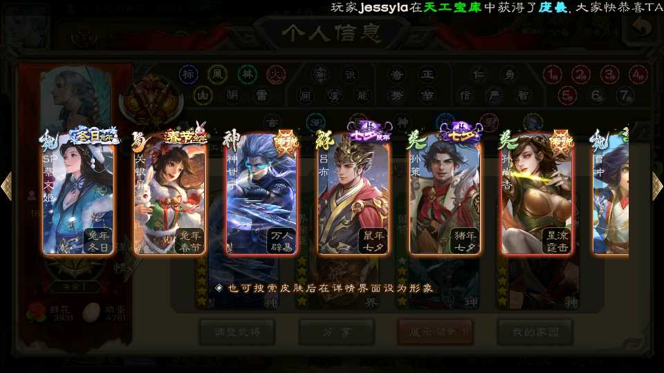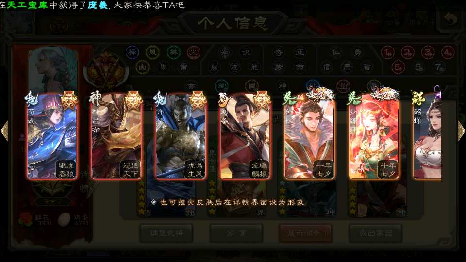 商品编号22293 全部皮肤377,动态皮肤38,全部武将354,排位武将104,国战武将93,史诗武将38,雁翎3.5w