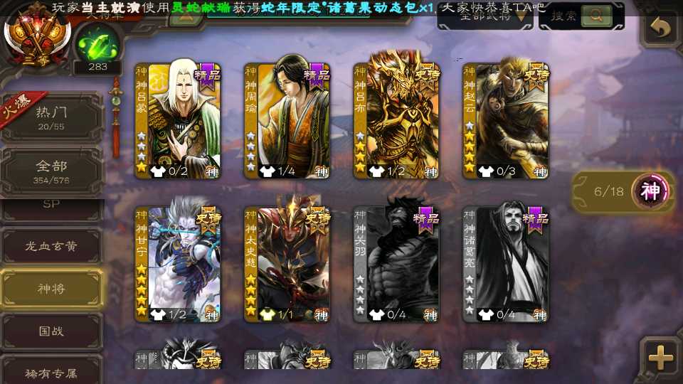 (神将):神甘宁,神太史慈,神赵云,神吕布