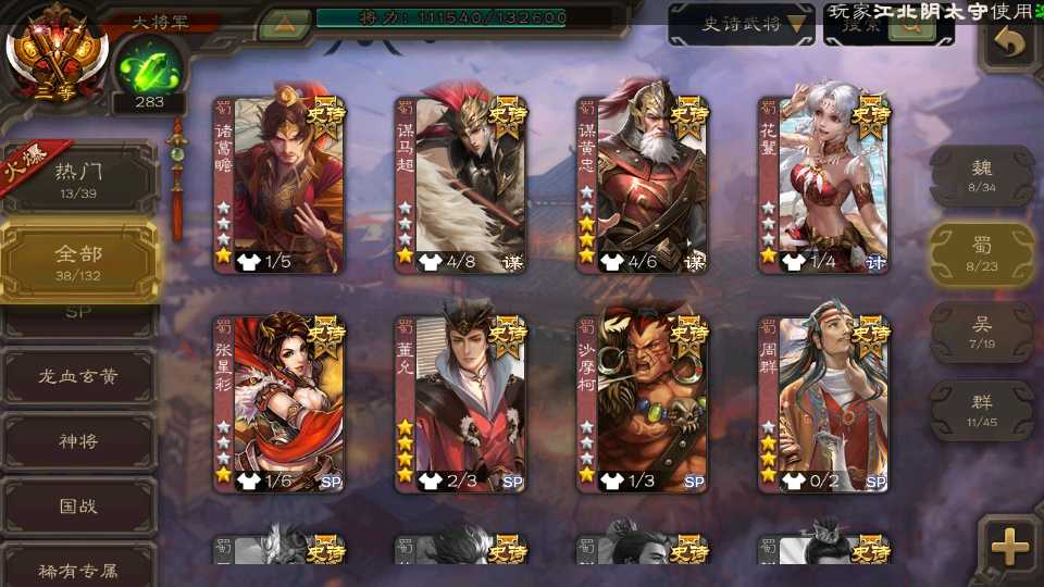 (蜀国):周群,谋黄忠,诸葛瞻,花鬘,沙摩柯,谋马超,张星彩,董允