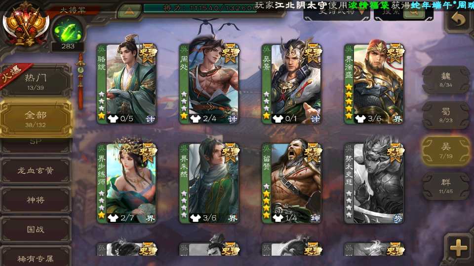 (吴国):界徐盛,留赞,周处,骆统,界朱然,界步练师,吴景