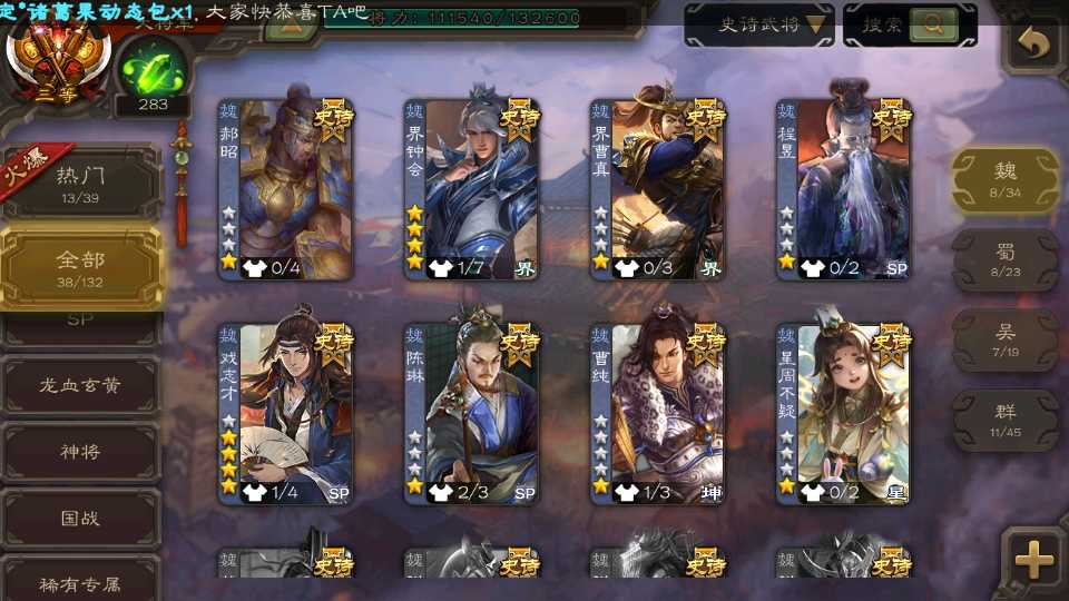 (魏国):戏志才,界钟会,郝昭,界曹真,星周不疑,程昱,曹纯,陈琳