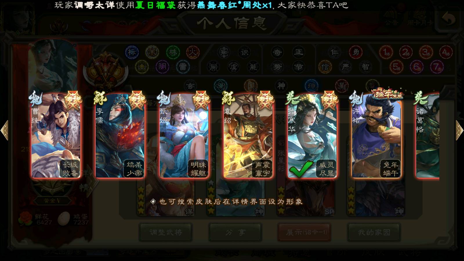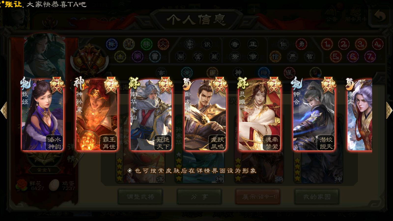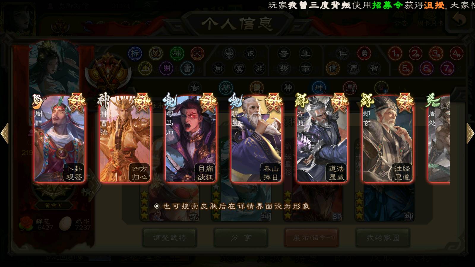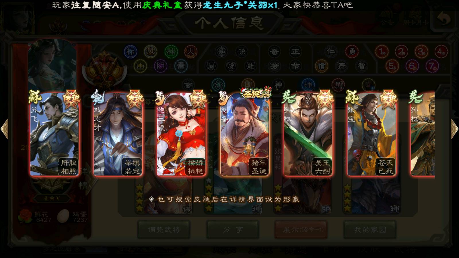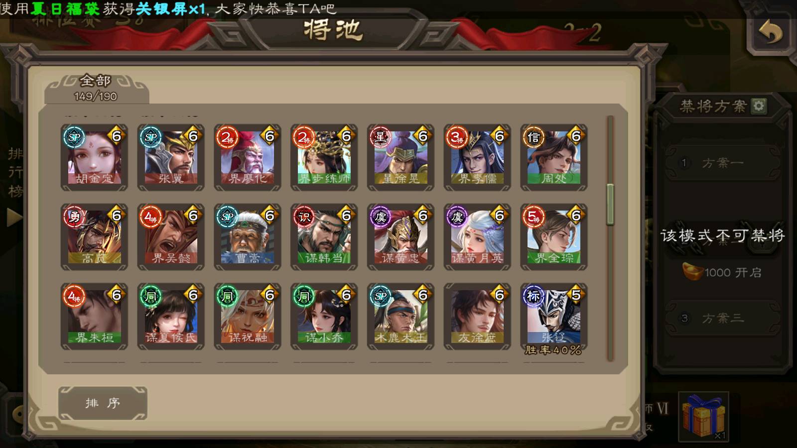 (群雄):刘焉,杨彪,杜预,祢衡,界左慈,南华老仙,麴义,许攸,十常侍,星董卓,谋貂蝉,司马昭,张让,界李儒,苏飞,庞德公,星甘宁,谋公孙瓒,张琪瑛,裴秀,卑弥呼,士燮,谋张角,王允,公孙康,郑玄,陶谦,审配,星黄忠,左慈,沮授,兀突骨