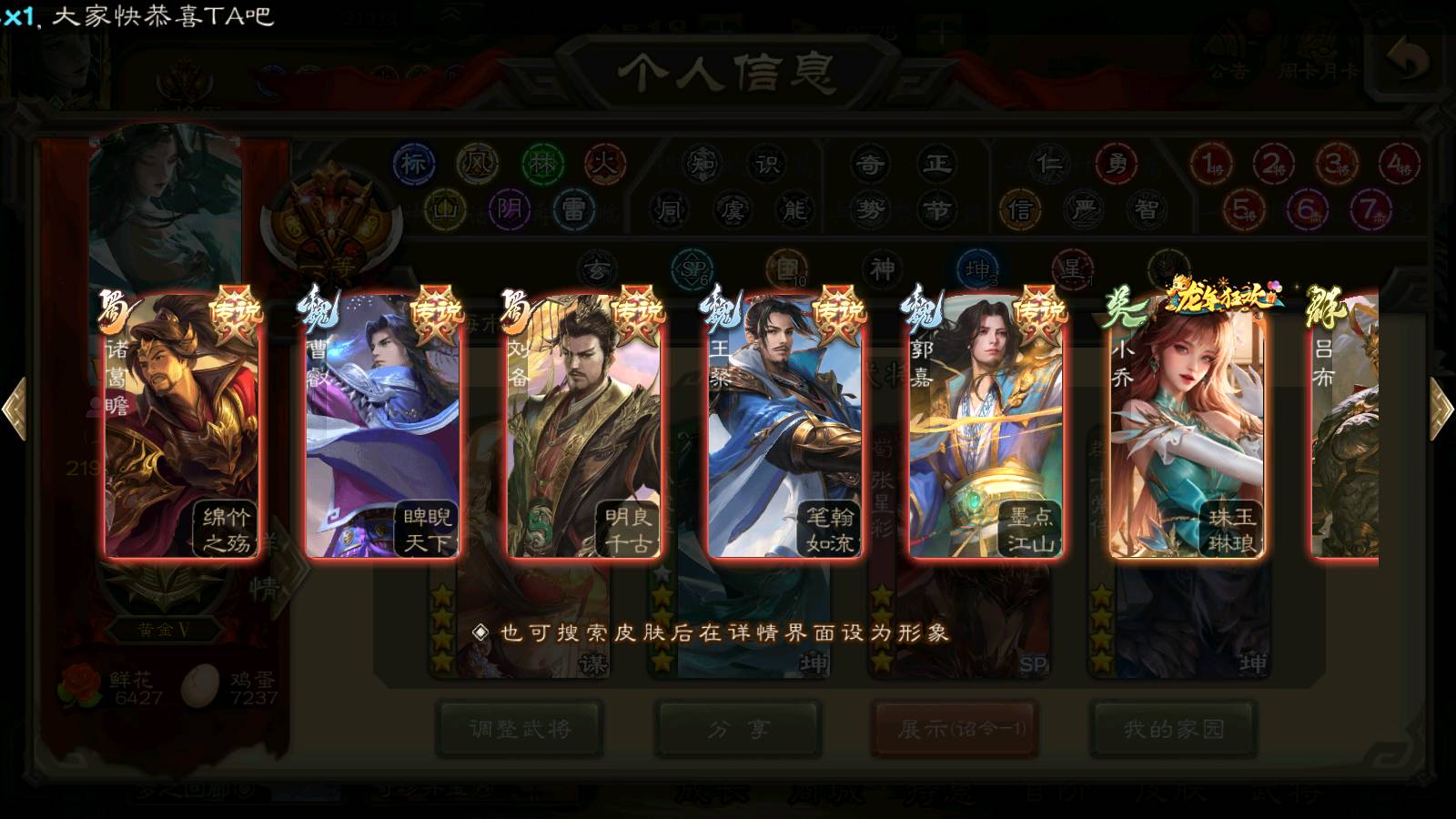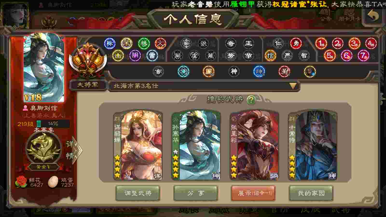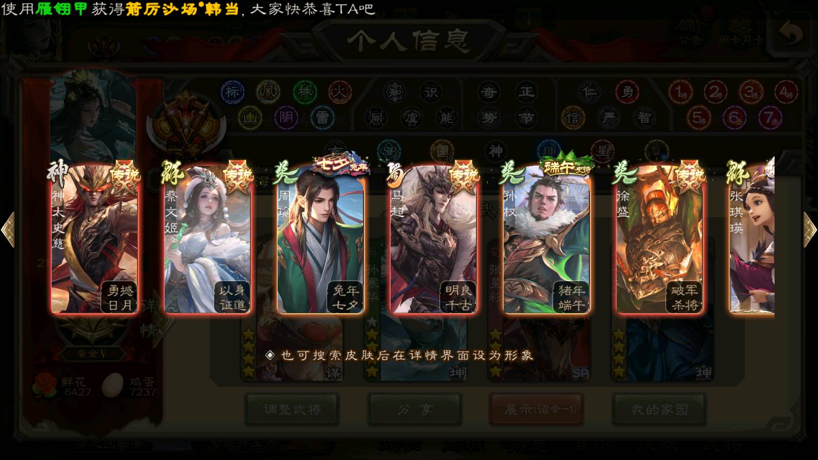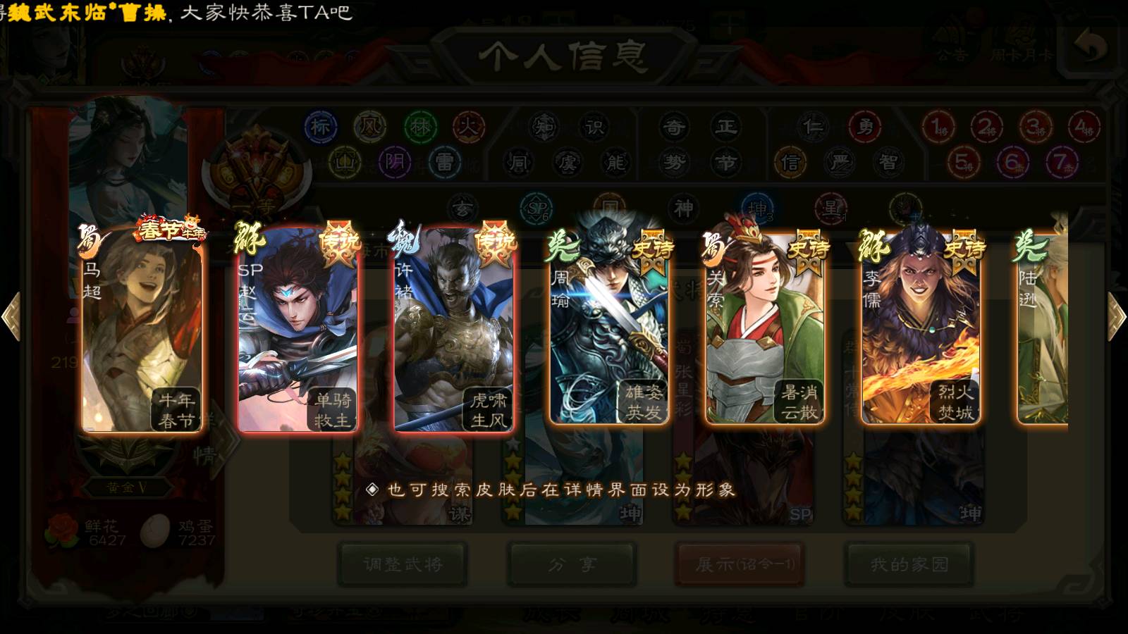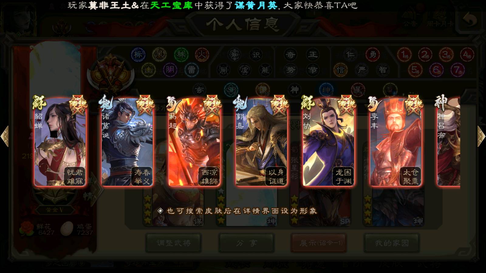 (群雄):刘焉,杨彪,杜预,祢衡,界左慈,南华老仙,麴义,许攸,十常侍,星董卓,谋貂蝉,司马昭,张让,界李儒,苏飞,庞德公,星甘宁,谋公孙瓒,张琪瑛,裴秀,卑弥呼,士燮,谋张角,王允,公孙康,郑玄,陶谦,审配,星黄忠,左慈,沮授,兀突骨