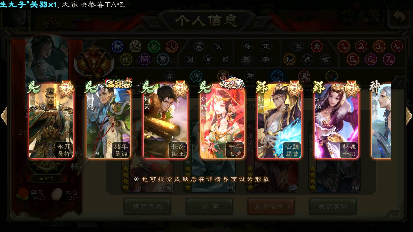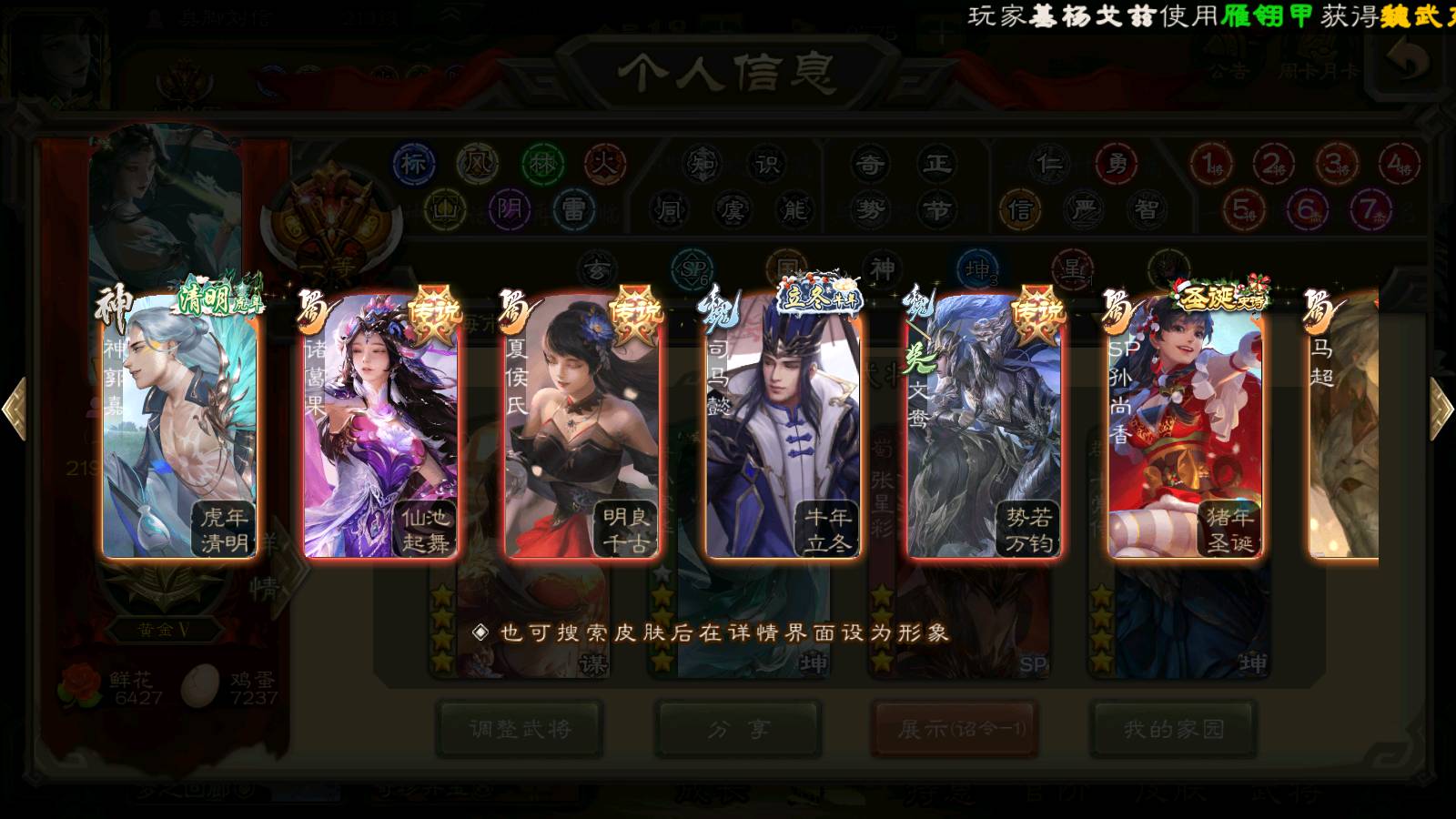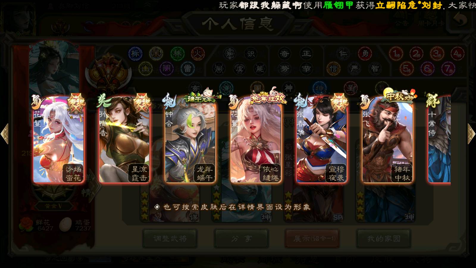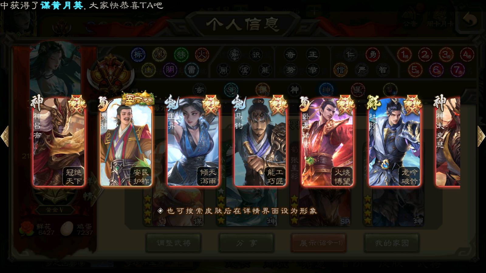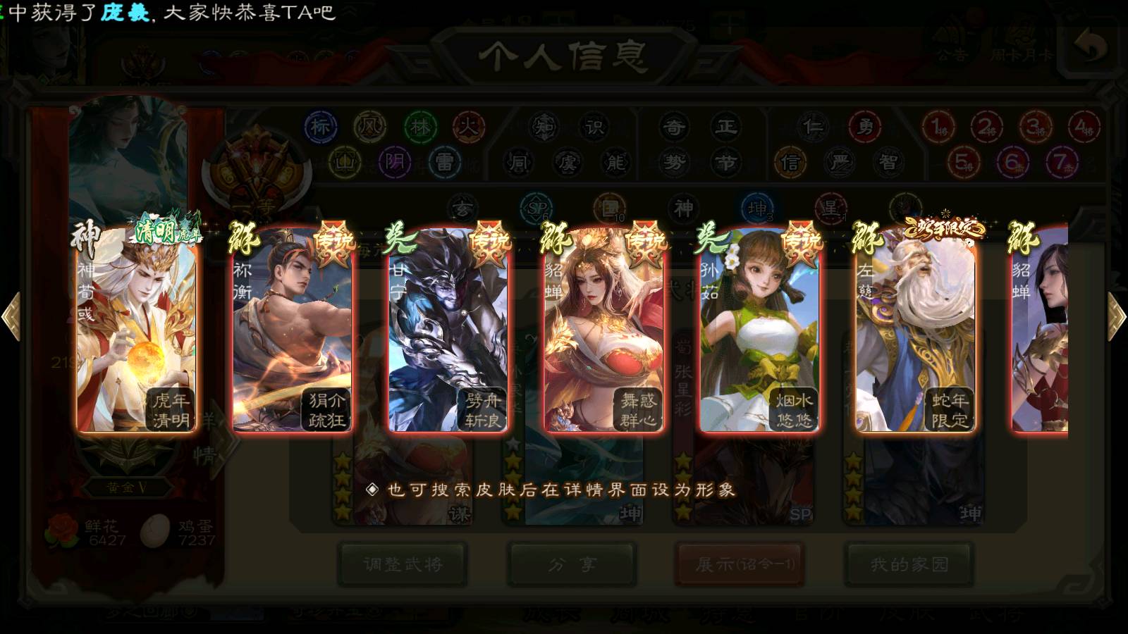 (群雄):刘焉,杨彪,杜预,祢衡,界左慈,南华老仙,麴义,许攸,十常侍,星董卓,谋貂蝉,司马昭,张让,界李儒,苏飞,庞德公,星甘宁,谋公孙瓒,张琪瑛,裴秀,卑弥呼,士燮,谋张角,王允,公孙康,郑玄,陶谦,审配,星黄忠,左慈,沮授,兀突骨