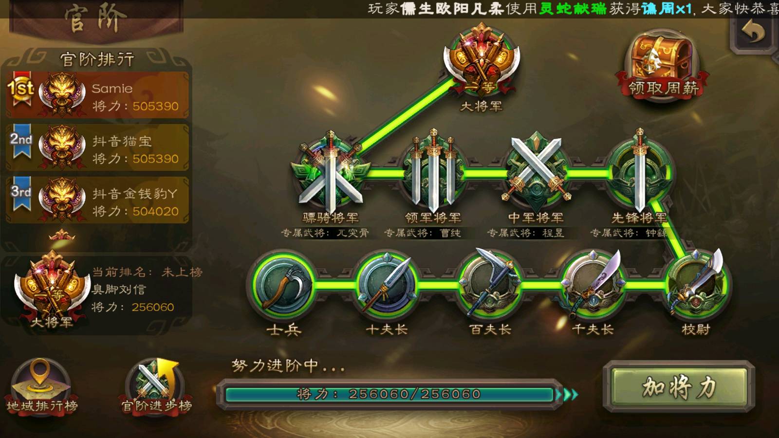 官阶:1等大将军