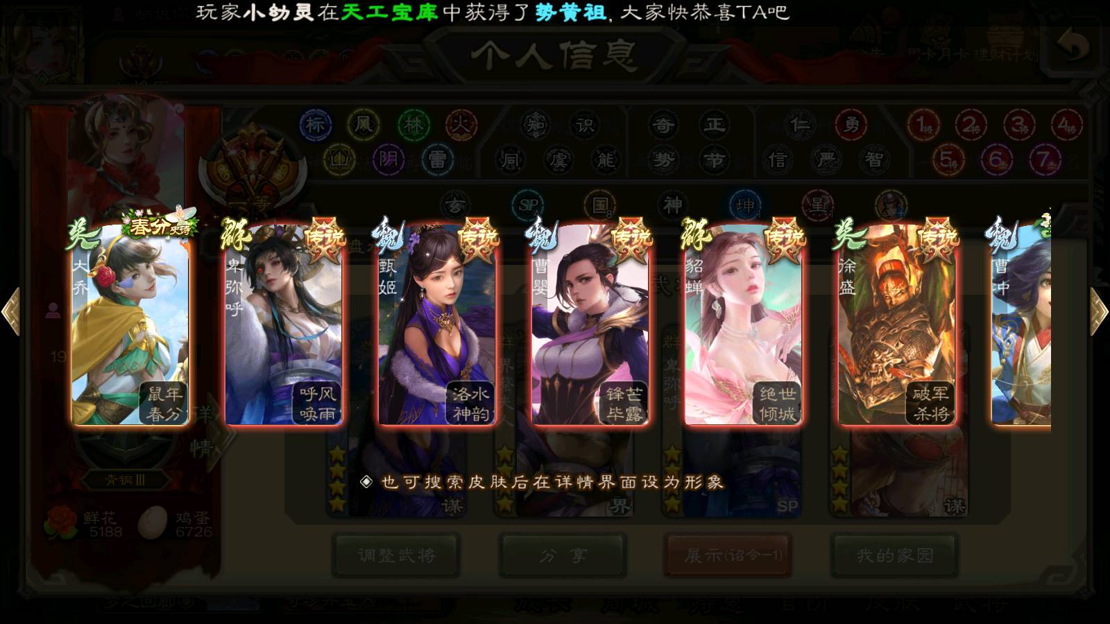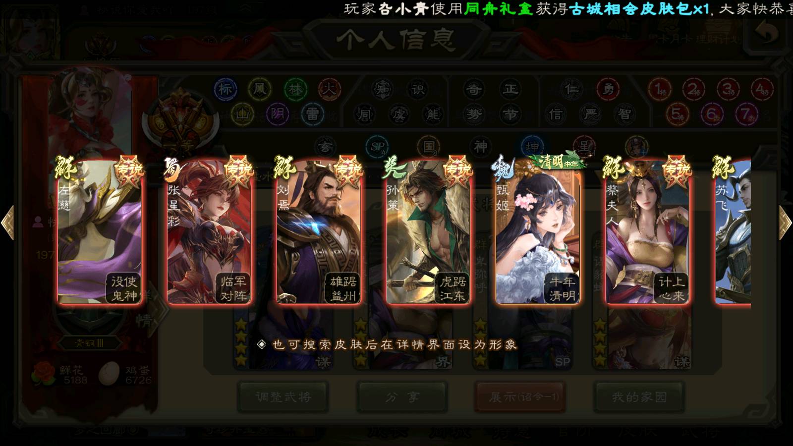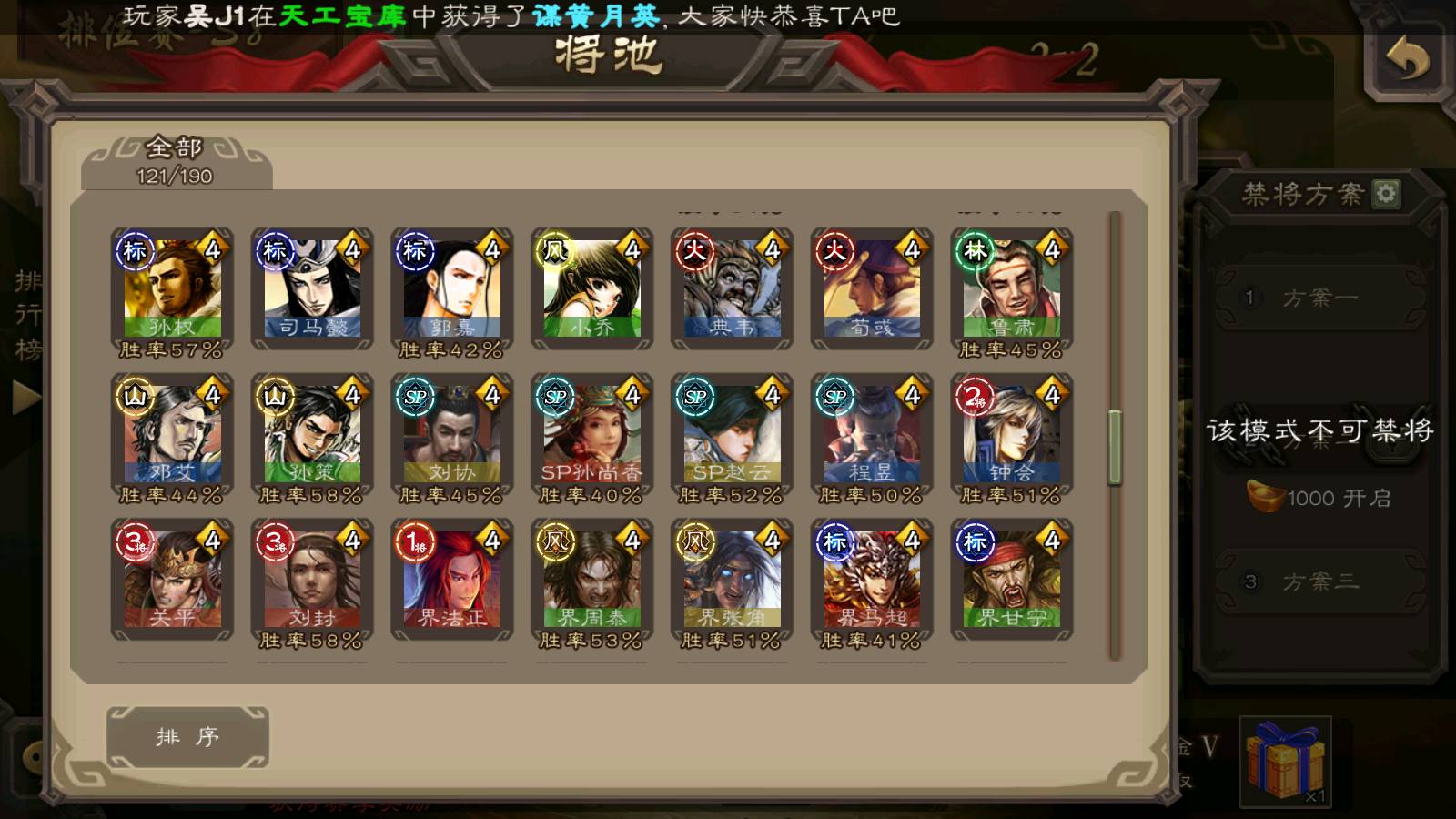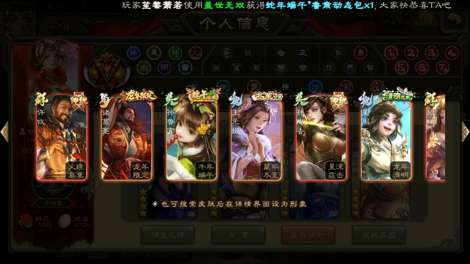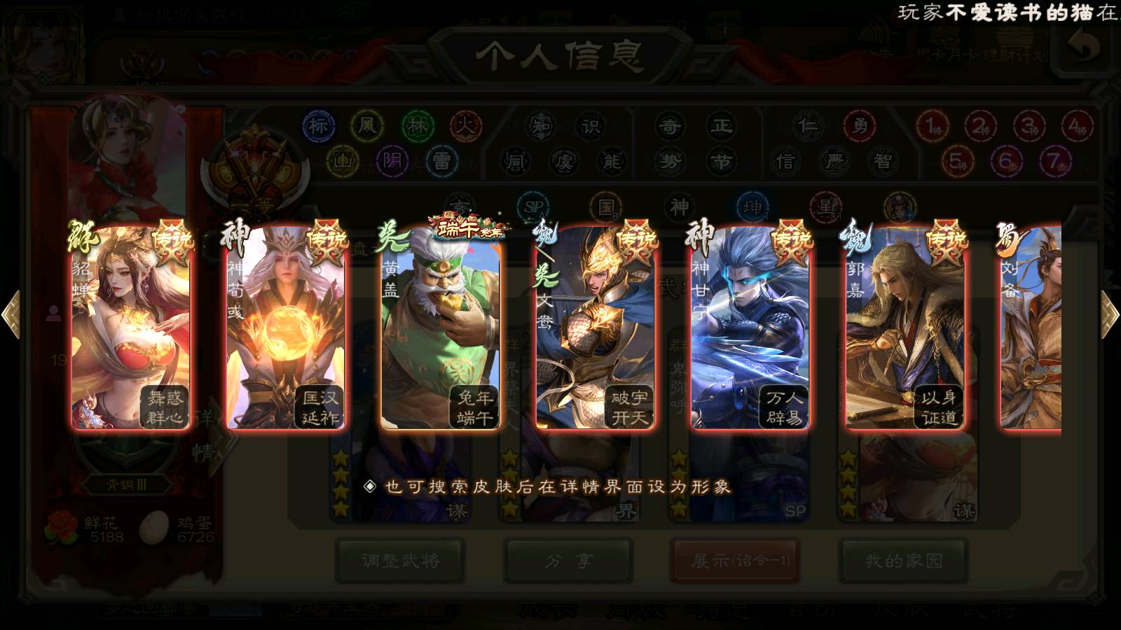 (群雄):刘焉,杨彪,杜预,祢衡,界左慈,界沮授,南华老仙,许攸,谋貂蝉,张让,界李儒,苏飞,裴秀,卑弥呼,公孙康,陶谦,星黄忠,左慈,沮授,兀突骨
