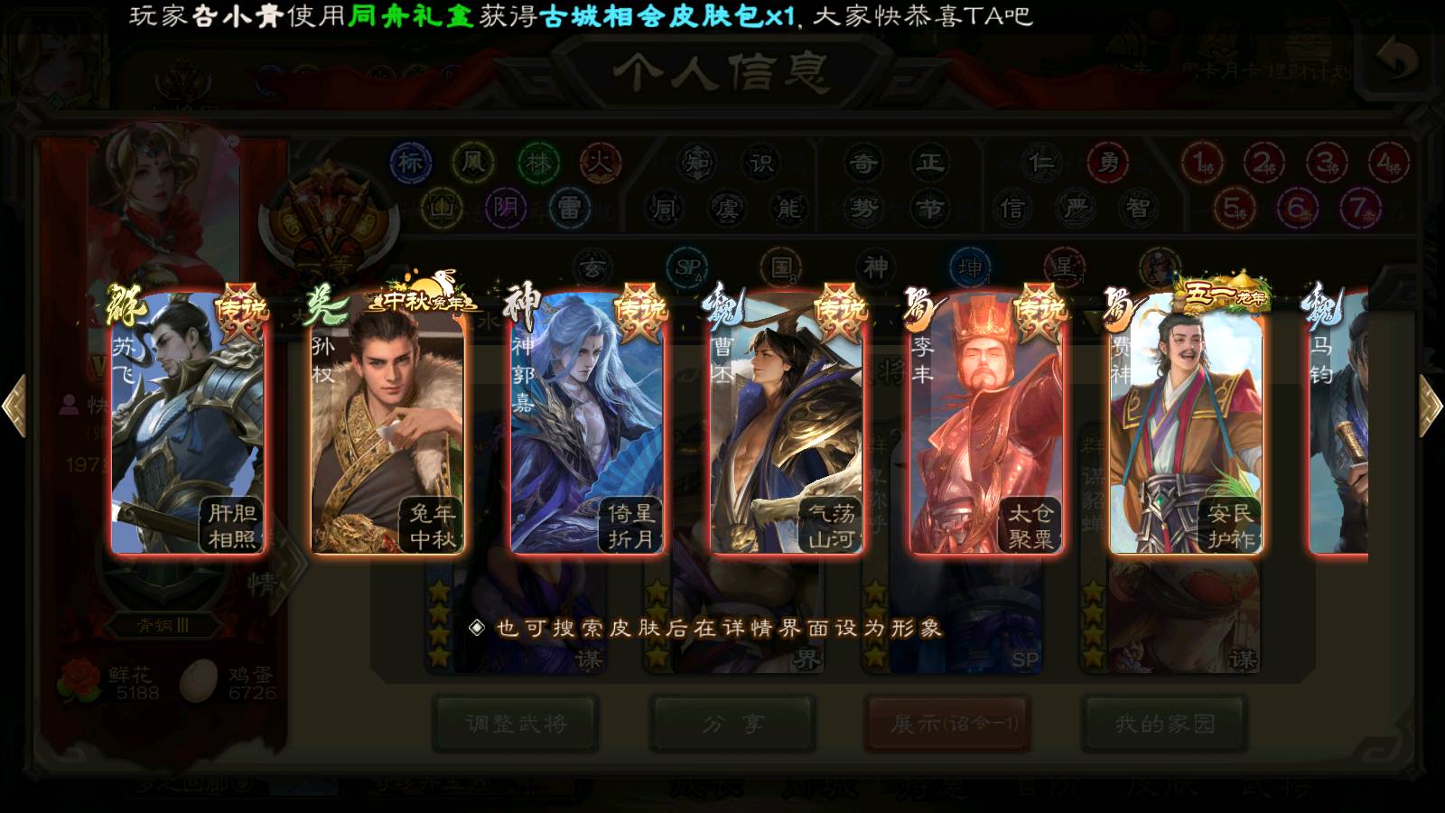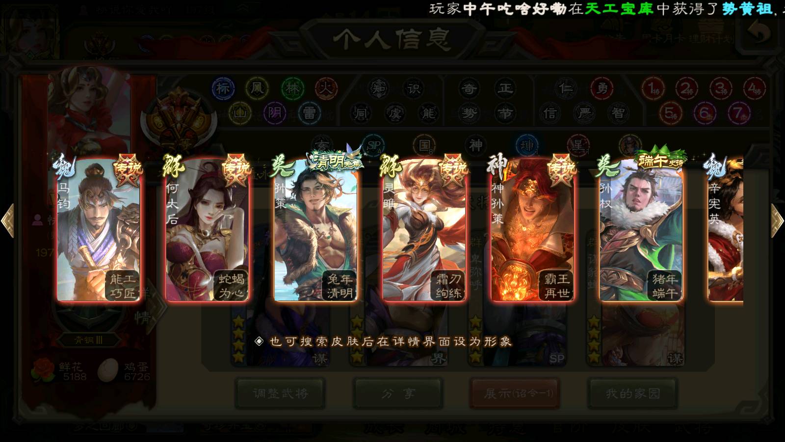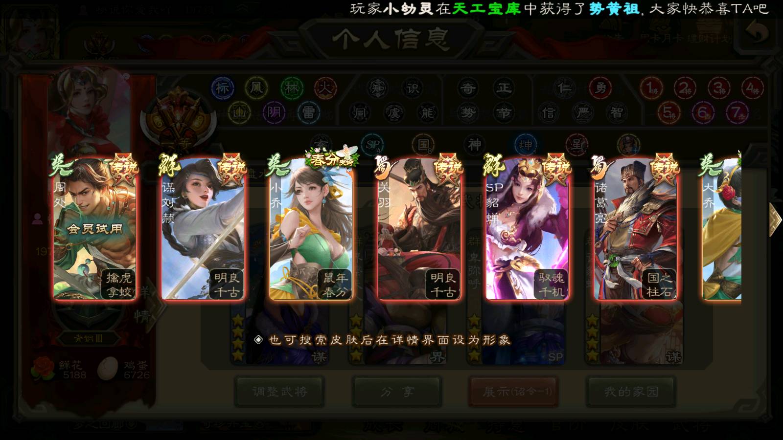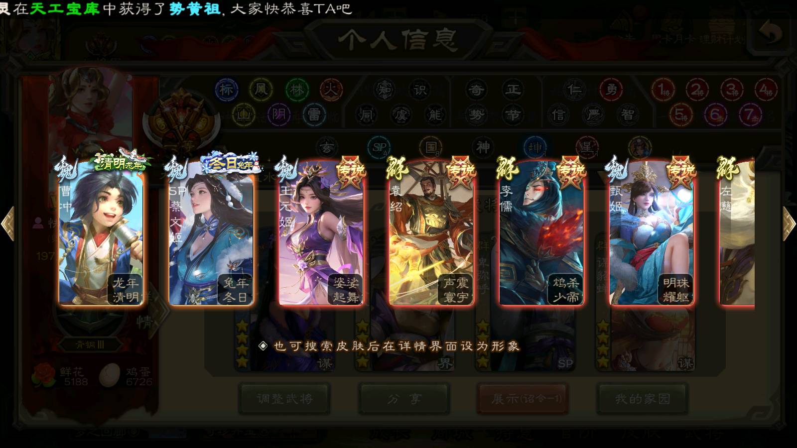 (群雄):刘焉,杨彪,杜预,祢衡,界左慈,界沮授,南华老仙,许攸,谋貂蝉,张让,界李儒,苏飞,裴秀,卑弥呼,公孙康,陶谦,星黄忠,左慈,沮授,兀突骨