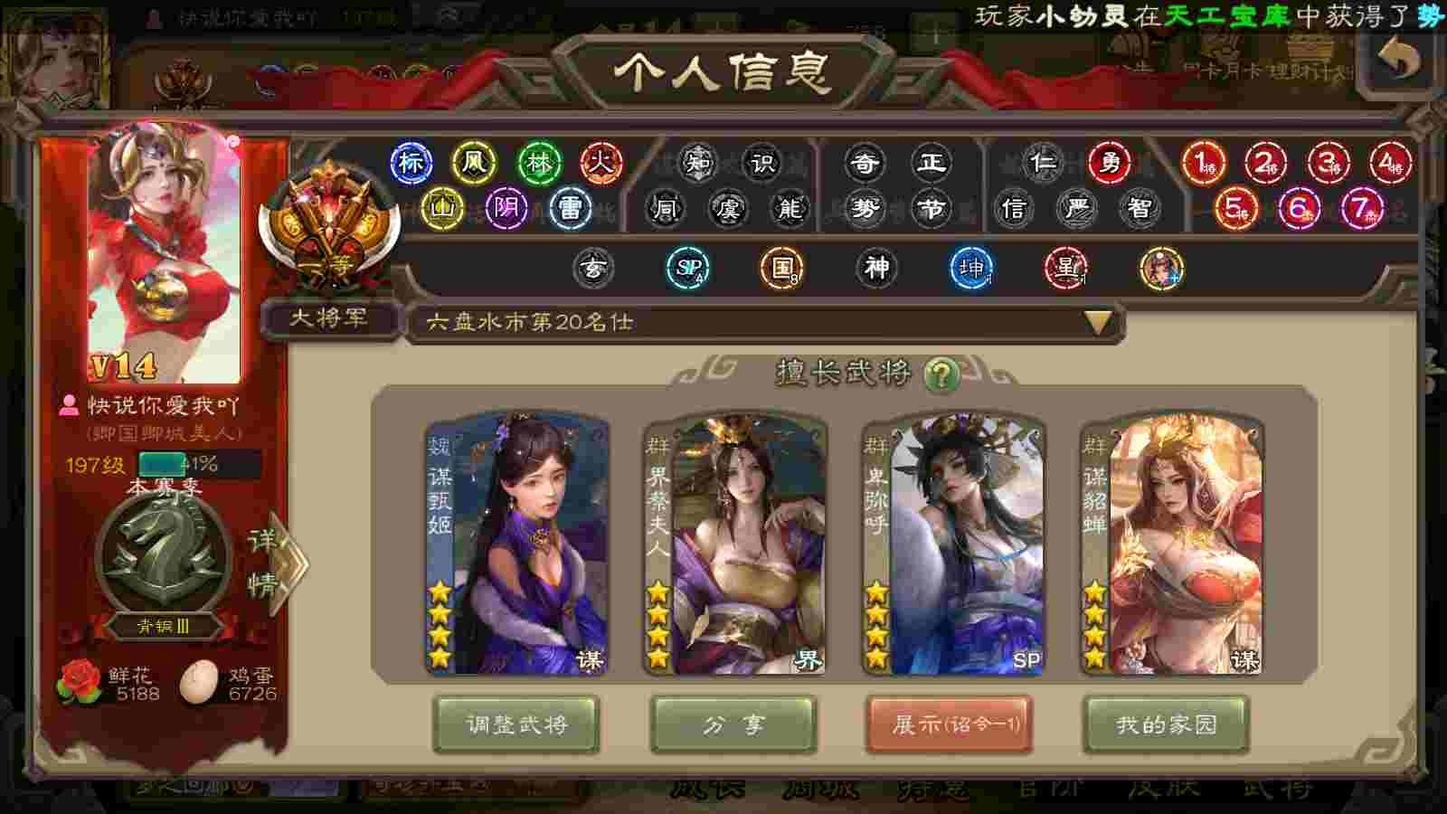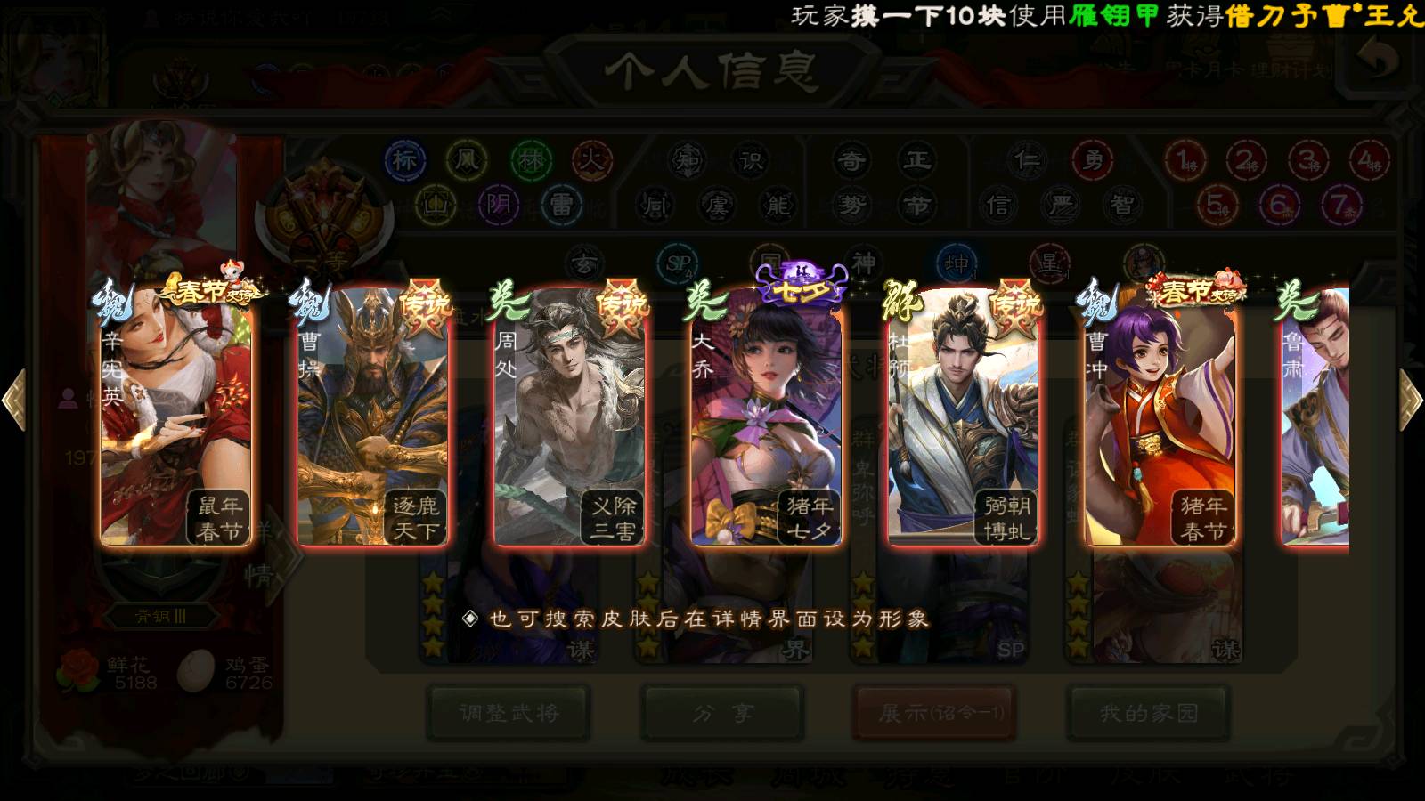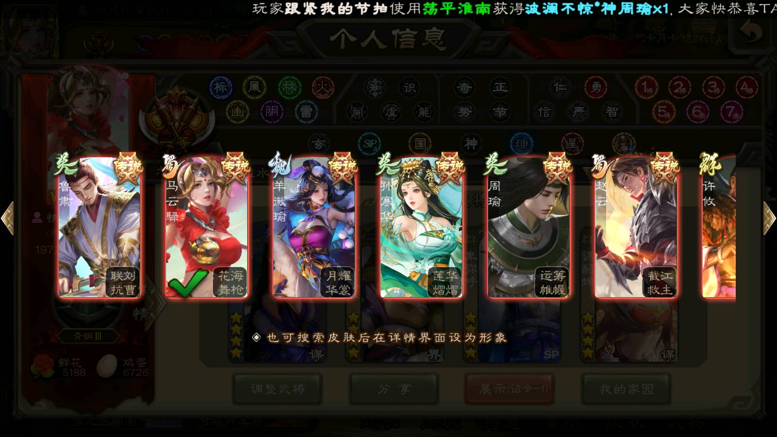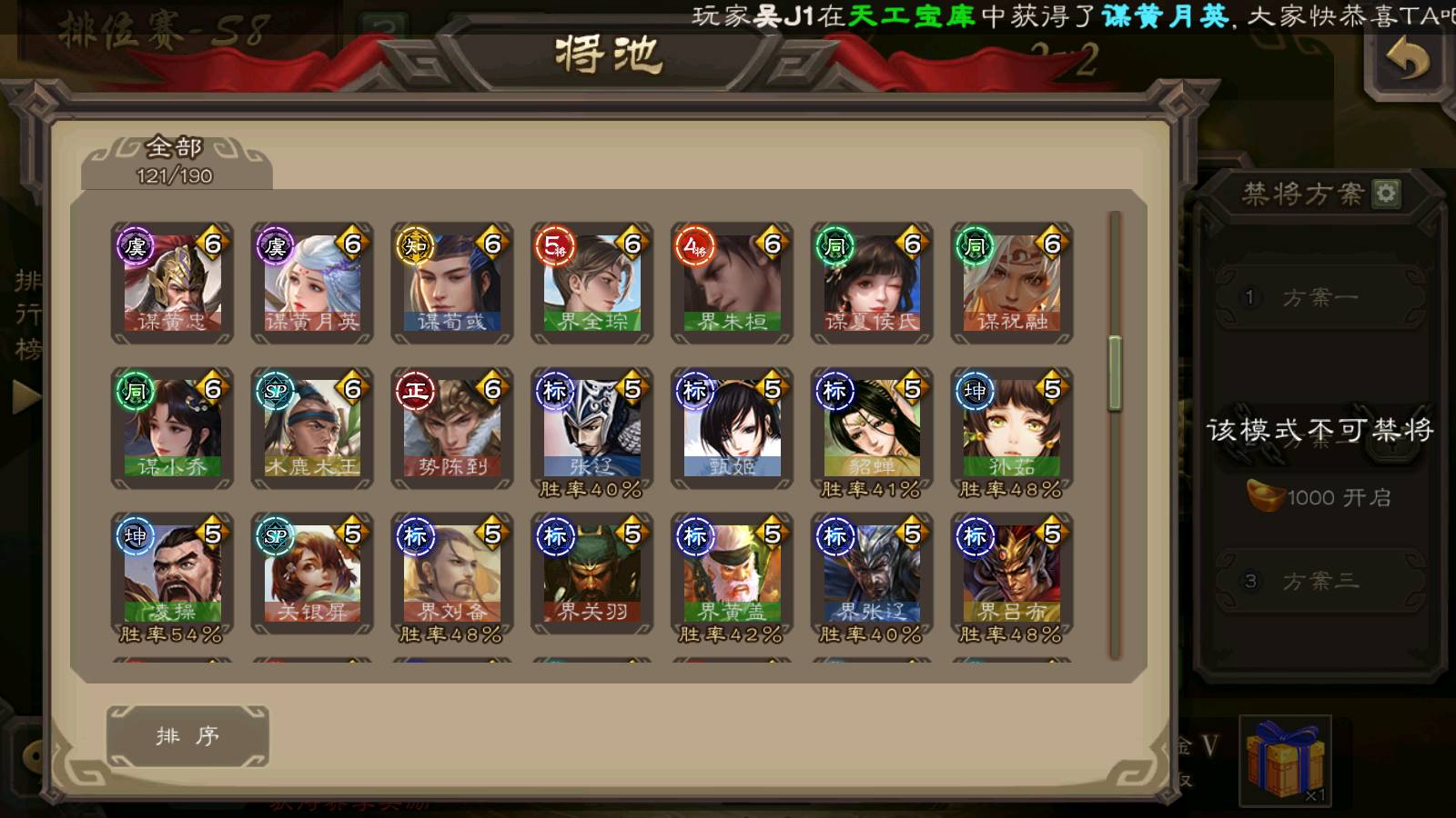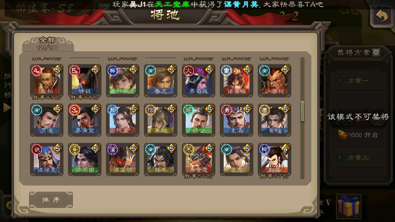 (群雄):刘焉,杨彪,杜预,祢衡,界左慈,界沮授,南华老仙,许攸,谋貂蝉,张让,界李儒,苏飞,裴秀,卑弥呼,公孙康,陶谦,星黄忠,左慈,沮授,兀突骨