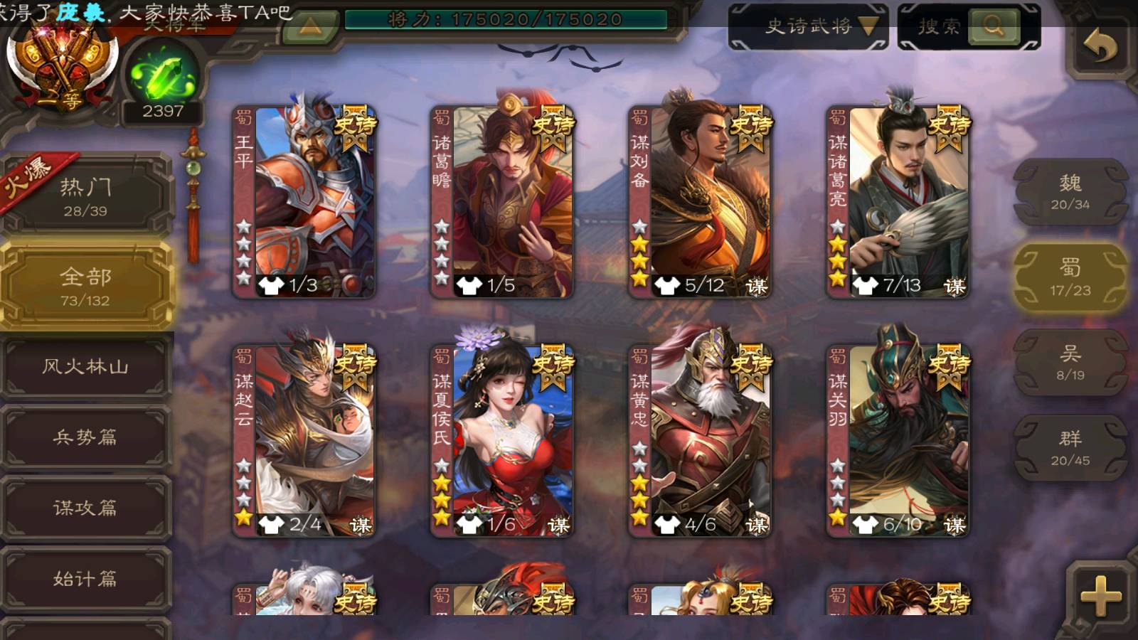 (蜀国):界黄忠,周群,谋黄忠,谋诸葛亮,谋关羽,诸葛瞻,谋刘备,谋赵云,花鬘,沙摩柯,谋夏侯氏,谯周,关索,张星彩,王平,马云騄,赵襄