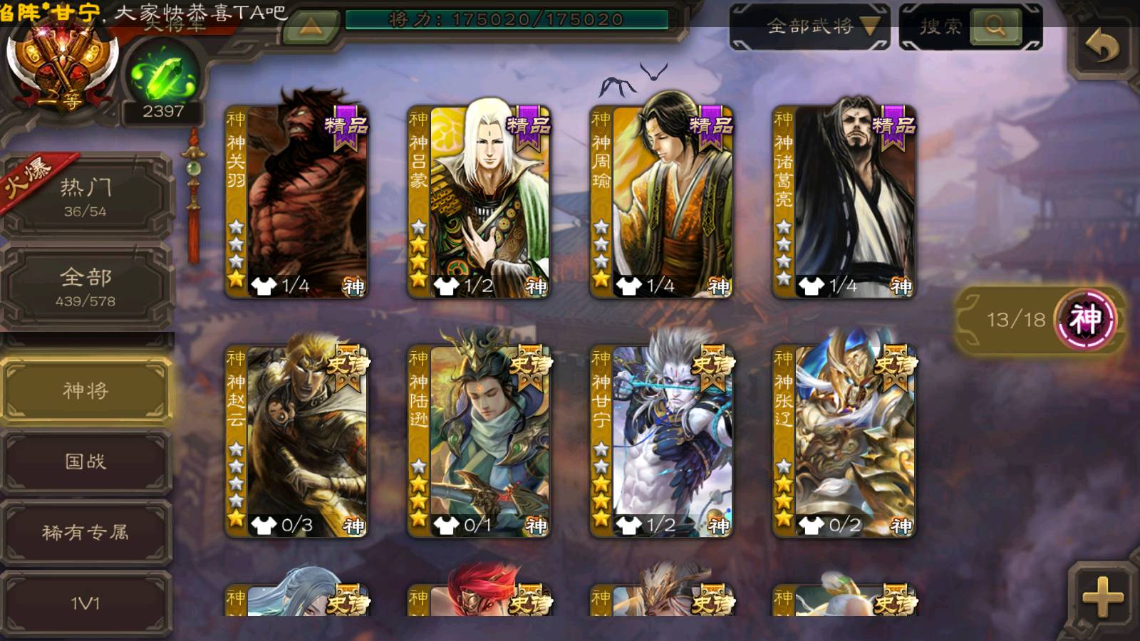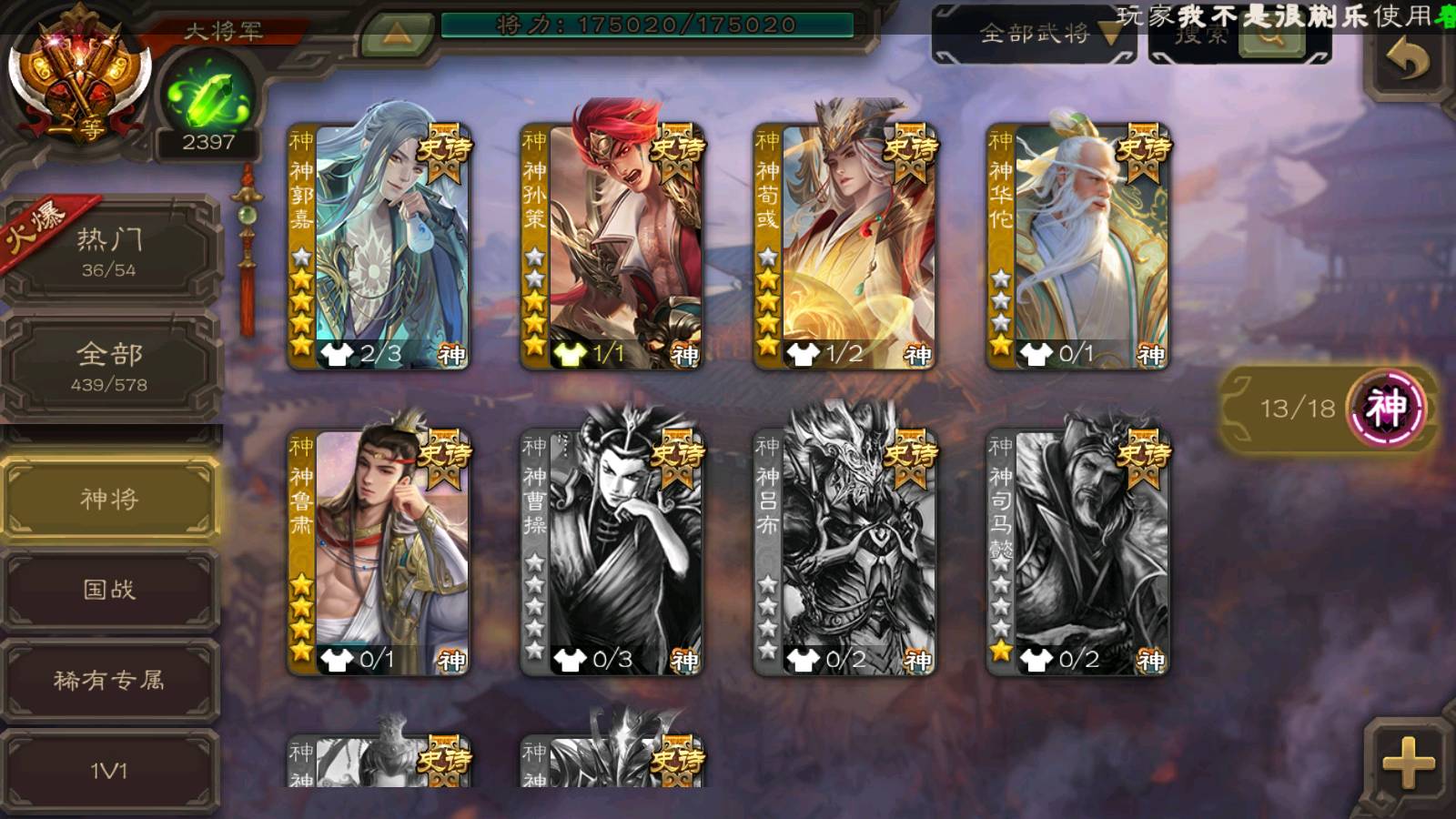 (神将):神荀彧,神郭嘉,神甘宁,神孙策,神鲁肃,神华佗,神陆逊,神赵云,神张辽