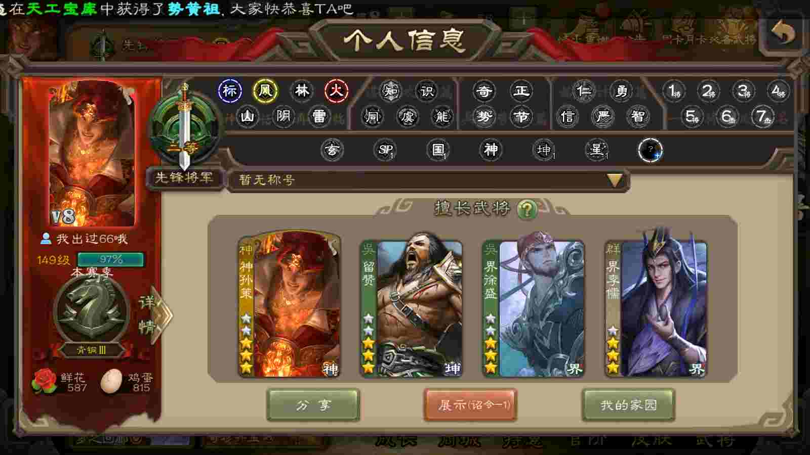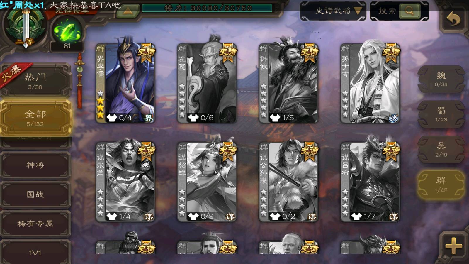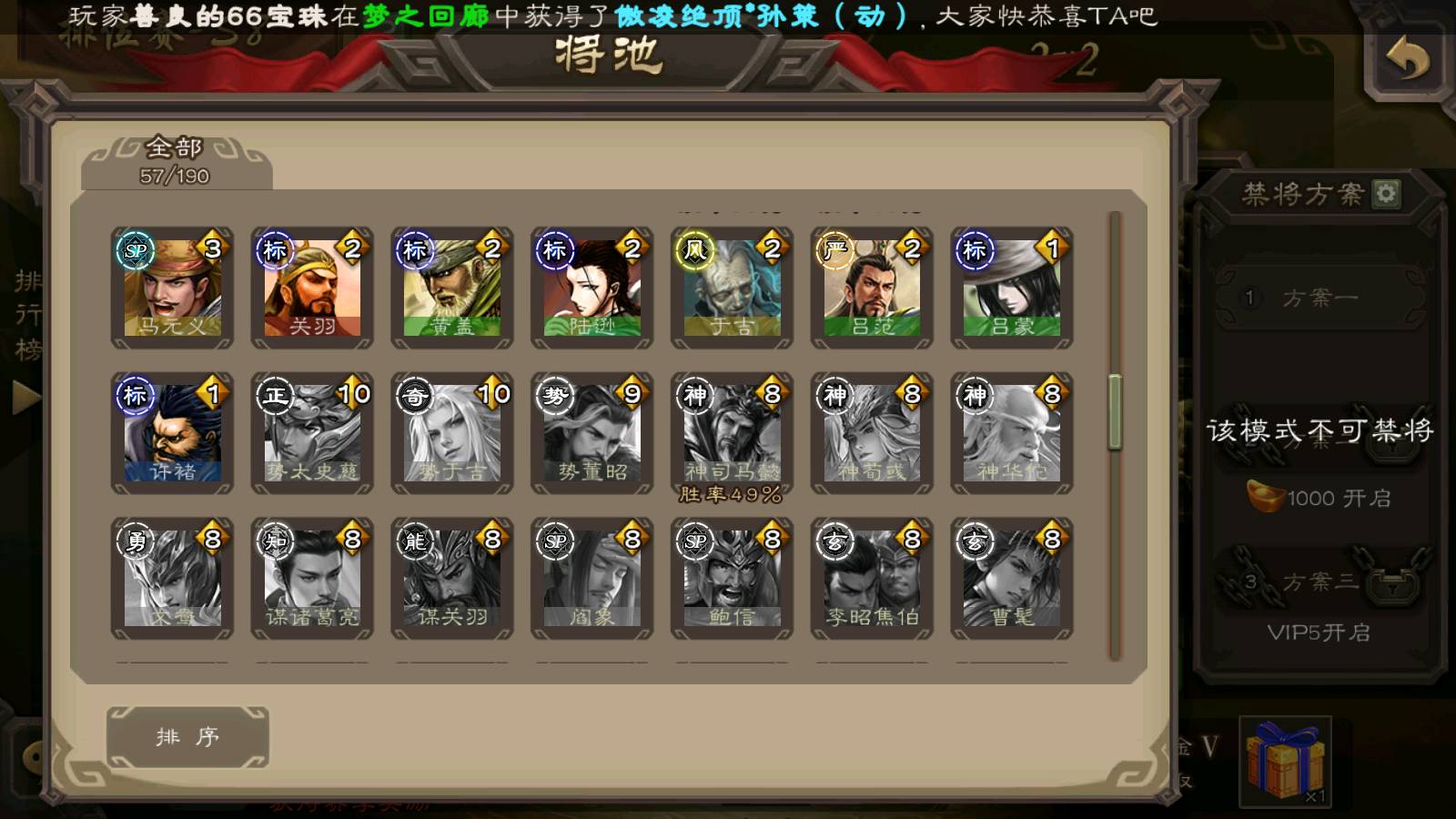 商品编号22311 全部皮肤95,动态皮肤5,全部武将167,排位武将57,国战武将59,史诗武将5,神孙策动皮