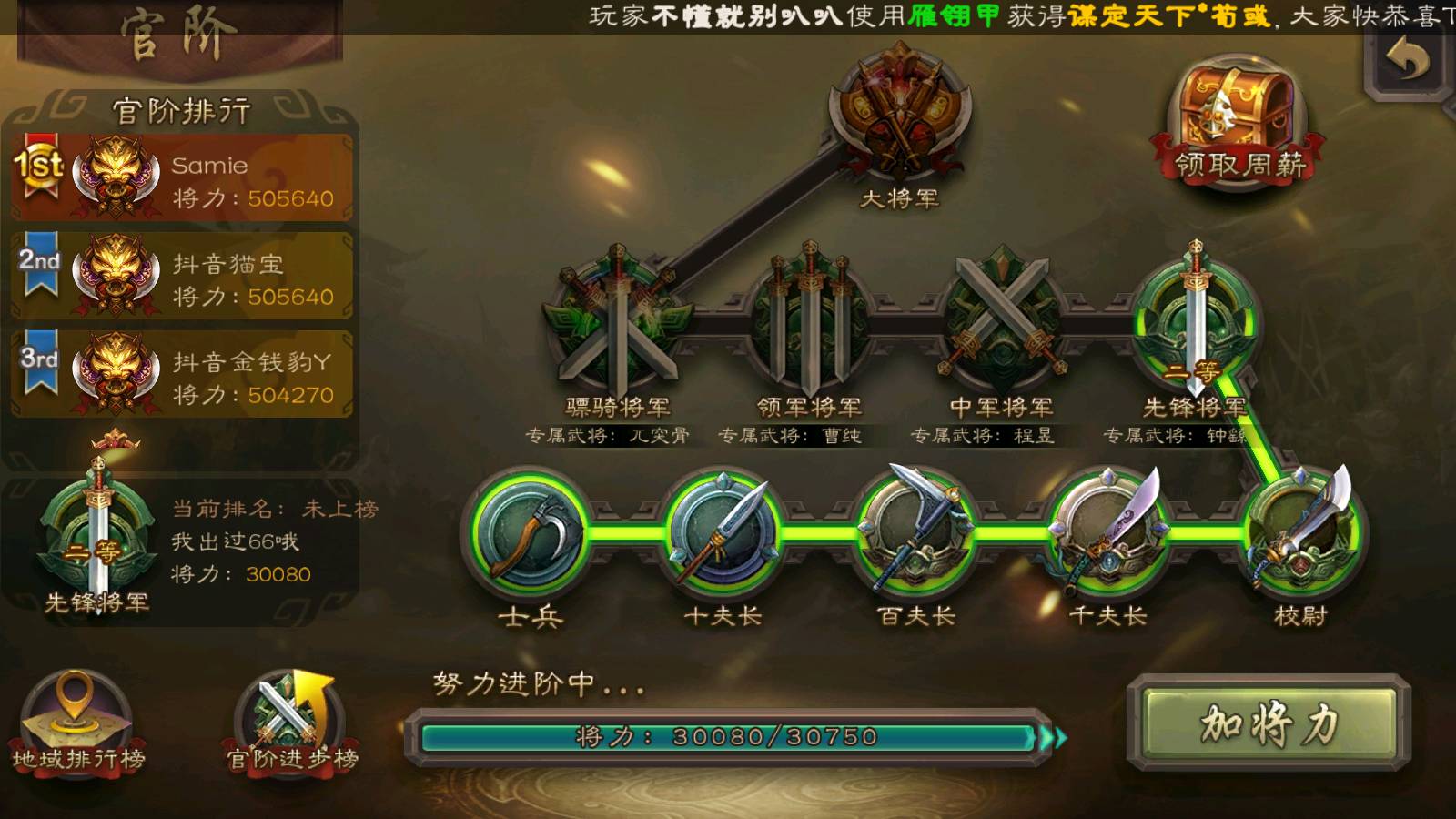 官阶:先锋