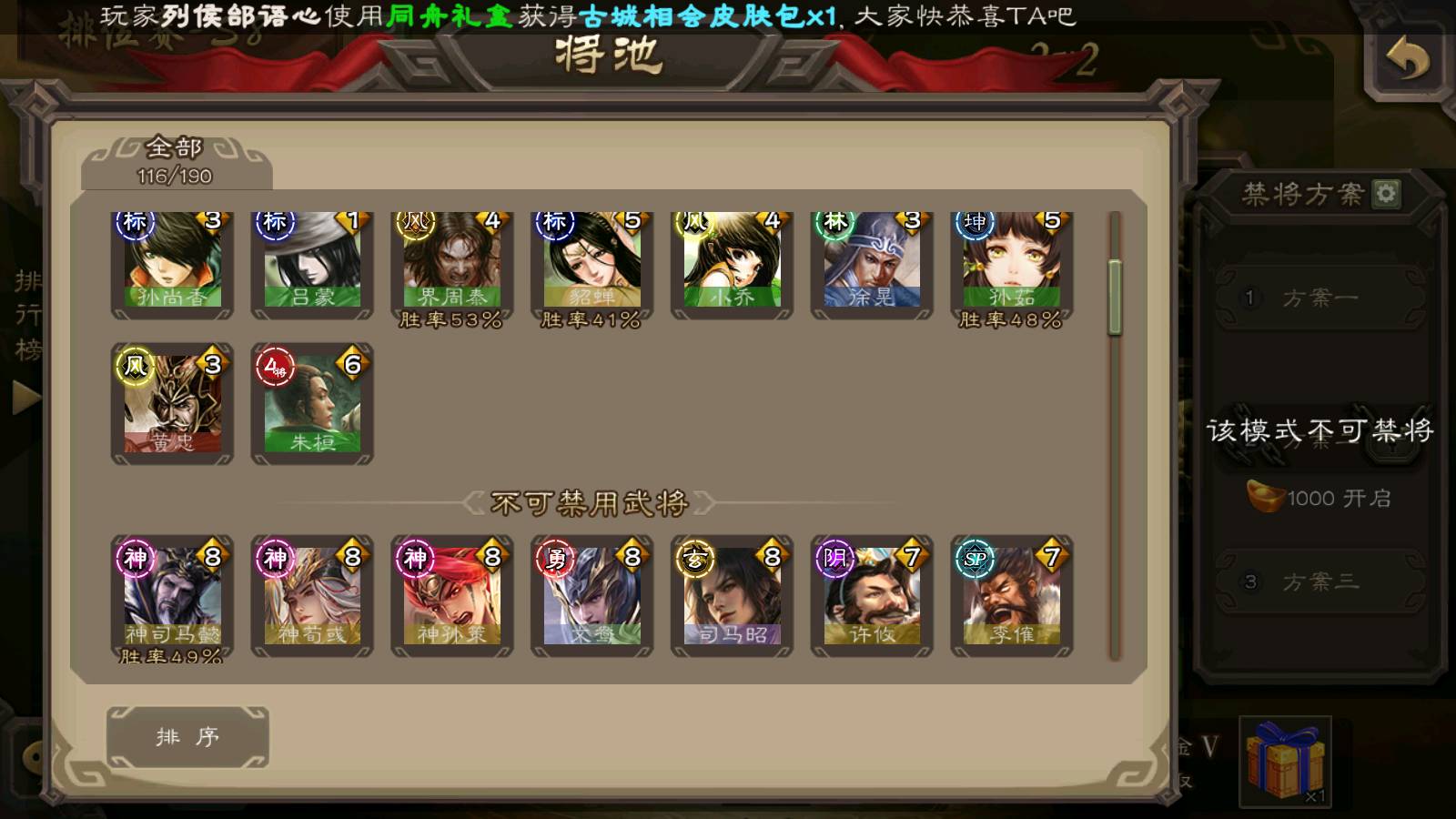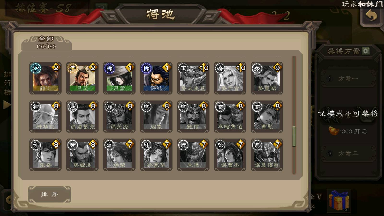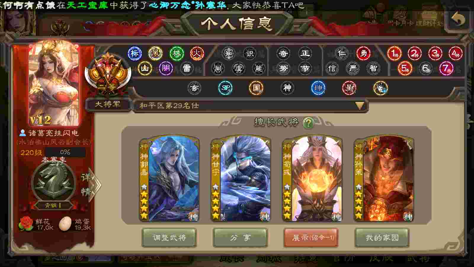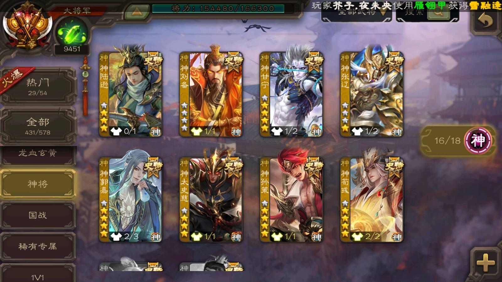 (神将):神荀彧,神郭嘉,神甘宁,神曹操,神孙策,神司马懿,神太史慈,神陆逊,神赵云,神吕布,神刘备,神张辽