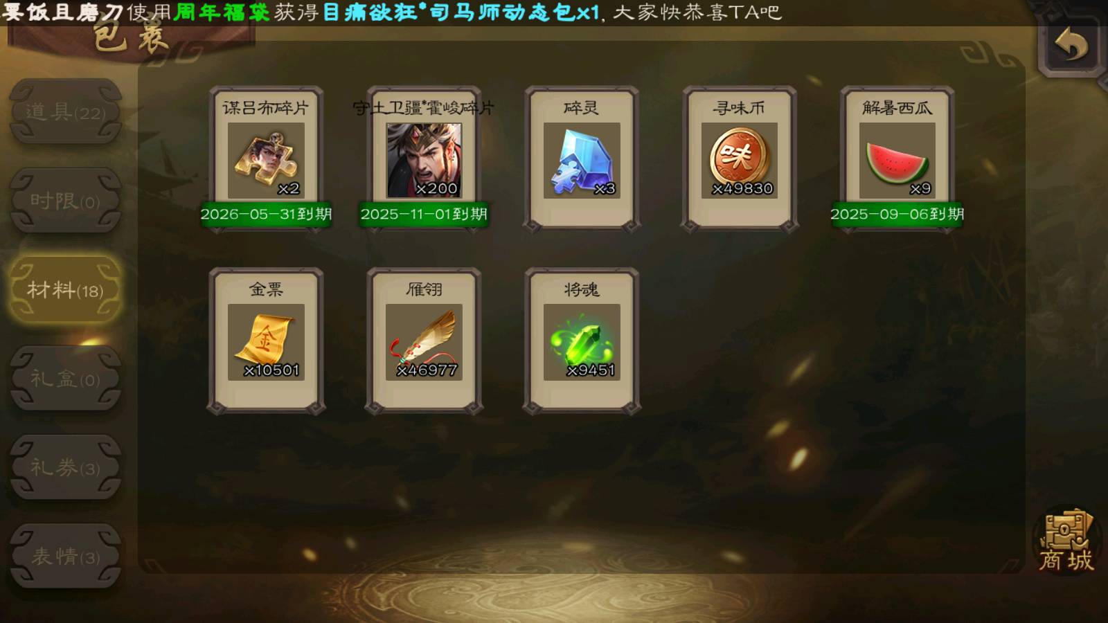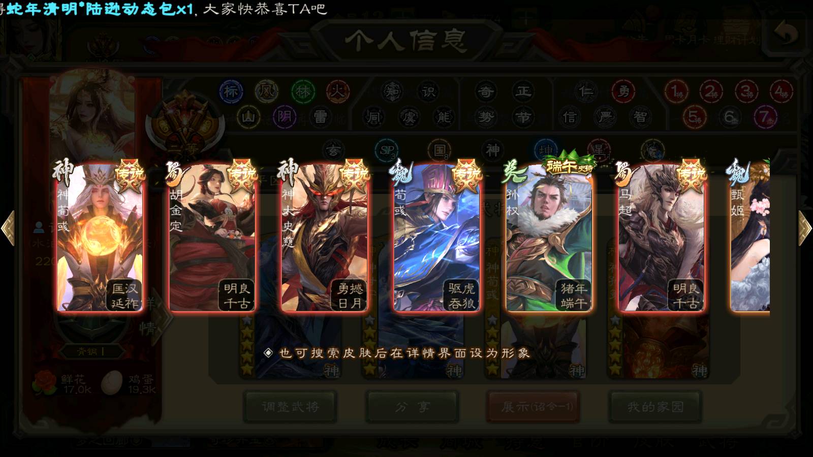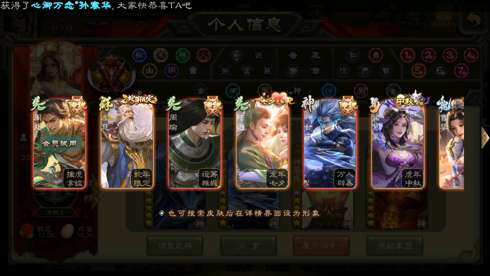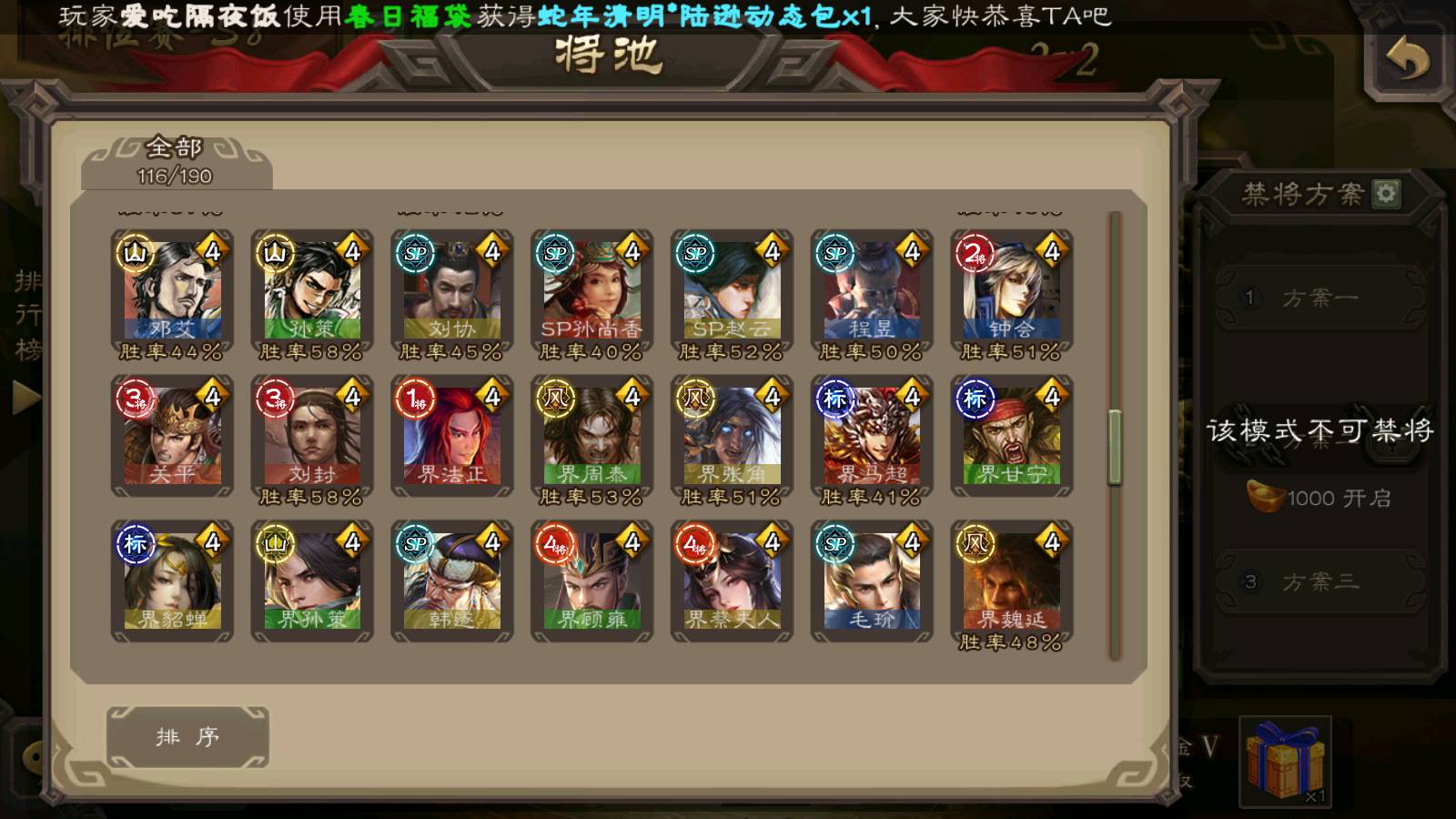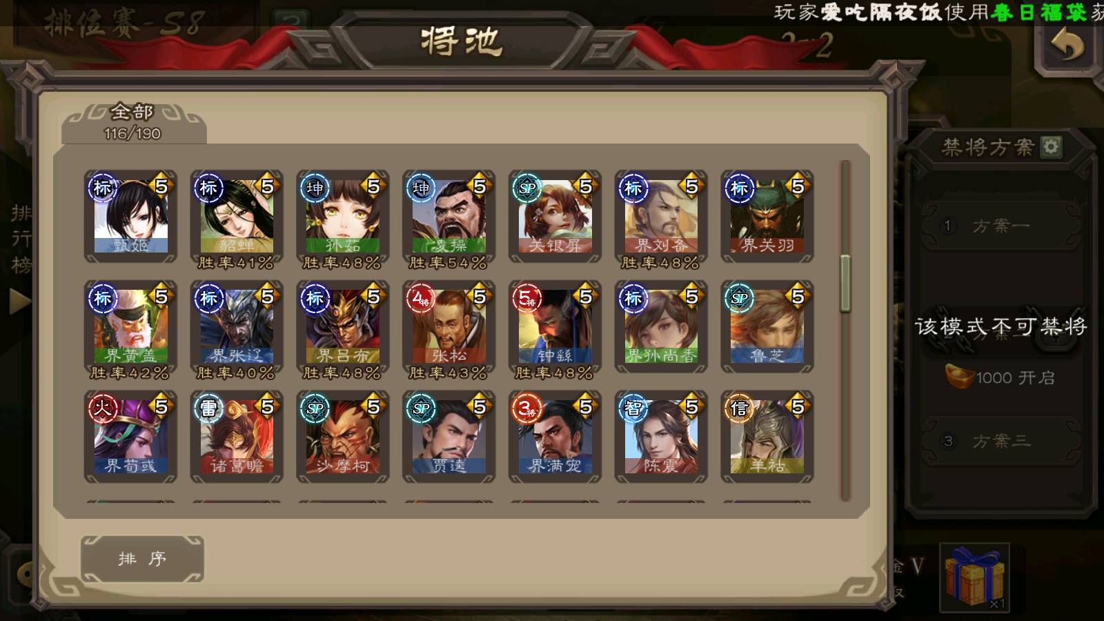 (蜀国):界黄忠,谋孙尚香,诸葛瞻,谋赵云,花鬘,沙摩柯,谋马超,关索,王平,马云騄,赵襄