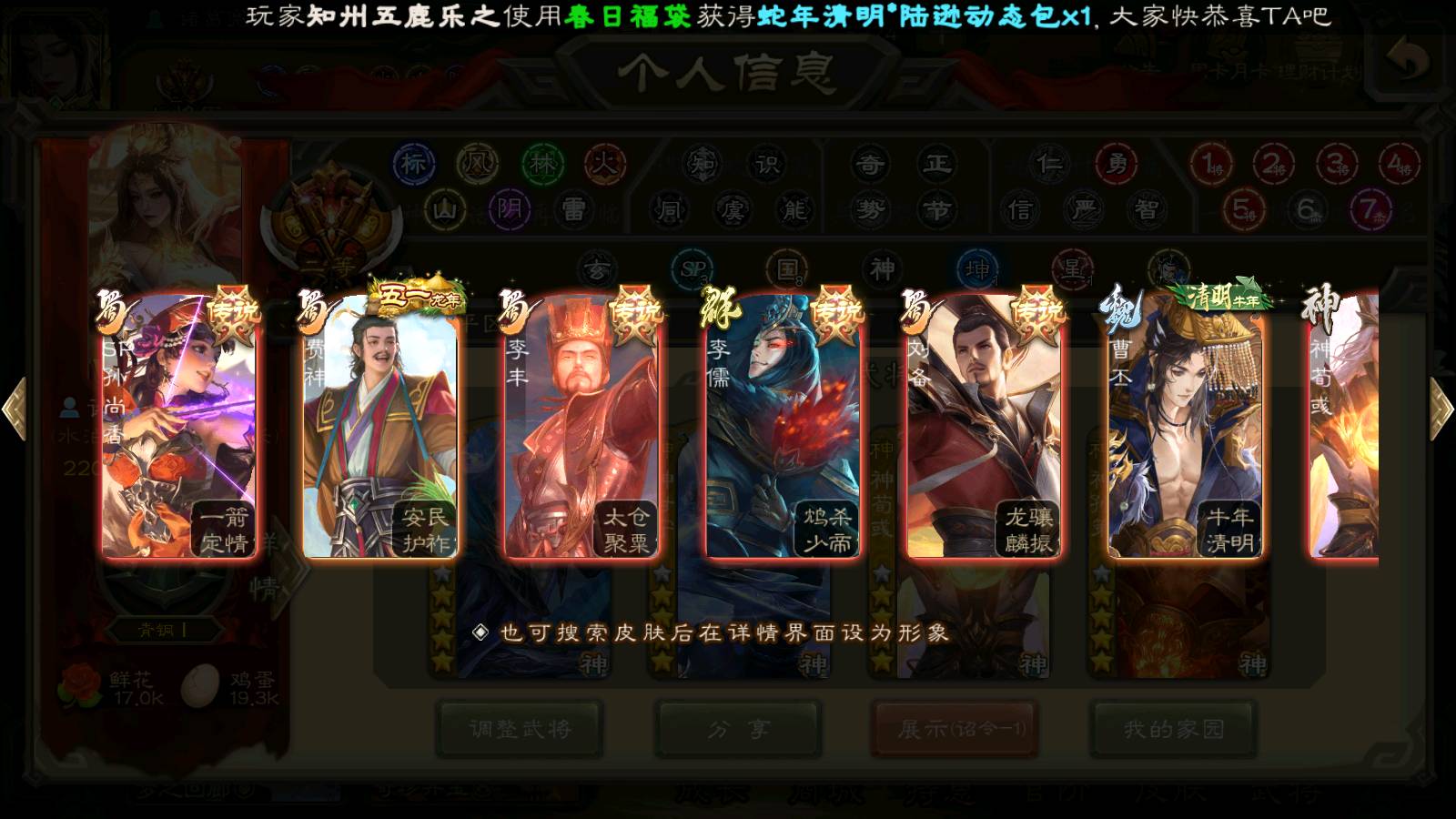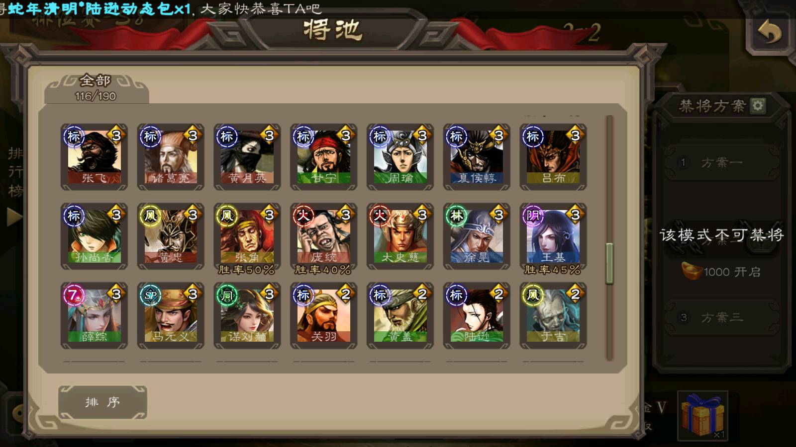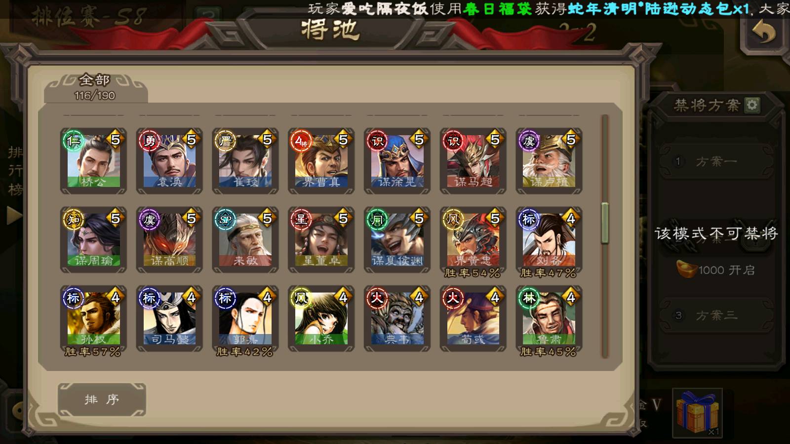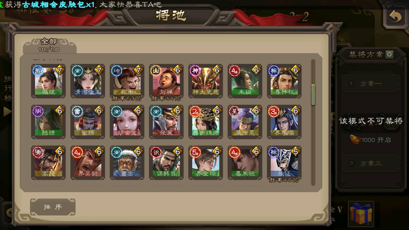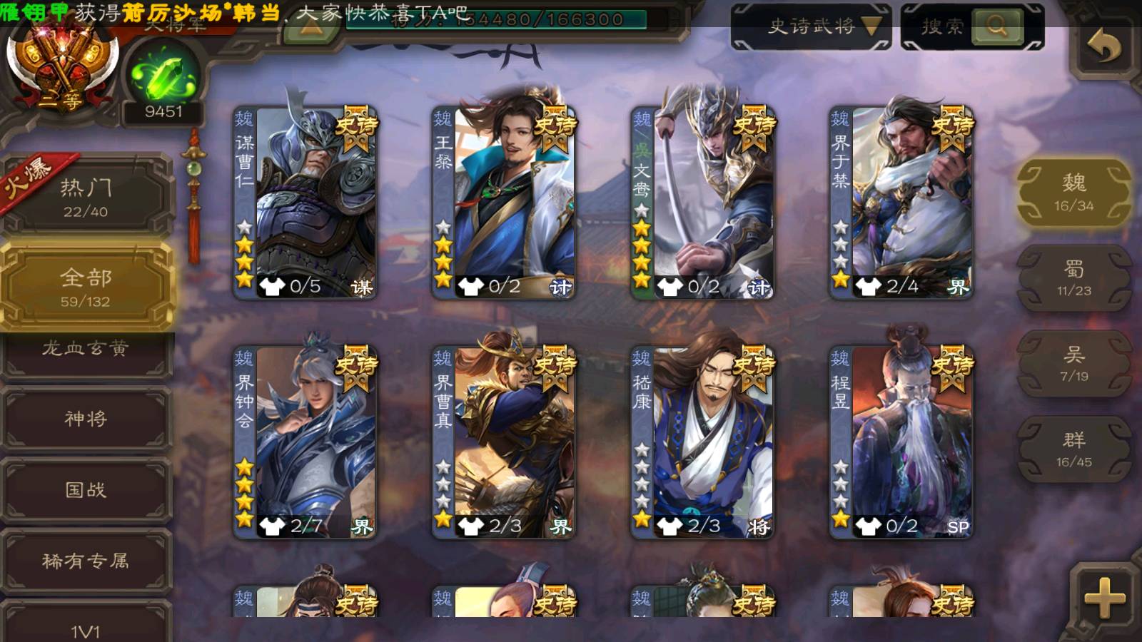 (群雄):杨彪,杜预,祢衡,界沮授,麴义,许攸,星董卓,谋貂蝉,司马昭,界李儒,苏飞,卑弥呼,士燮,左慈,沮授,兀突骨