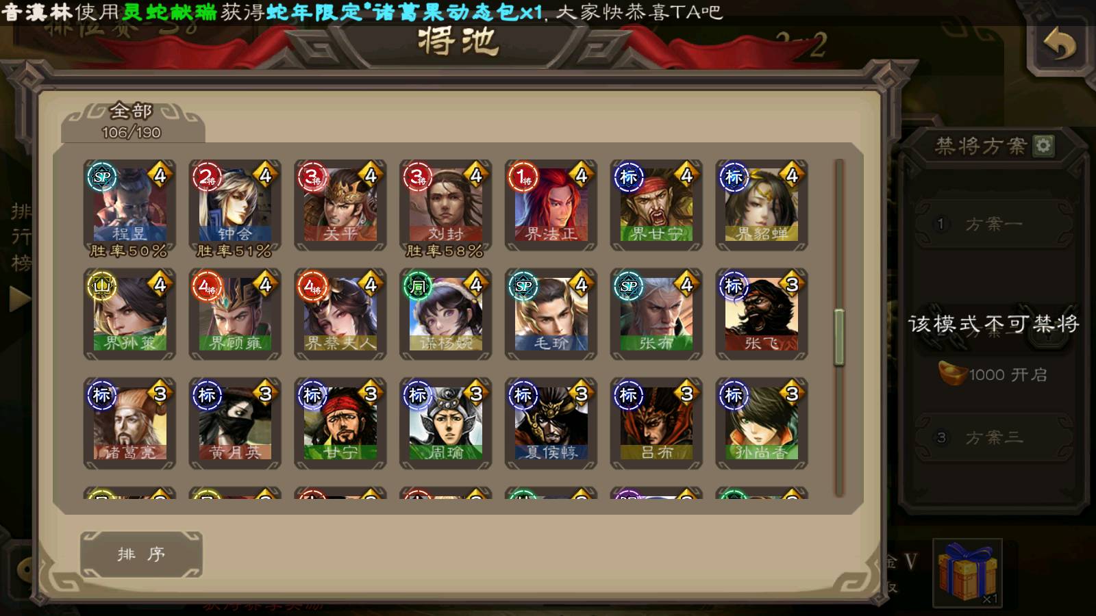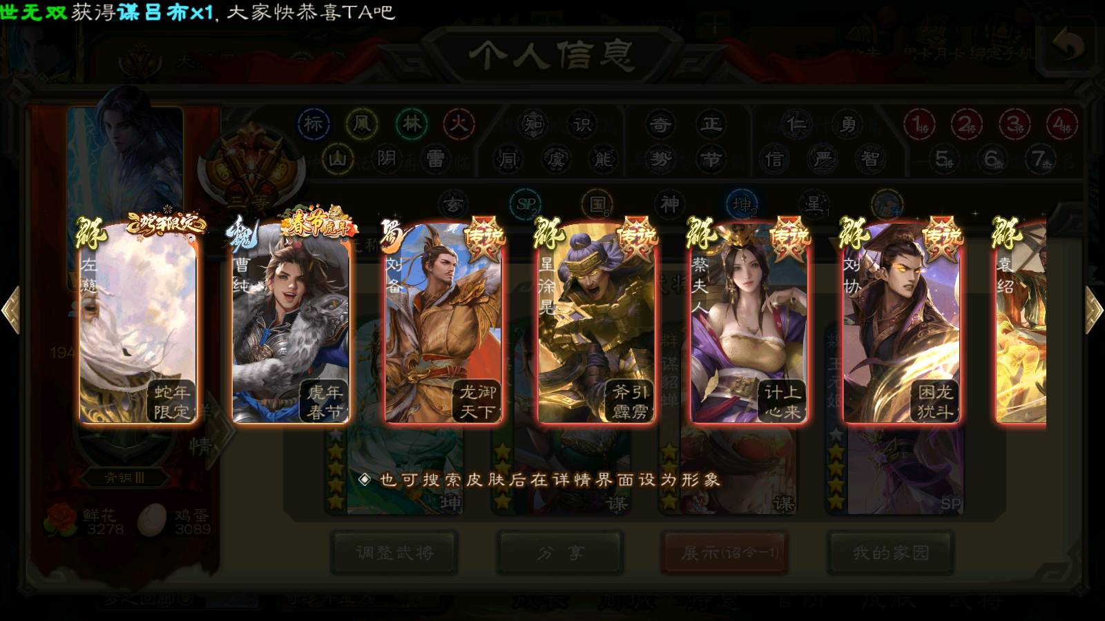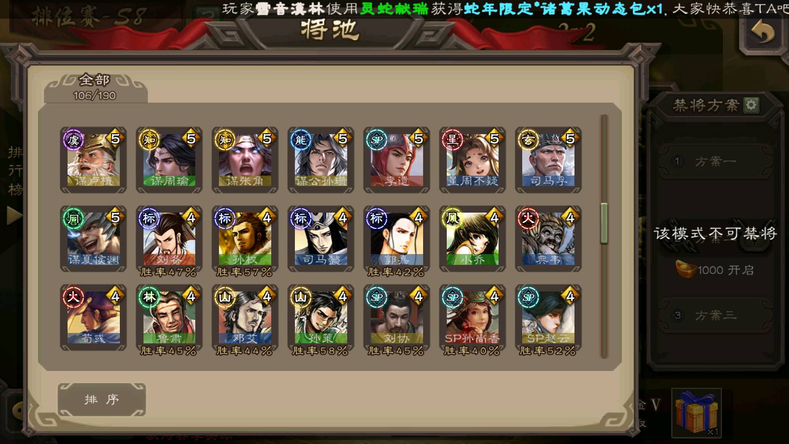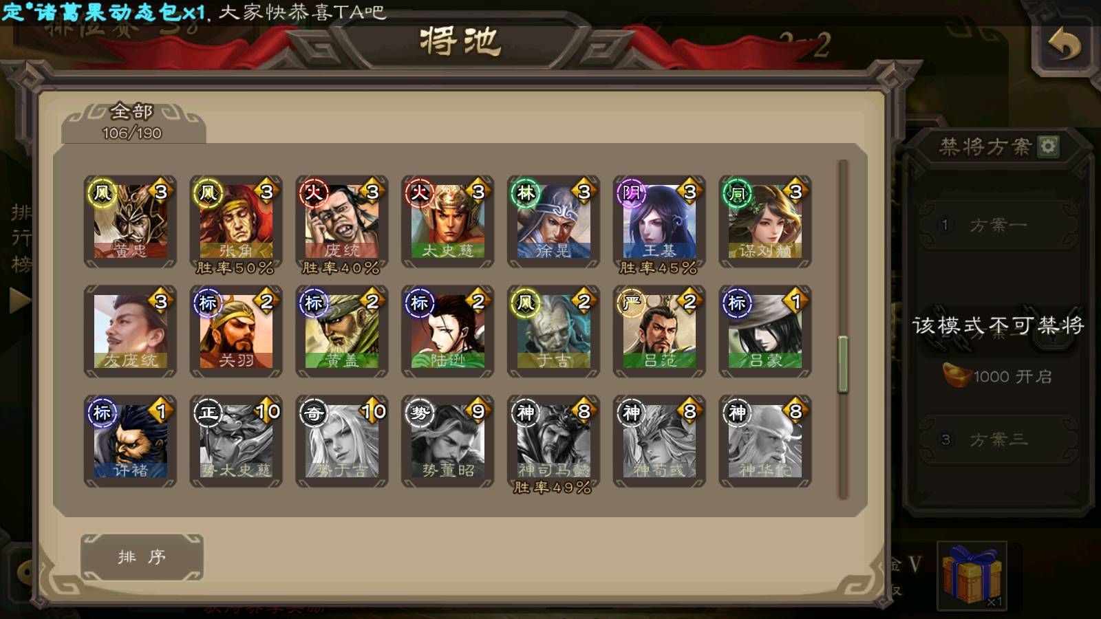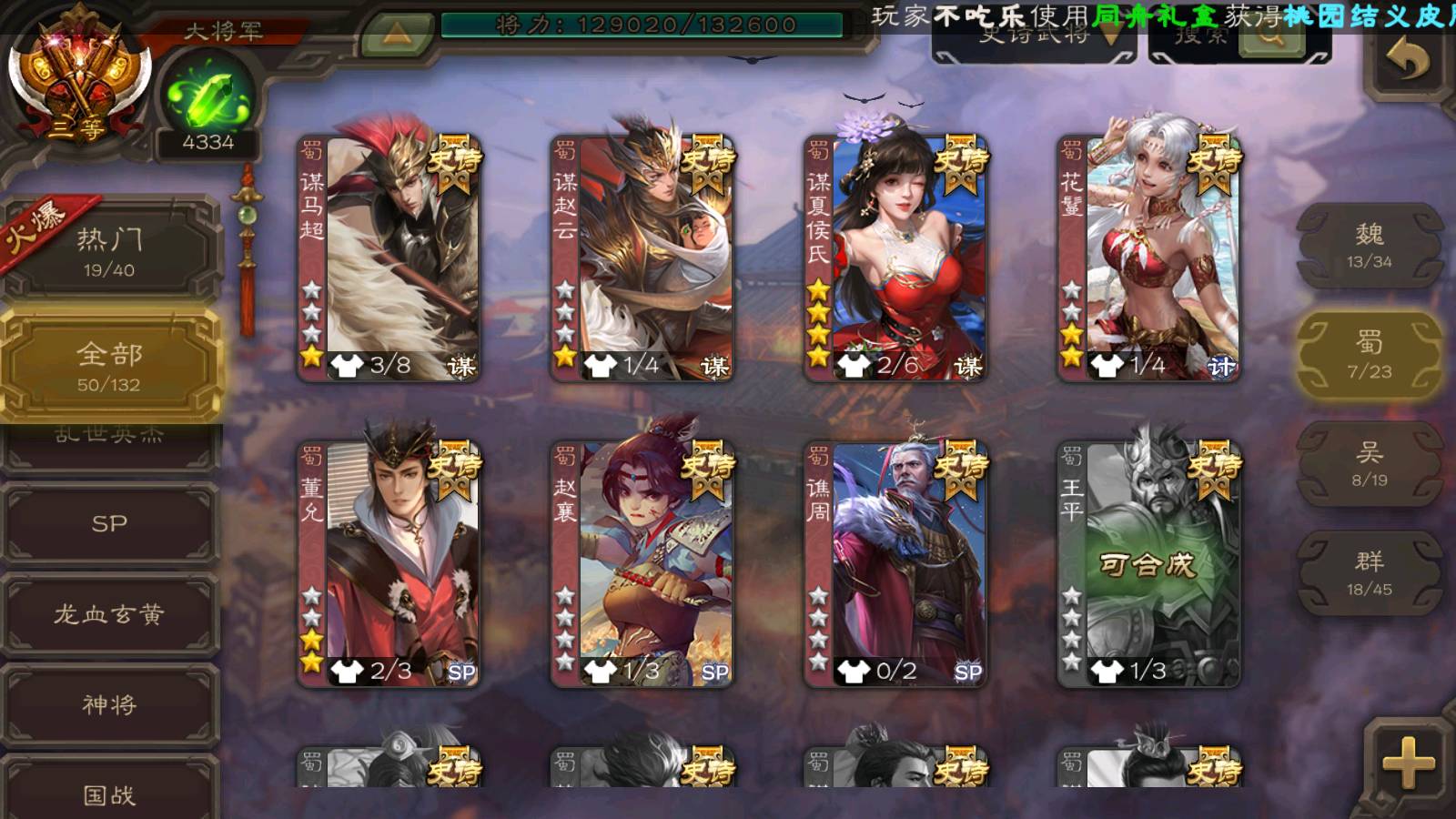 (群雄):杜预,南华老仙,十常侍,谋貂蝉,界左慈,司马昭,谋公孙瓒,麴义,许攸,界李儒,苏飞,谋张角,公孙康,郑玄,星黄忠,左慈,沮授,兀突骨