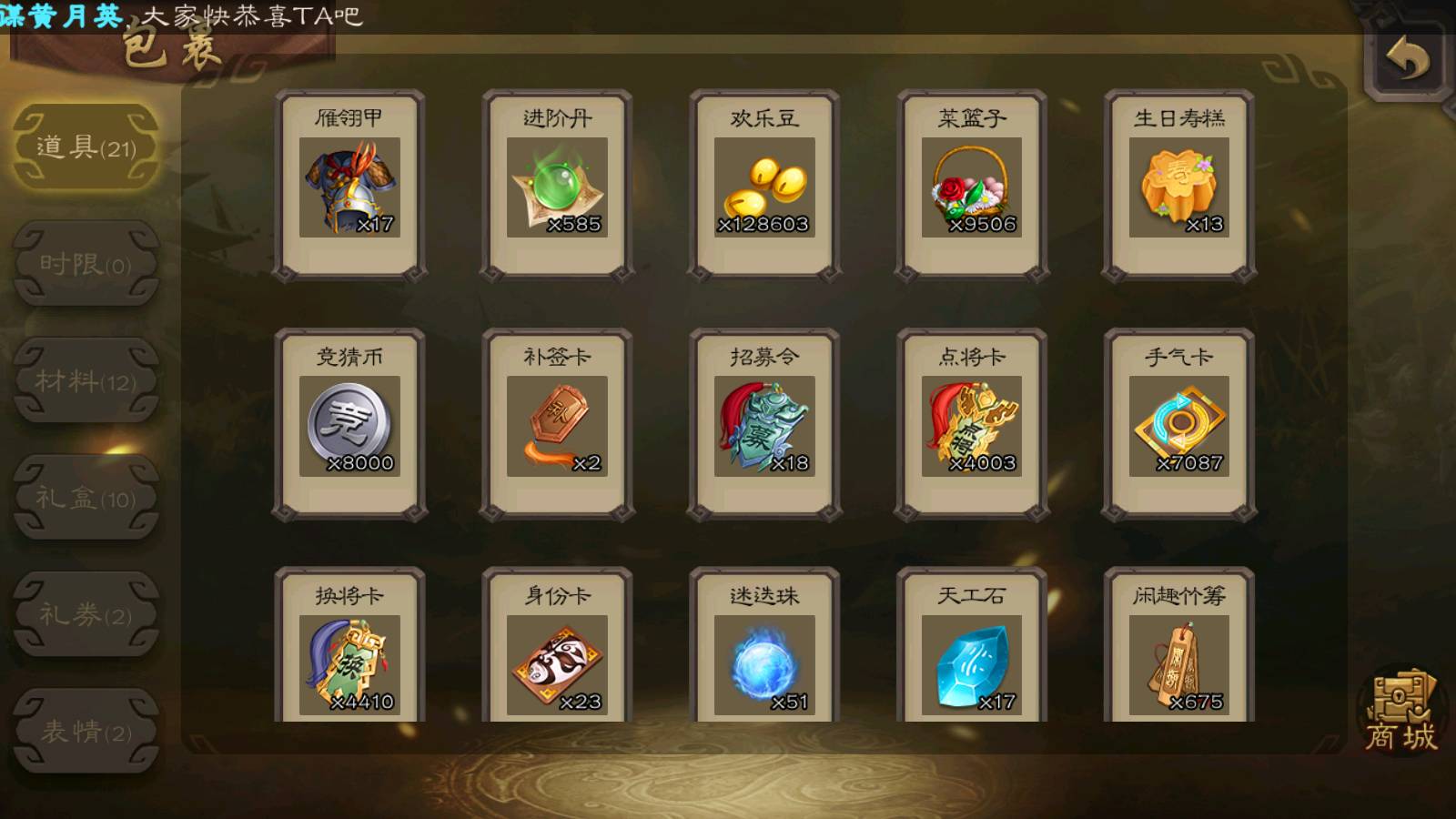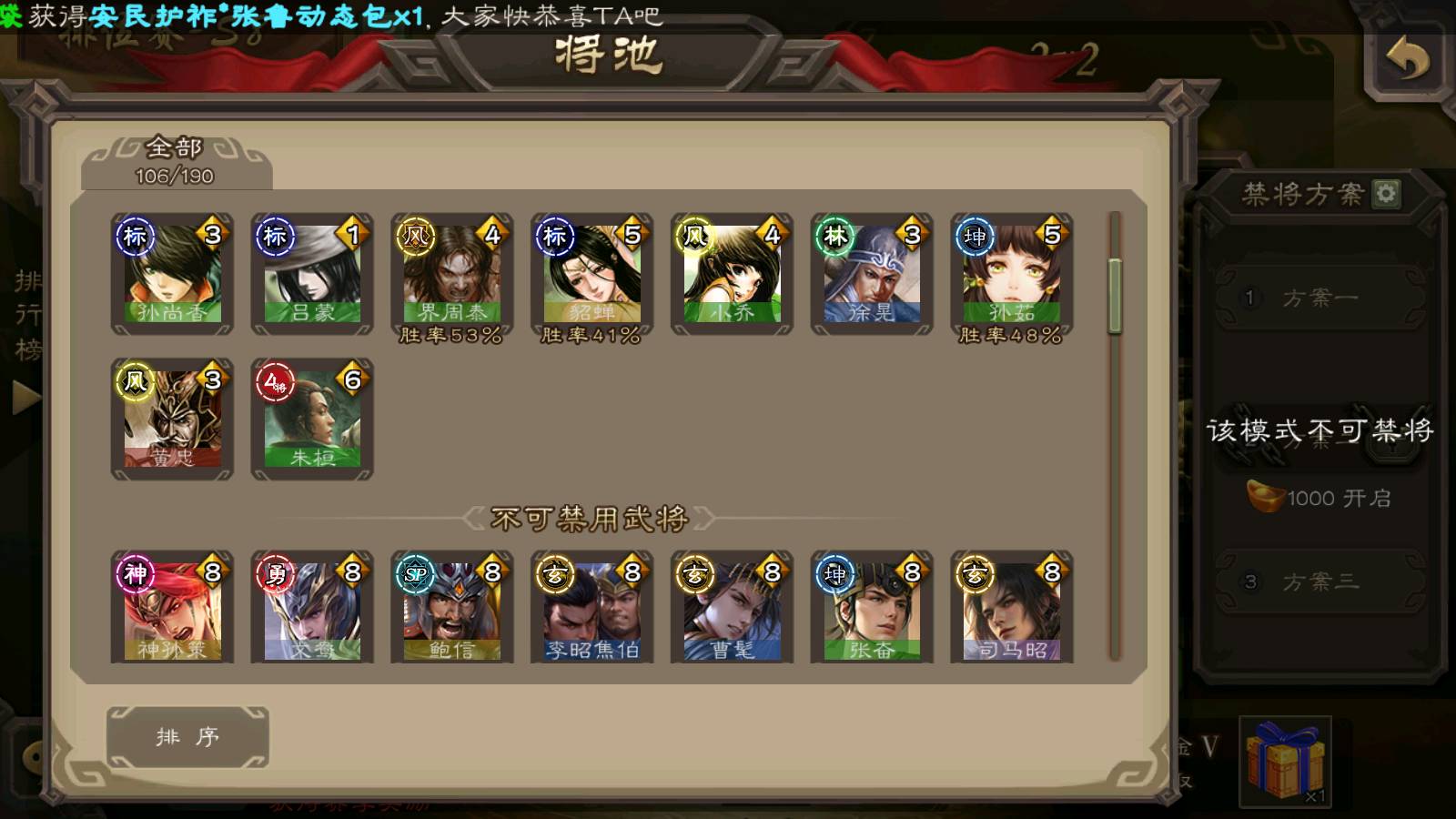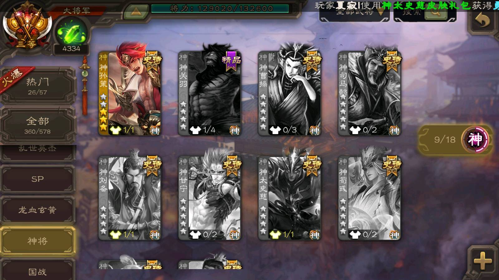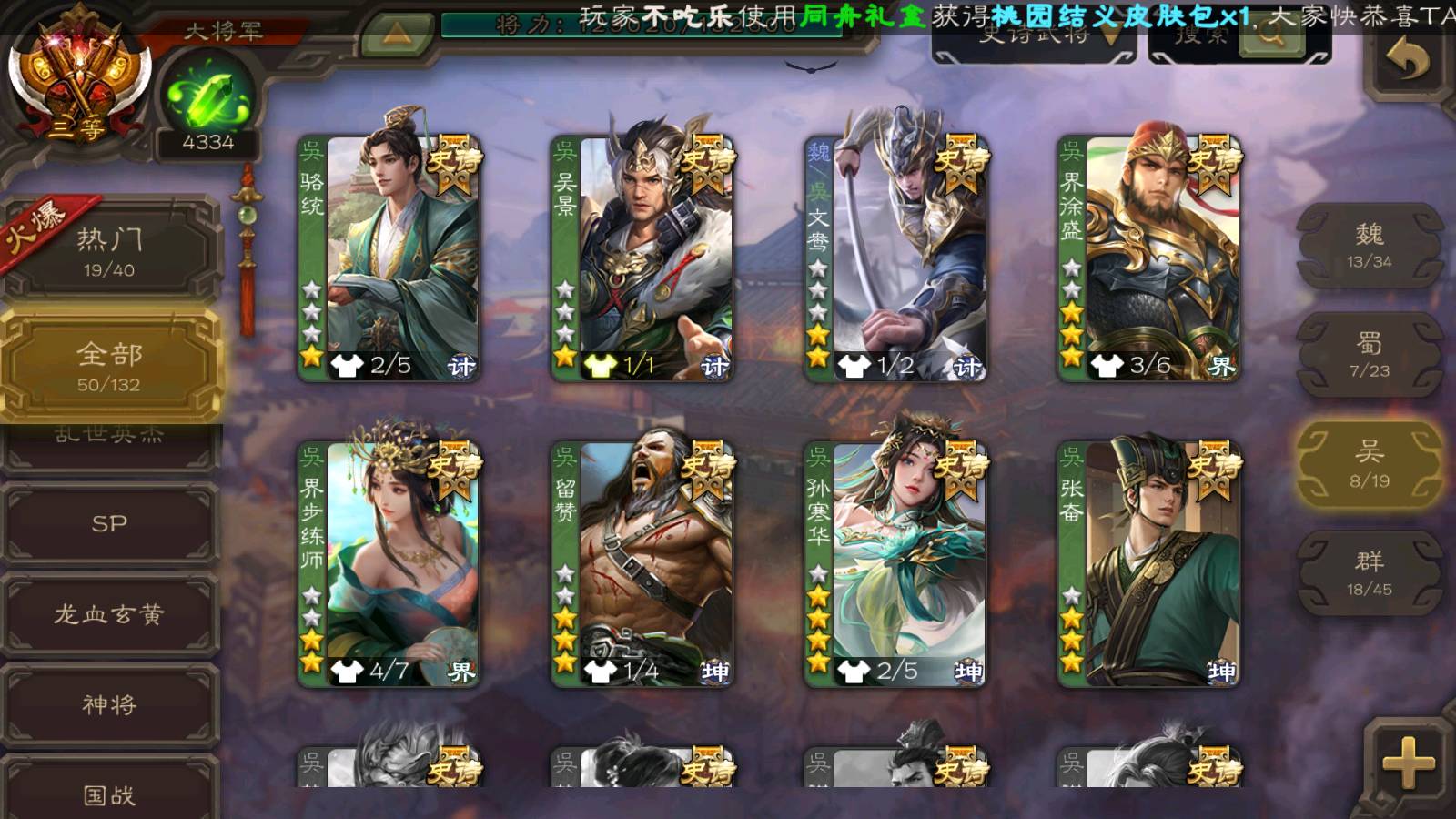 (群雄):杜预,南华老仙,十常侍,谋貂蝉,界左慈,司马昭,谋公孙瓒,麴义,许攸,界李儒,苏飞,谋张角,公孙康,郑玄,星黄忠,左慈,沮授,兀突骨