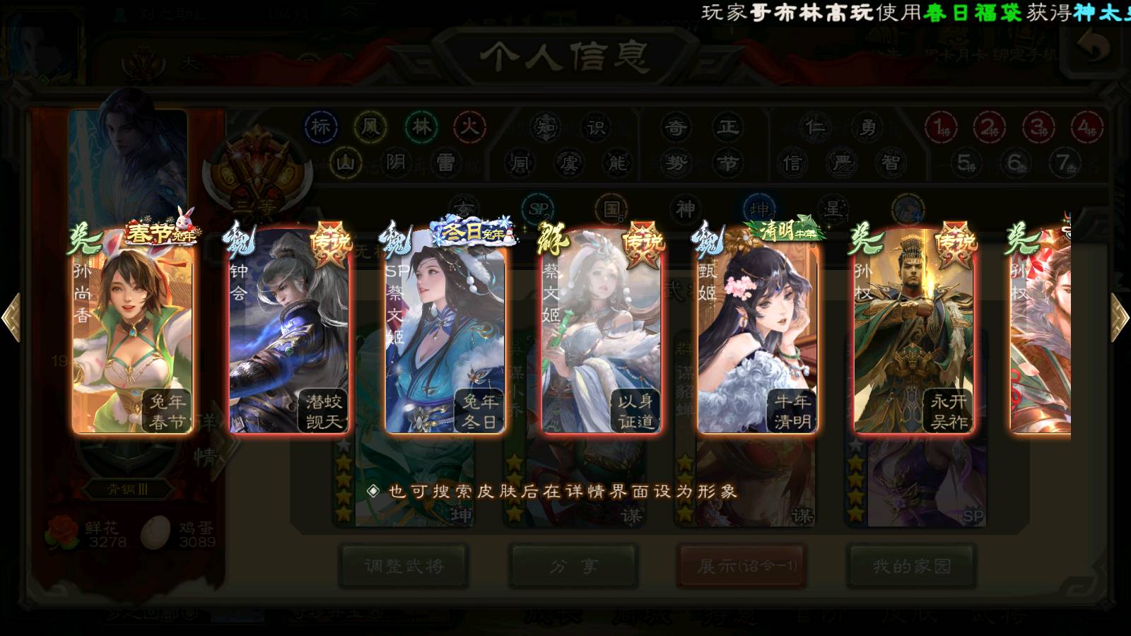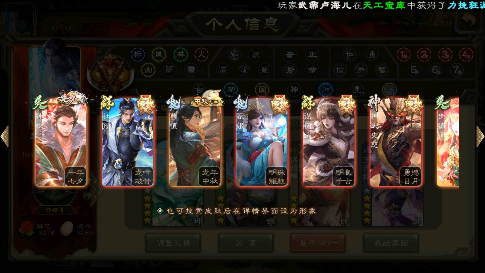 商品编号22333 全部皮肤463,动态皮肤45,全部武将360,排位武将106,国战武将90,史诗武将50,界钟会回廊,杜预动皮,文鸯动皮,谋貂蝉回廊,孙寒华动皮,神孙策动皮,王元姬动皮,宝珠19,心愿积分9.9k,元宝1w,欢乐豆12.8w,雁翎4.6w,将魂4.3k
