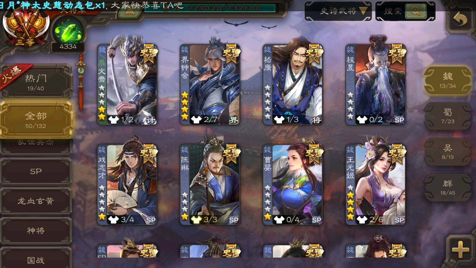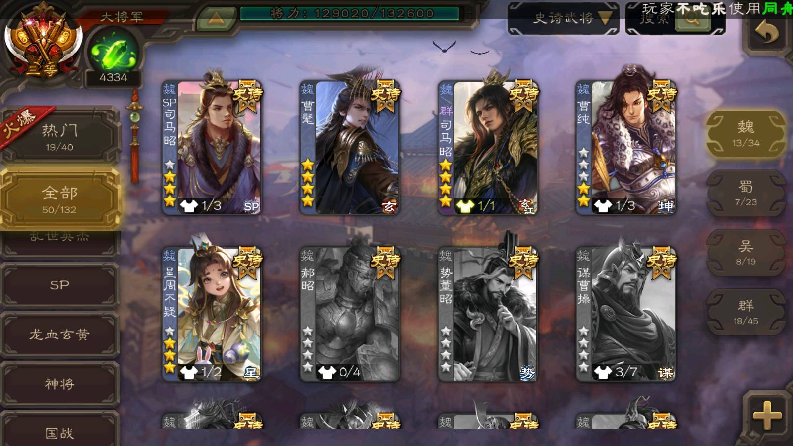 (魏国):曹髦,文鸯,界钟会,曹婴,王元姬,SP司马昭,戏志才,星周不疑,程昱,曹纯,陈琳,嵇康