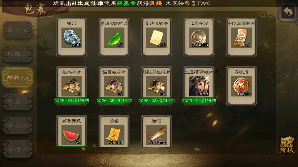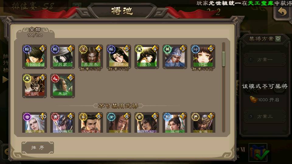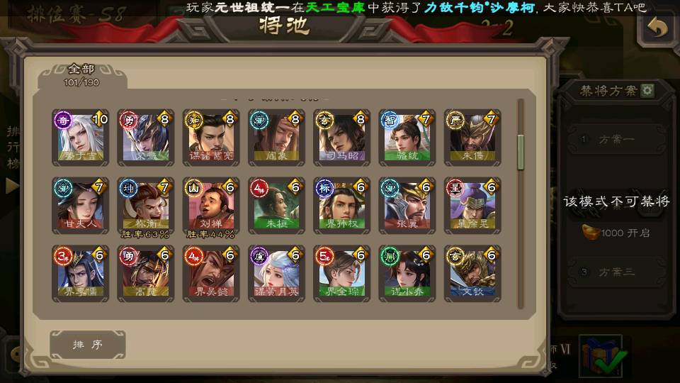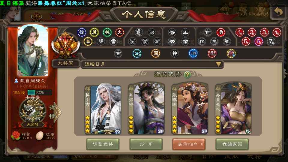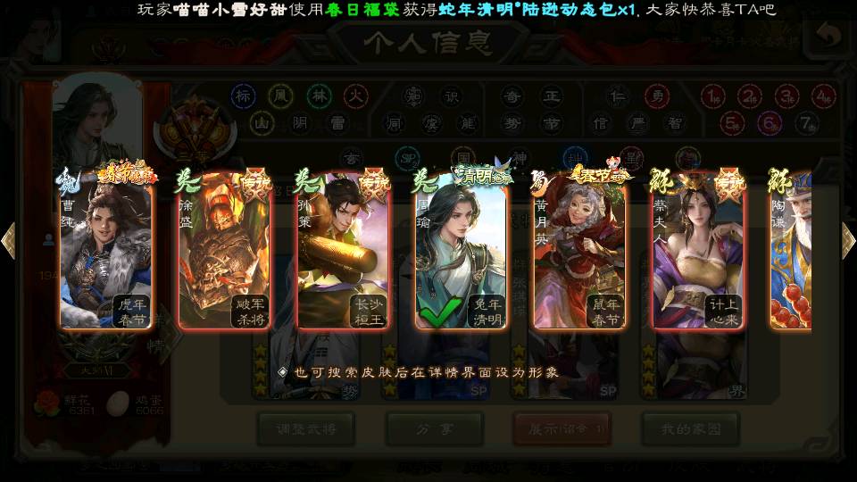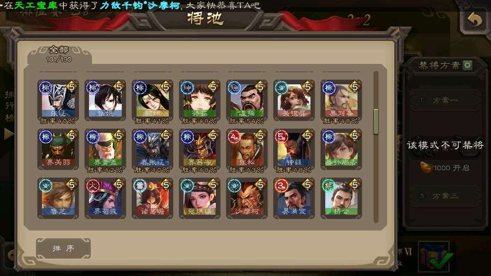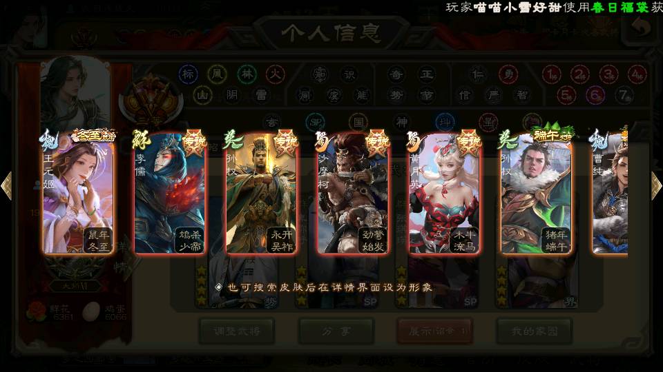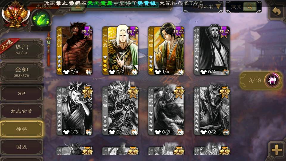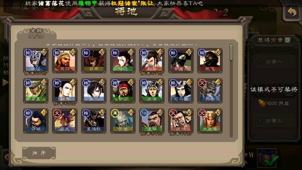 (群雄):杨彪,杜预,祢衡,界左慈,南华老仙,麴义,谋貂蝉,司马昭,张让,界李儒,势于吉,张琪瑛,卑弥呼,王允,郑玄,星黄忠,左慈,沮授,兀突骨