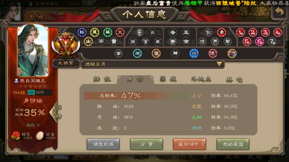 商品编号22348 全部皮肤421,动态皮肤37,全部武将353,排位武将101,国战武将87,史诗武将44,杨彪动皮,文鸯动皮,界左慈动皮,杜预动皮,欢乐豆3.5w,心愿积分1w,雁翎6.1w