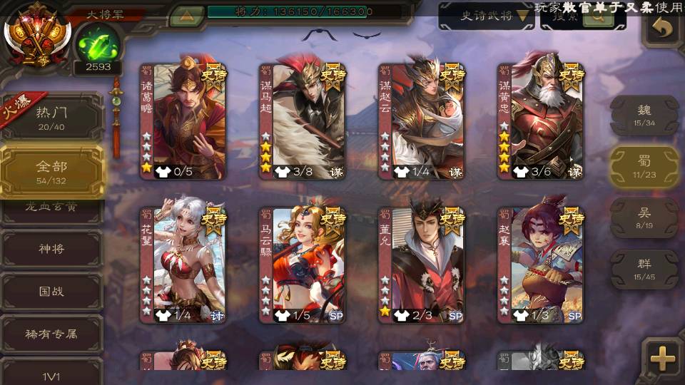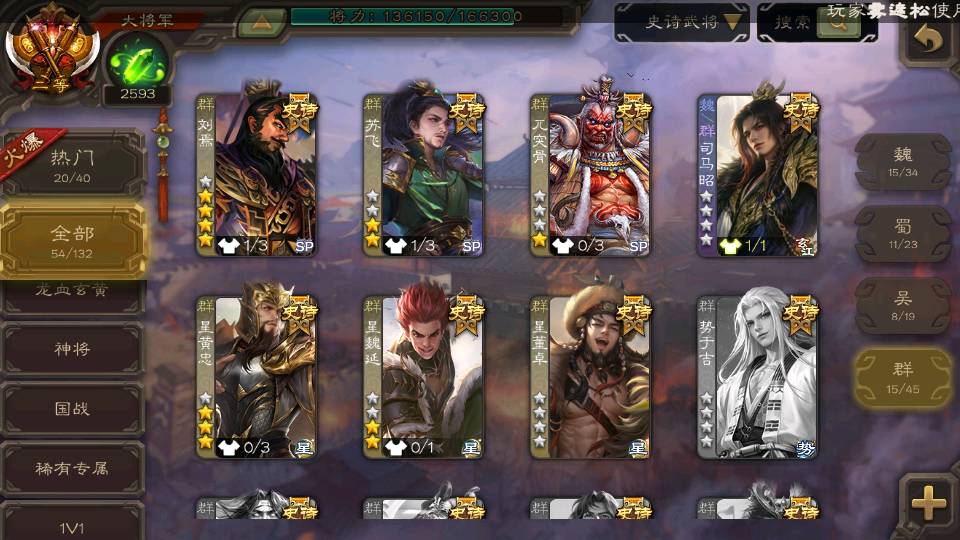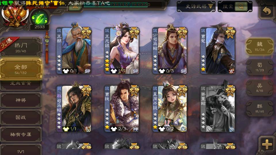 (魏国):王元姬,文鸯,戏志才,界钟会,曹髦,SP司马昭,王朗,郝昭,王粲,界曹真,星周不疑,程昱,曹纯,嵇康