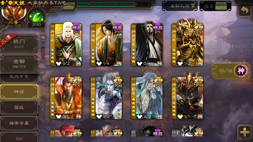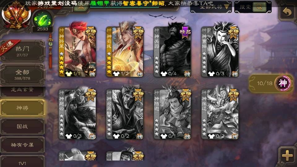 (神将):神荀彧,神郭嘉,神甘宁,神孙策,神太史慈,神吕布,神刘备