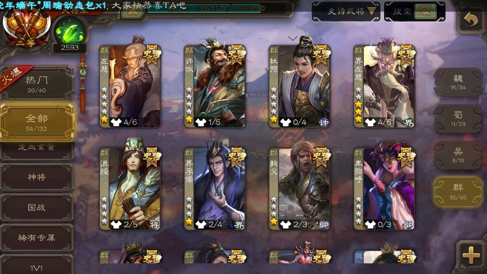 (群雄):刘焉,杜预,界左慈,麴义,许攸,星董卓,司马昭,界李儒,苏飞,卑弥呼,星魏延,星黄忠,左慈,沮授,兀突骨