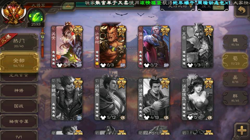 (蜀国):谋黄忠,诸葛瞻,谋赵云,花鬘,沙摩柯,谯周,谋马超,关索,马云騄,董允,赵襄