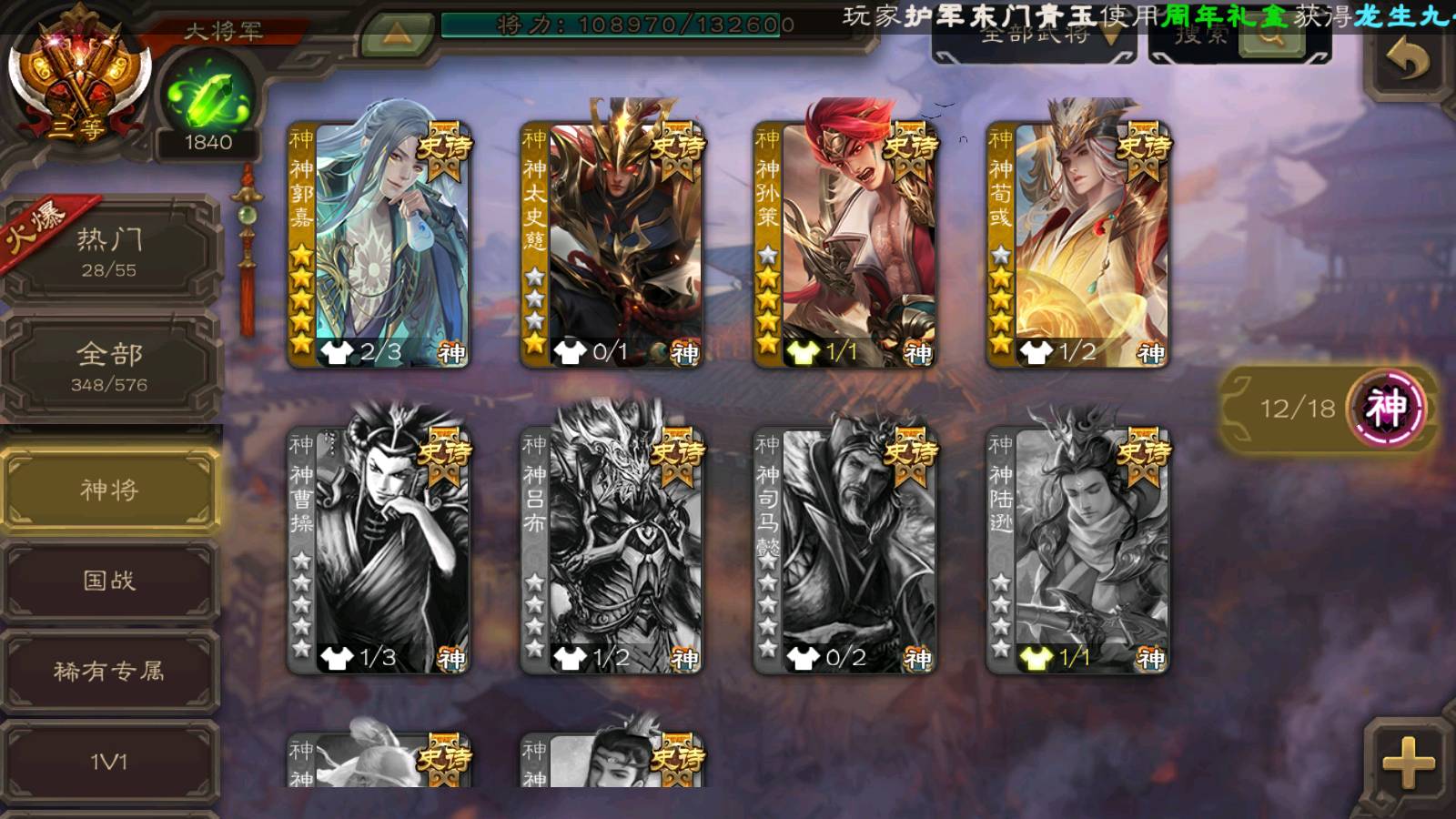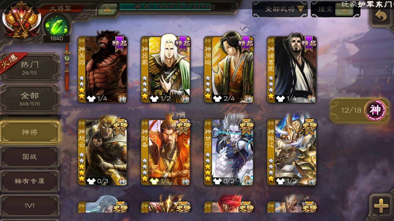 (神将):神荀彧,神郭嘉,神甘宁,神孙策,神太史慈,神赵云,神刘备,神张辽