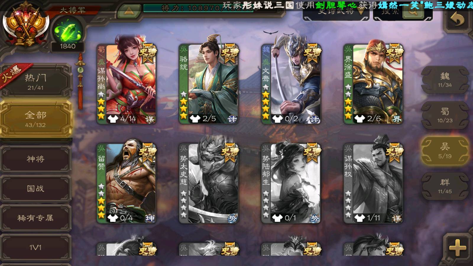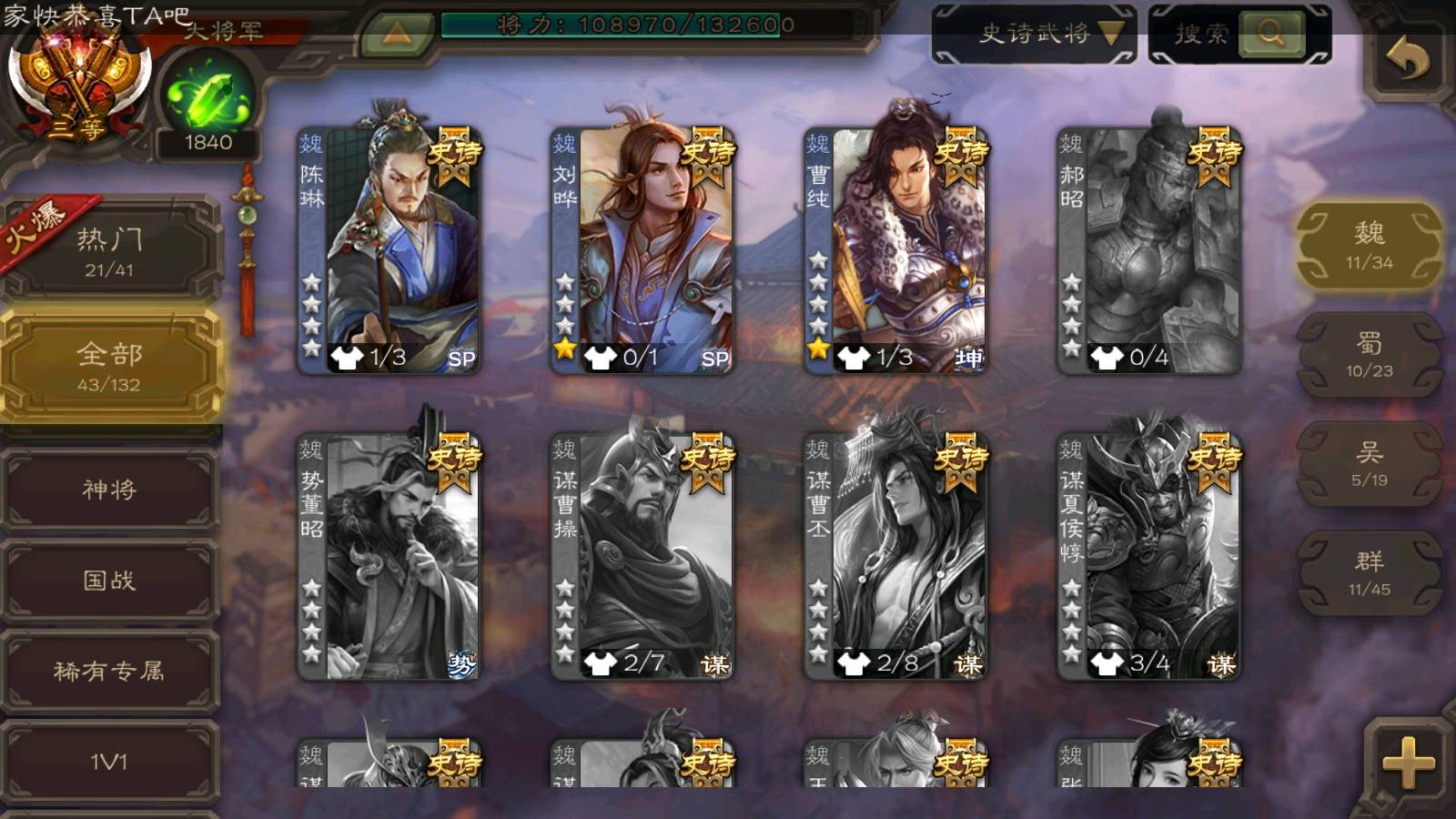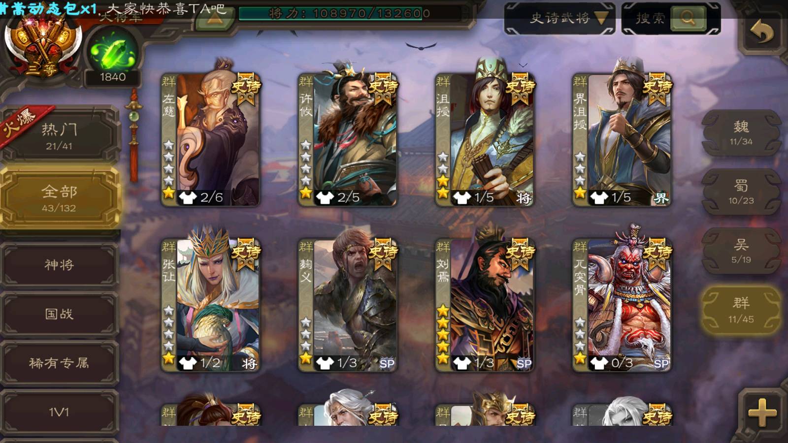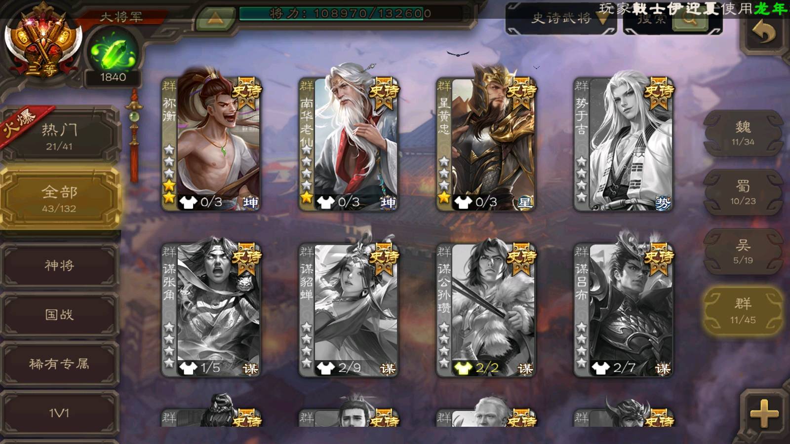 (群雄):刘焉,界沮授,南华老仙,麴义,许攸,祢衡,张让,星黄忠,左慈,沮授,兀突骨