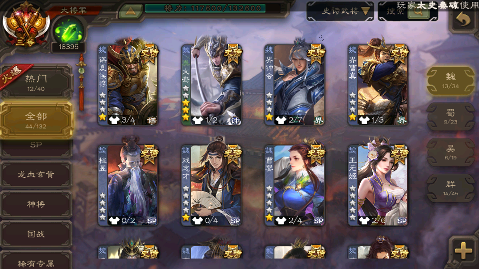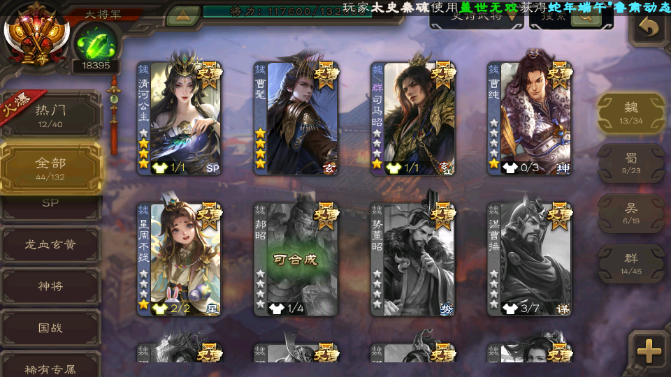 (魏国):曹婴,王元姬,文鸯,戏志才,界钟会,曹髦,清河公主,谋夏侯惇,界曹真,星周不疑,程昱,曹纯