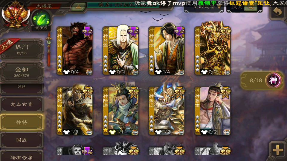 (神将):神鲁肃,神陆逊,神赵云,神吕布,神张辽