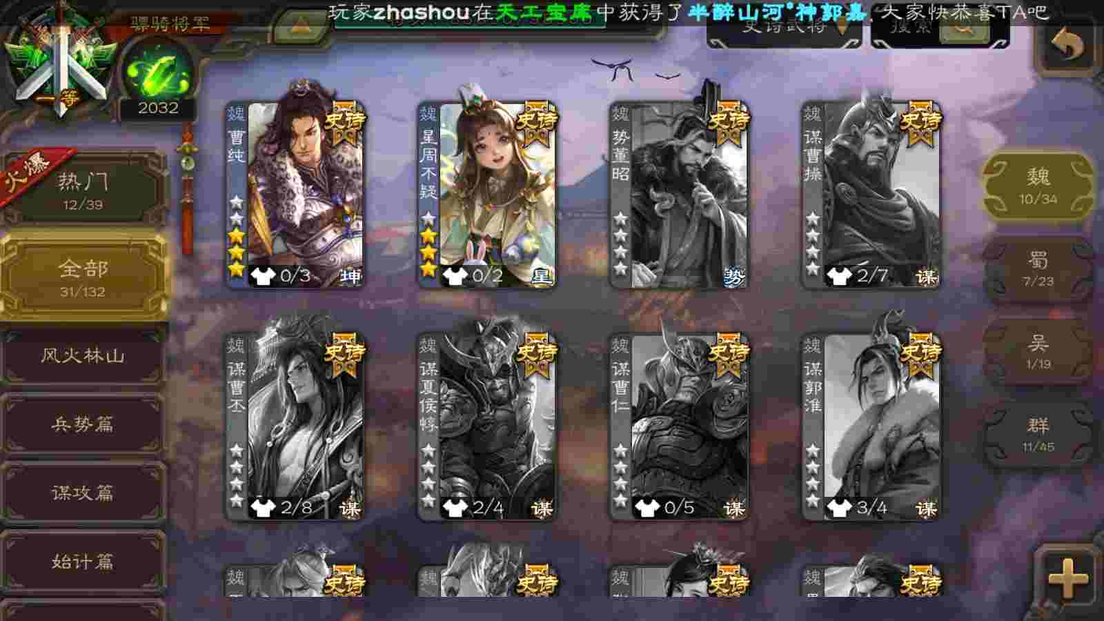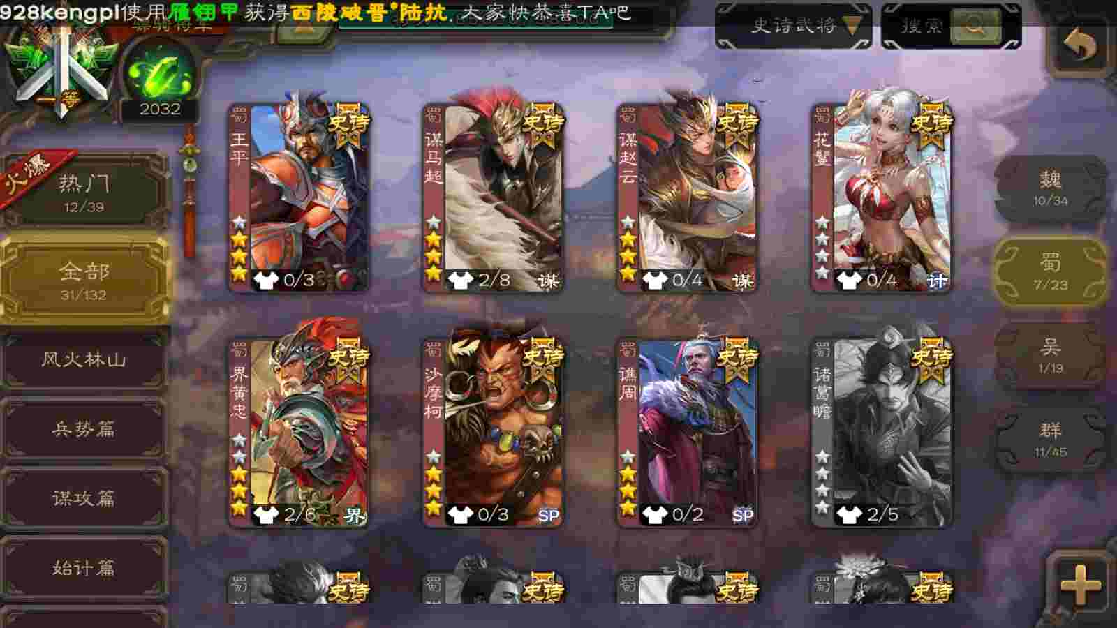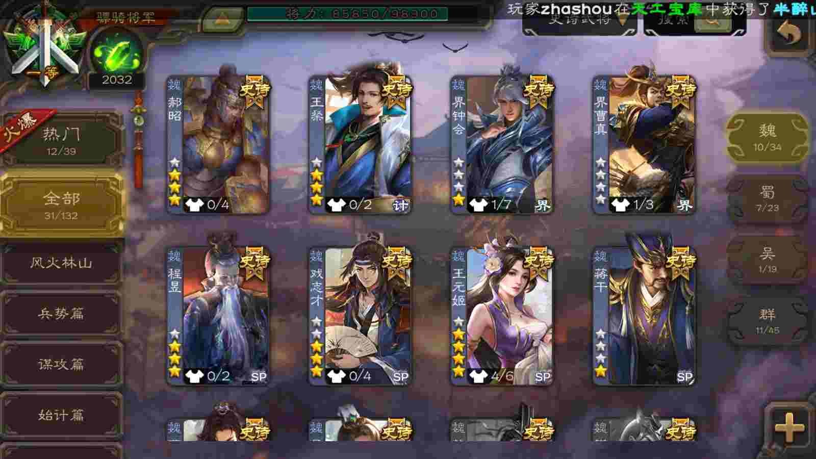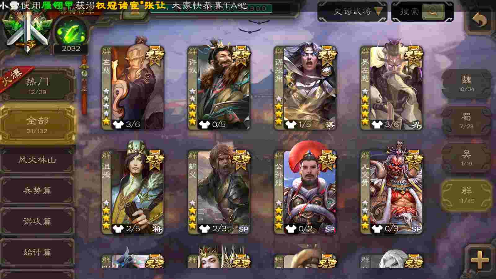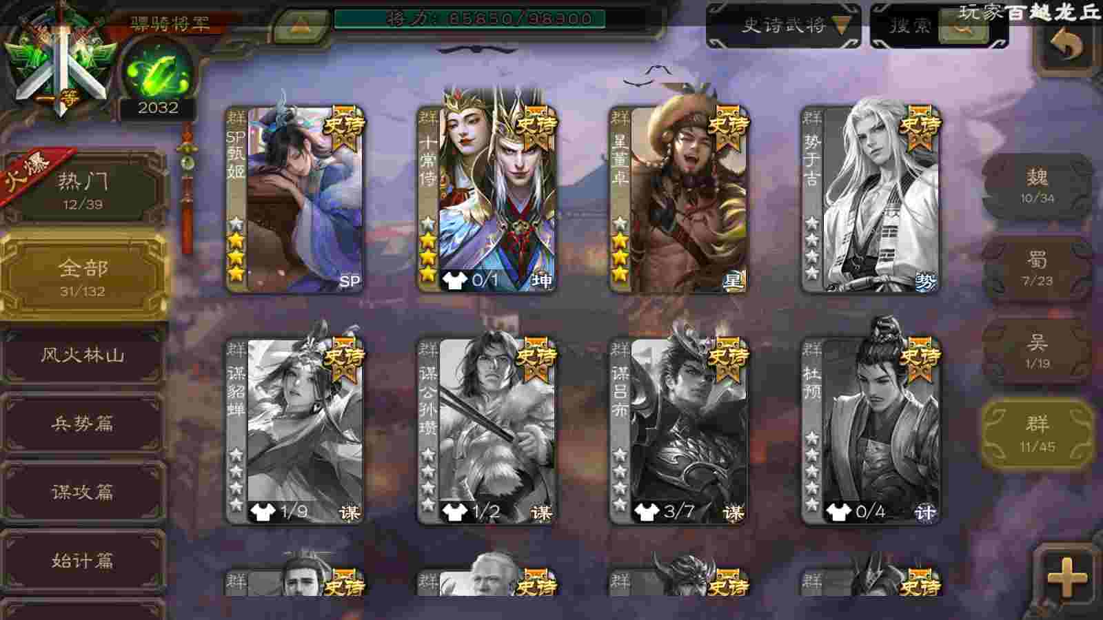 (群雄):十常侍,界左慈,麴义,许攸,SP甄姬,谋张角,公孙康,星董卓,左慈,沮授,兀突骨