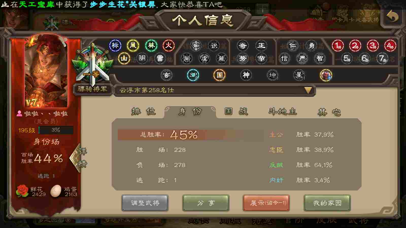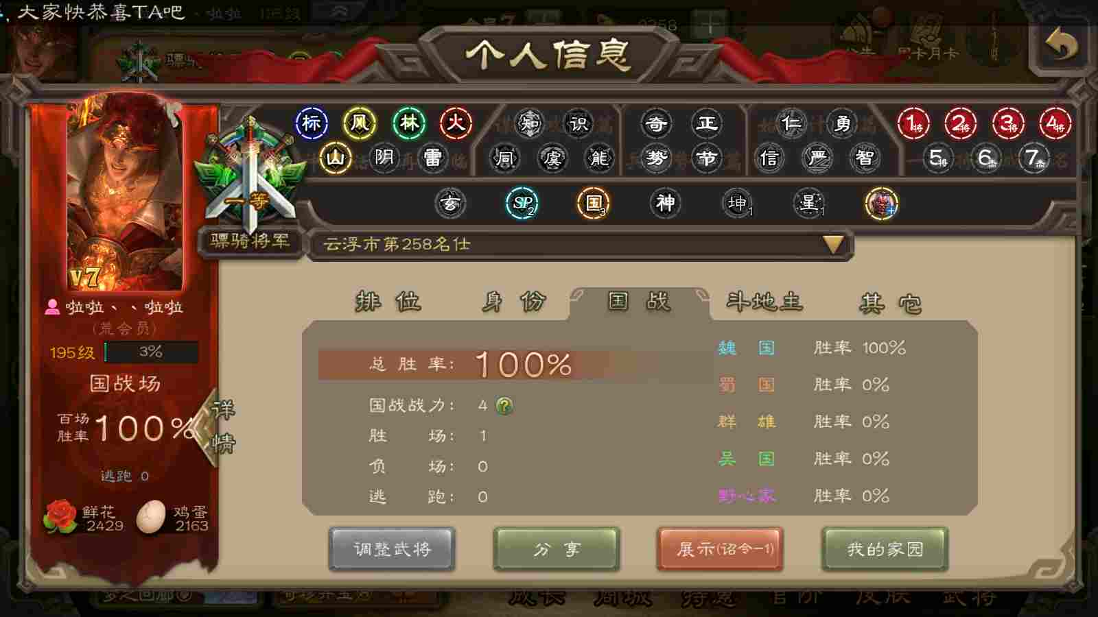 官阶:1等骠骑