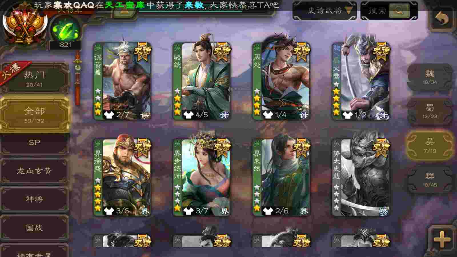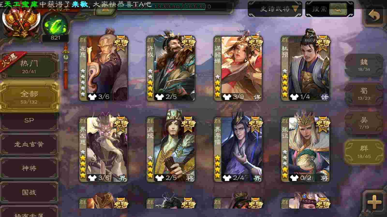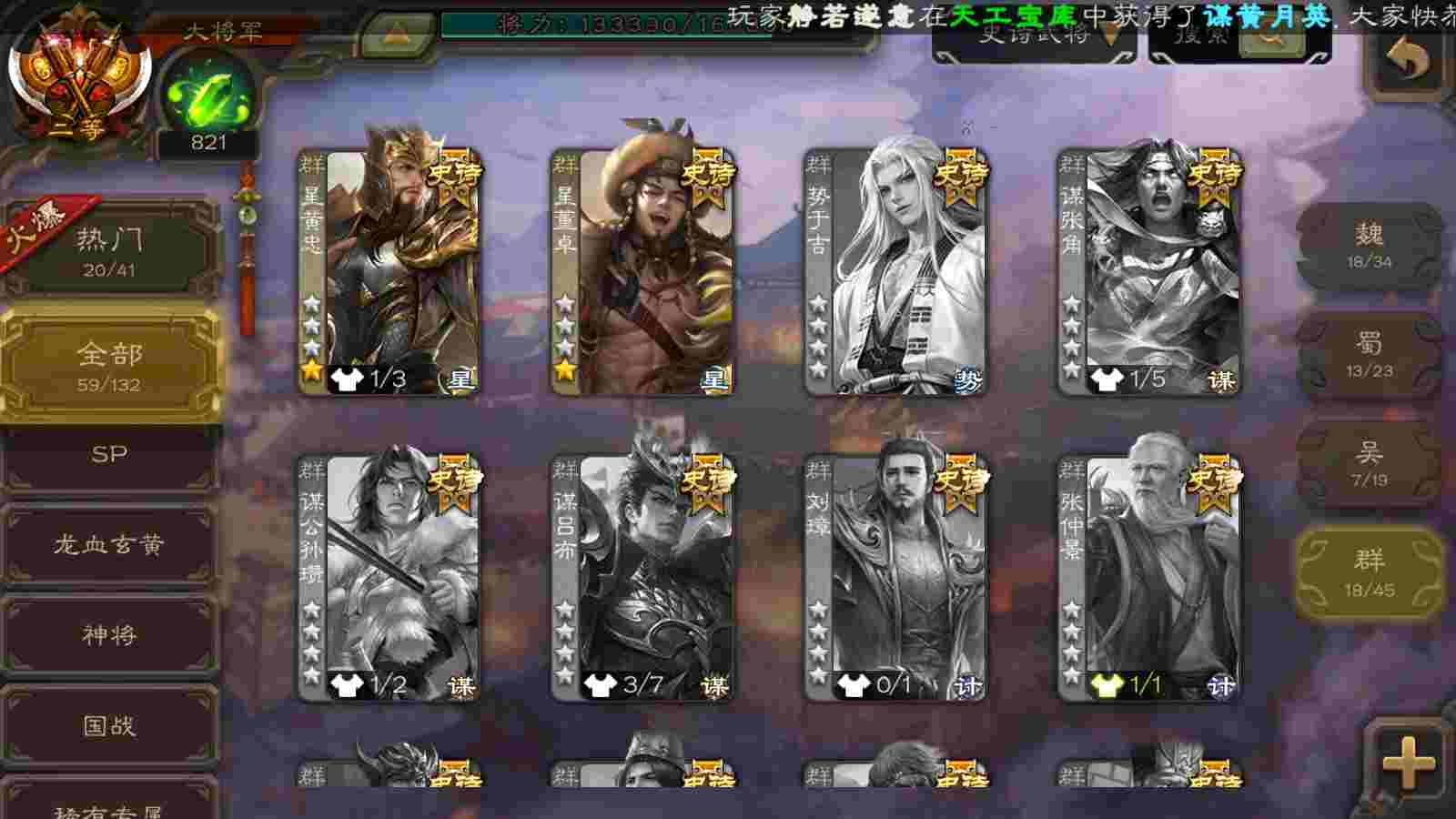 (群雄):刘焉,杨彪,杜预,界左慈,许攸,星董卓,谋貂蝉,司马昭,张让,界李儒,张琪瑛,士燮,公孙康,审配,星黄忠,左慈,沮授,兀突骨