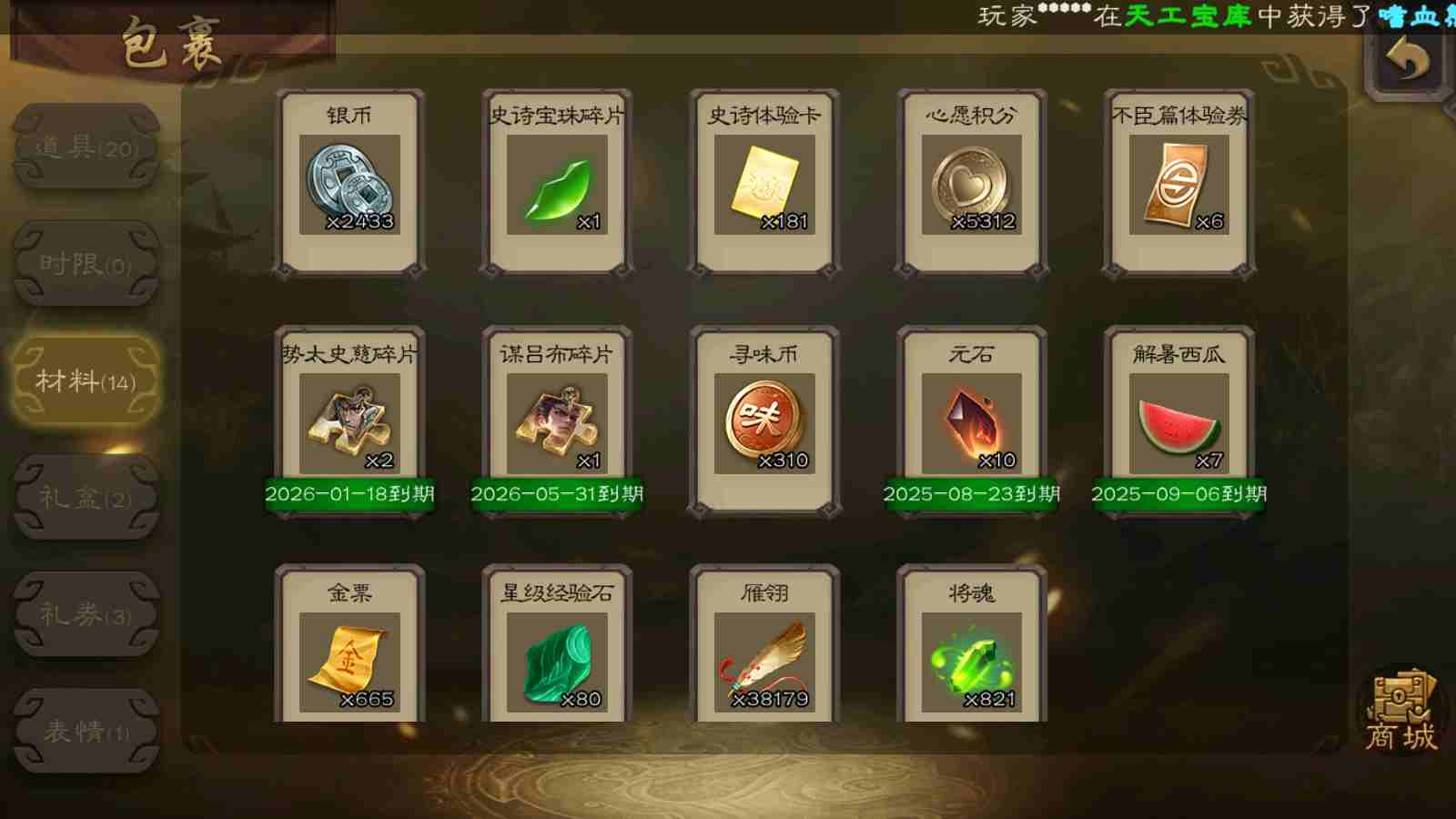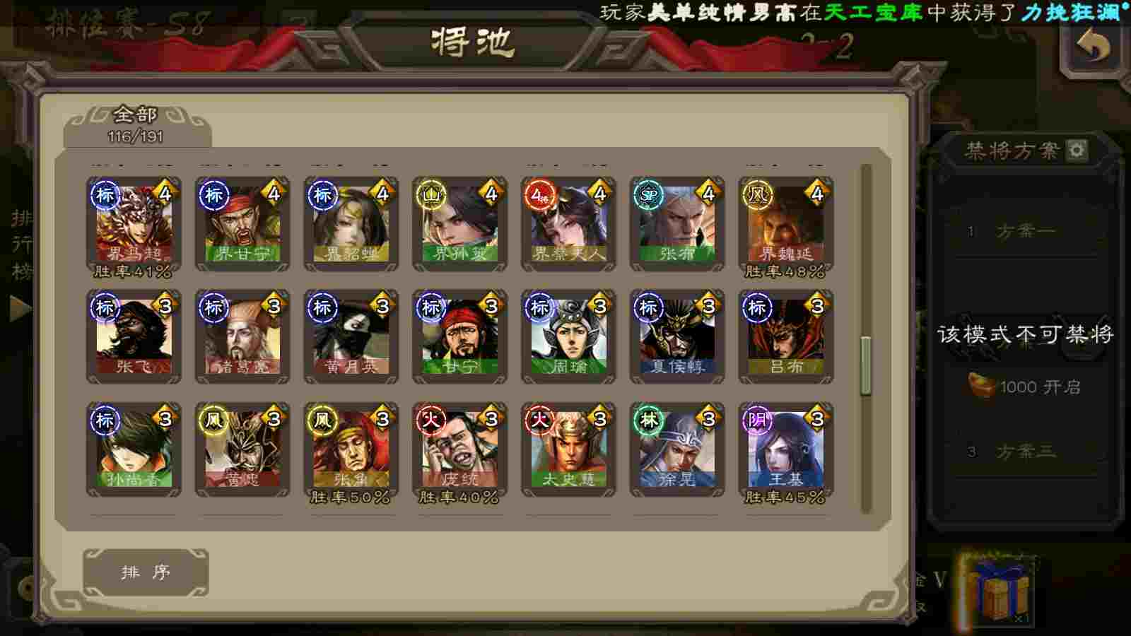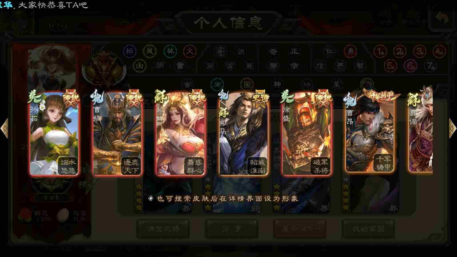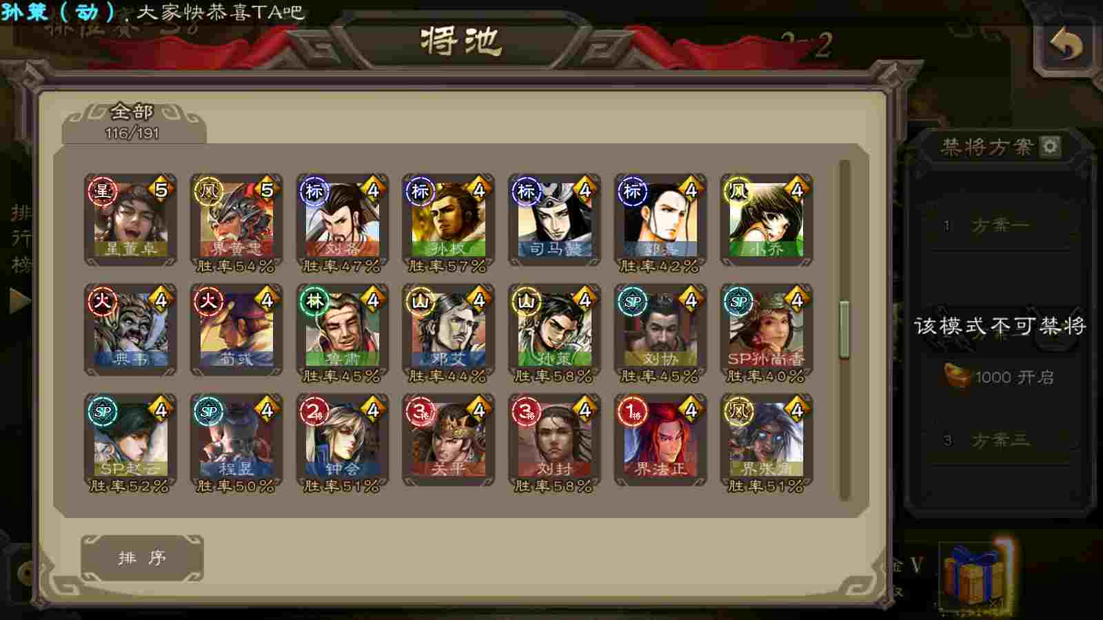 (群雄):刘焉,杨彪,杜预,界左慈,许攸,星董卓,谋貂蝉,司马昭,张让,界李儒,张琪瑛,士燮,公孙康,审配,星黄忠,左慈,沮授,兀突骨