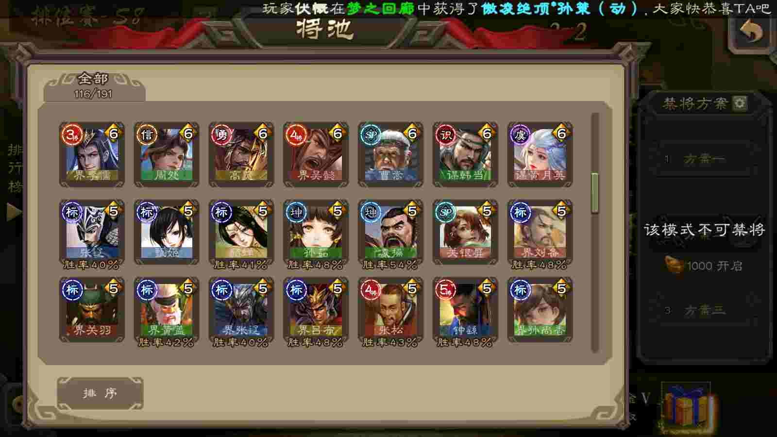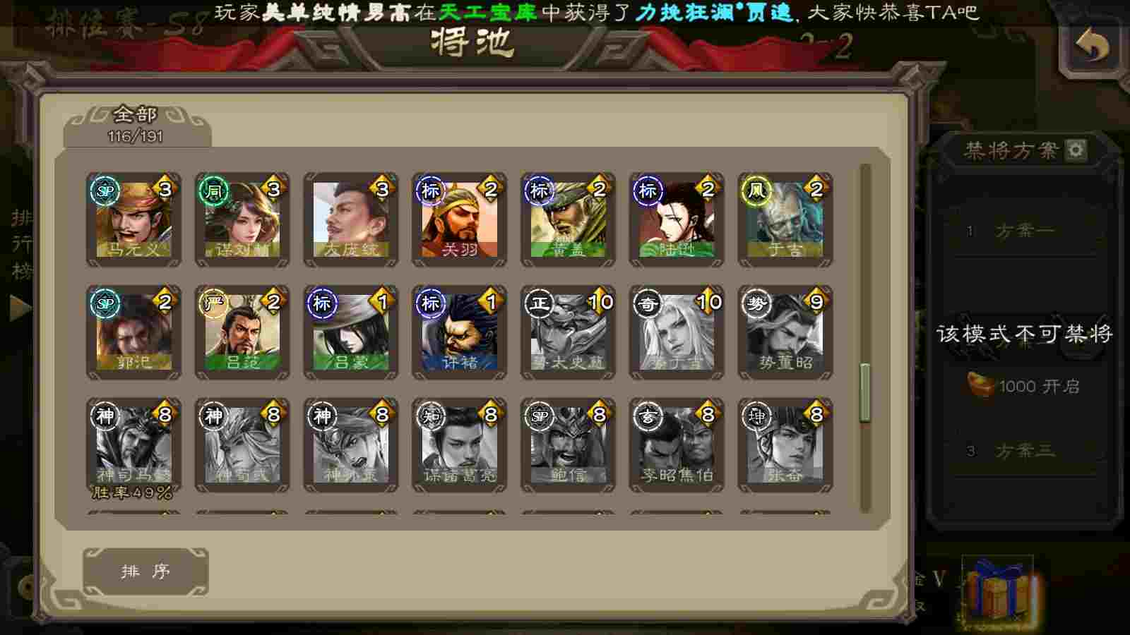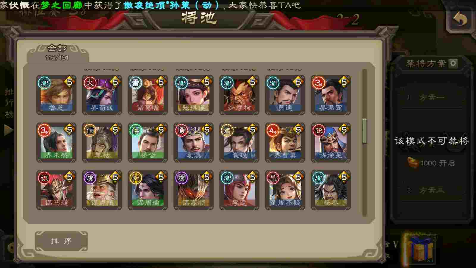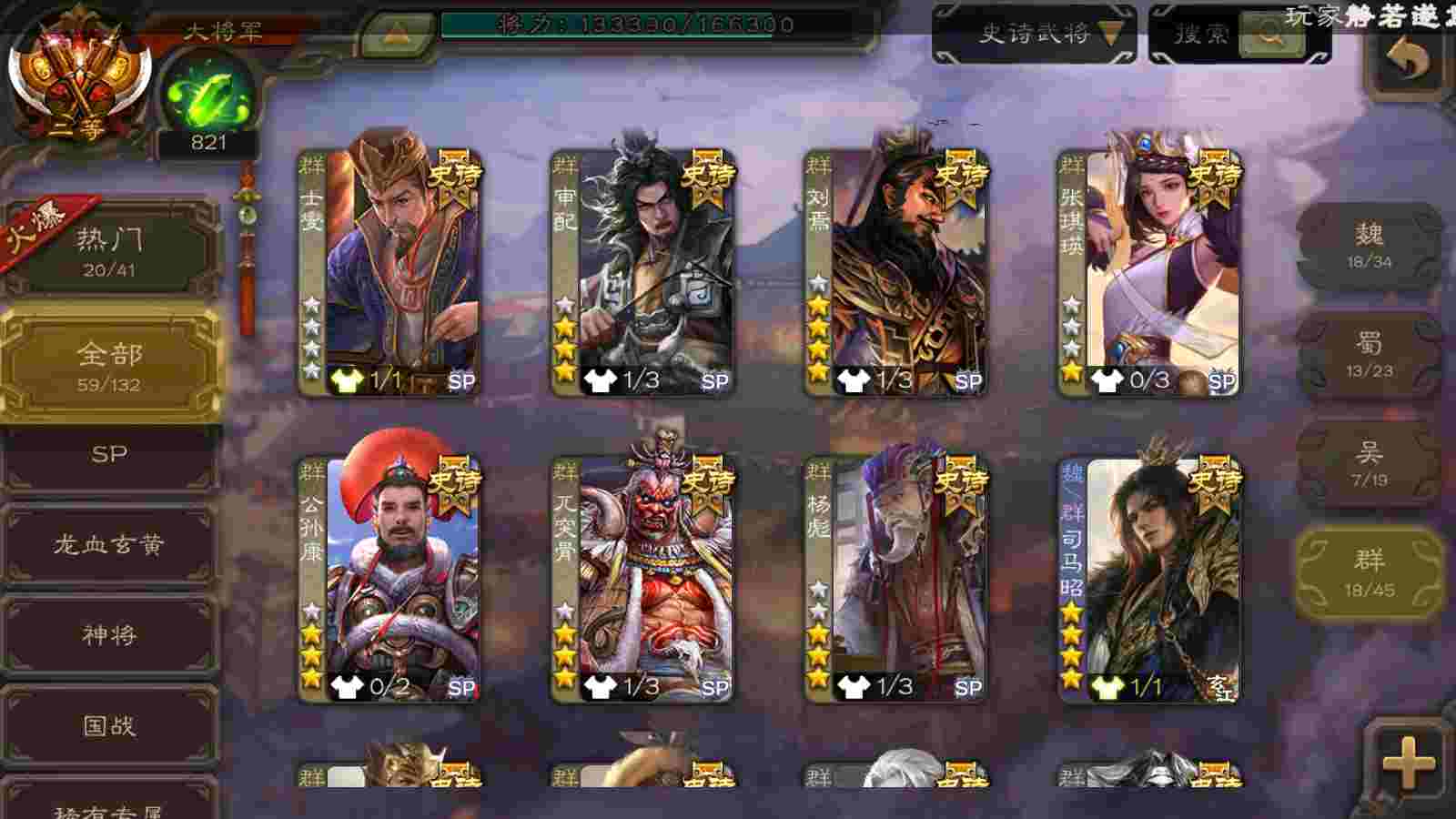 (魏国):曹婴,马钧,王元姬,文鸯,戏志才,界钟会,曹髦,SP司马昭,谋曹丕,界于禁,郝昭,界曹真,星周不疑,程昱,曹纯,陈琳,嵇康