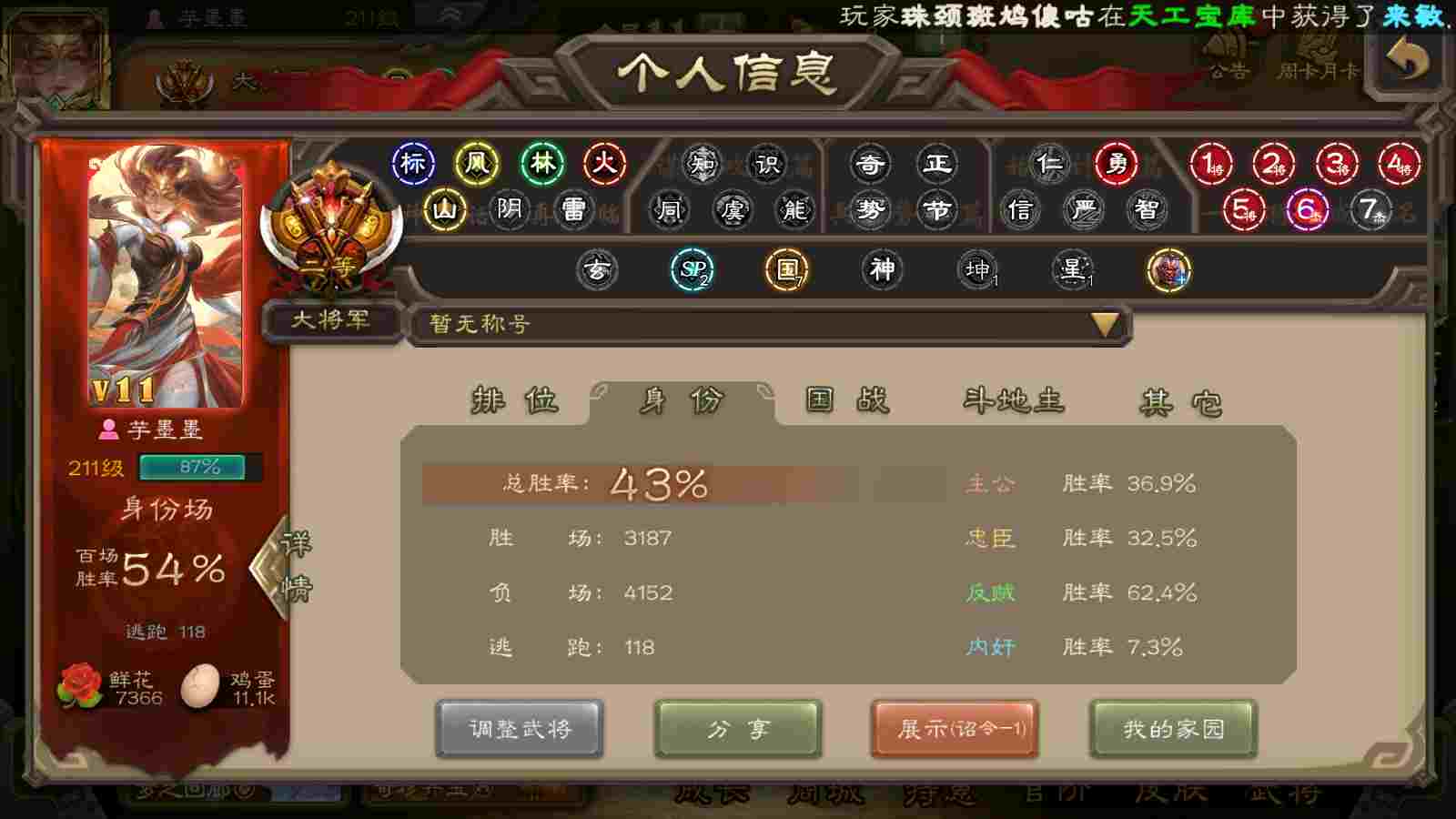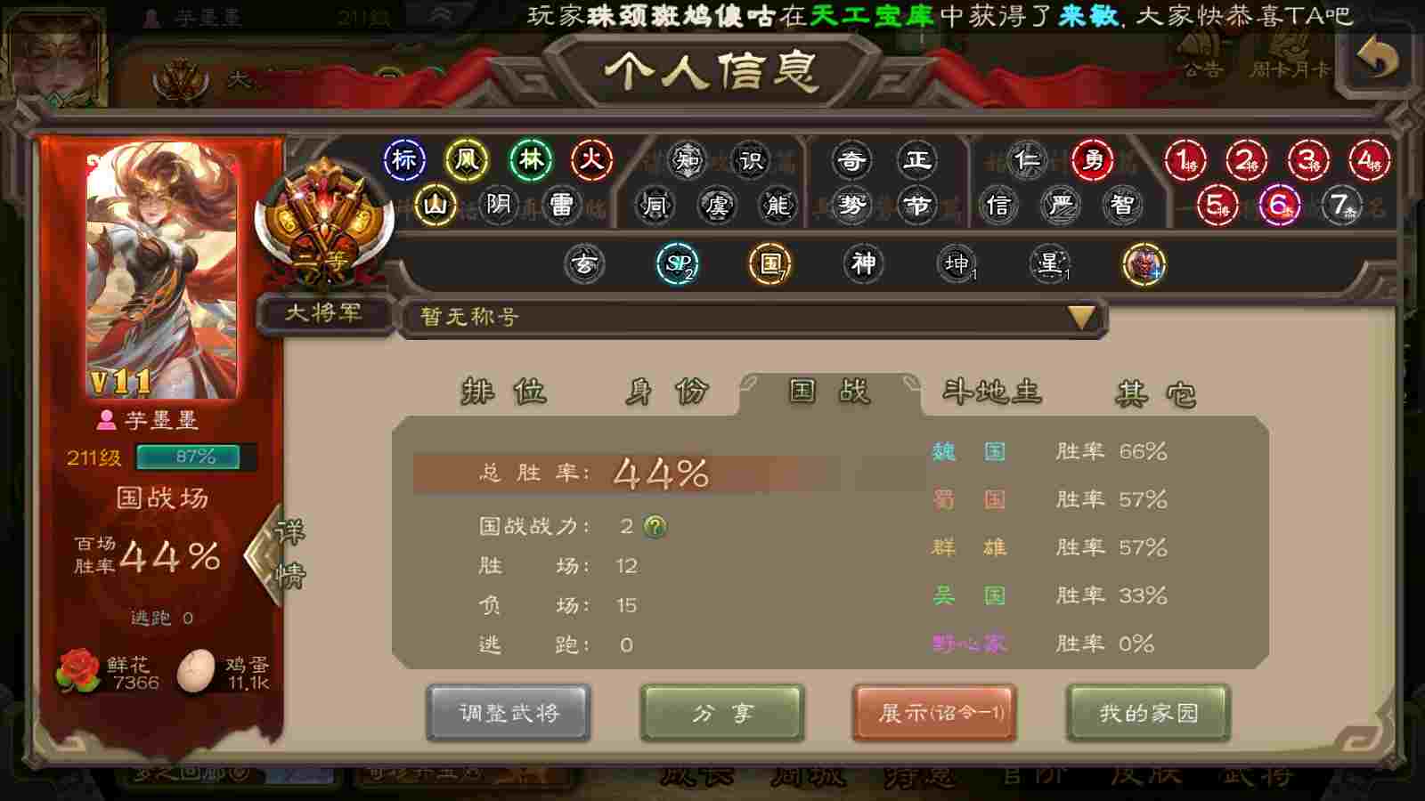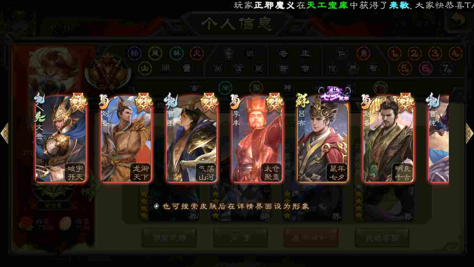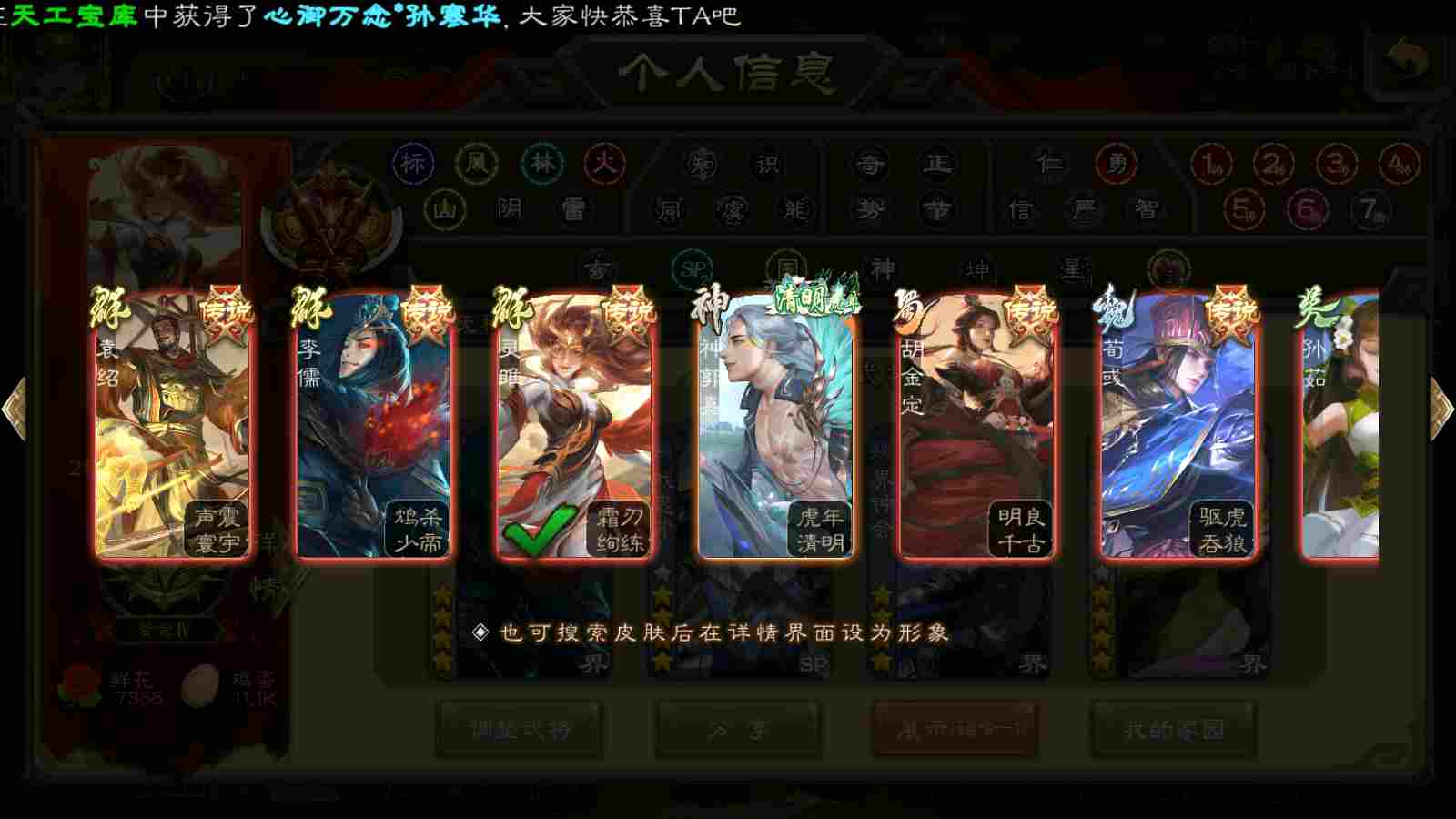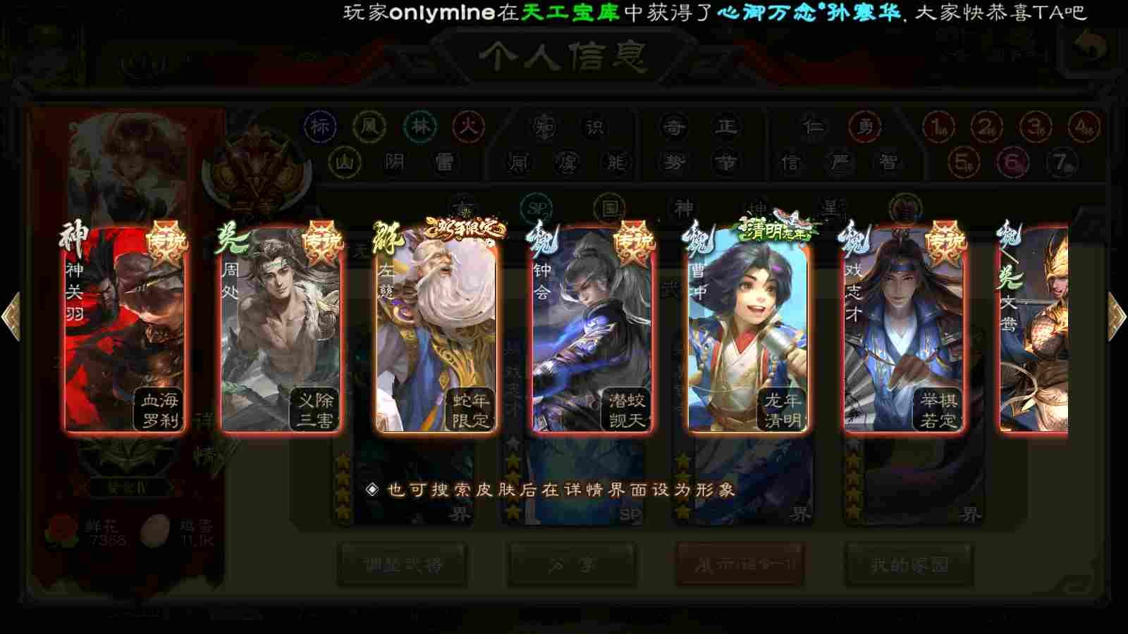 商品编号22393 全部皮肤450,动态皮肤40,全部武将387,排位武将116,国战武将93,史诗武将59,文鸯新回廊,界钟会回廊,谋貂蝉回廊,杜预动皮,雁翎3.8w